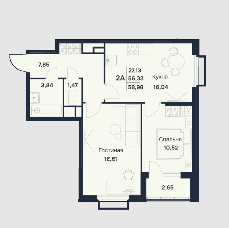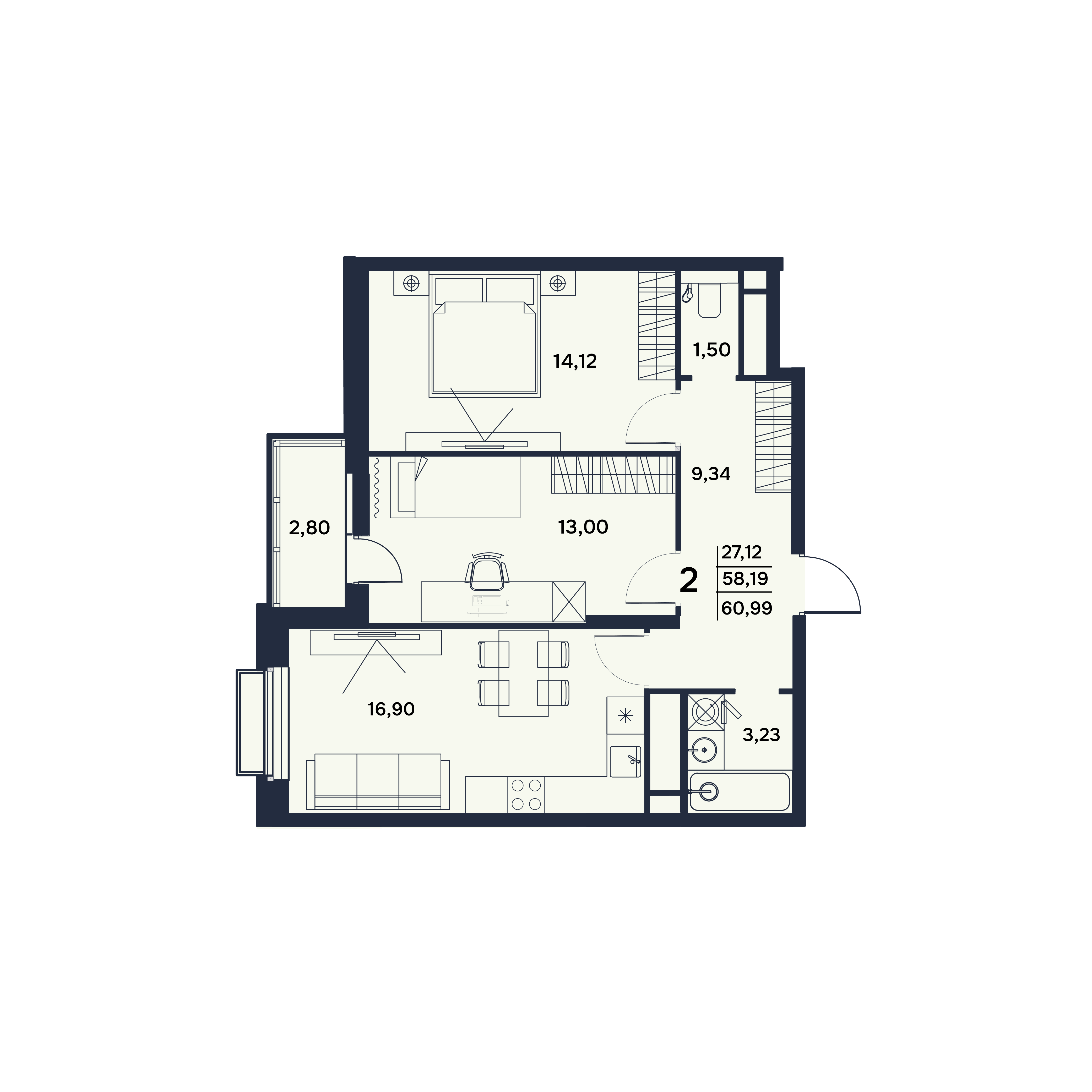 | 2-комн | от 57 м² до 62 м² | от 5,84 млн ₽ | 23 |