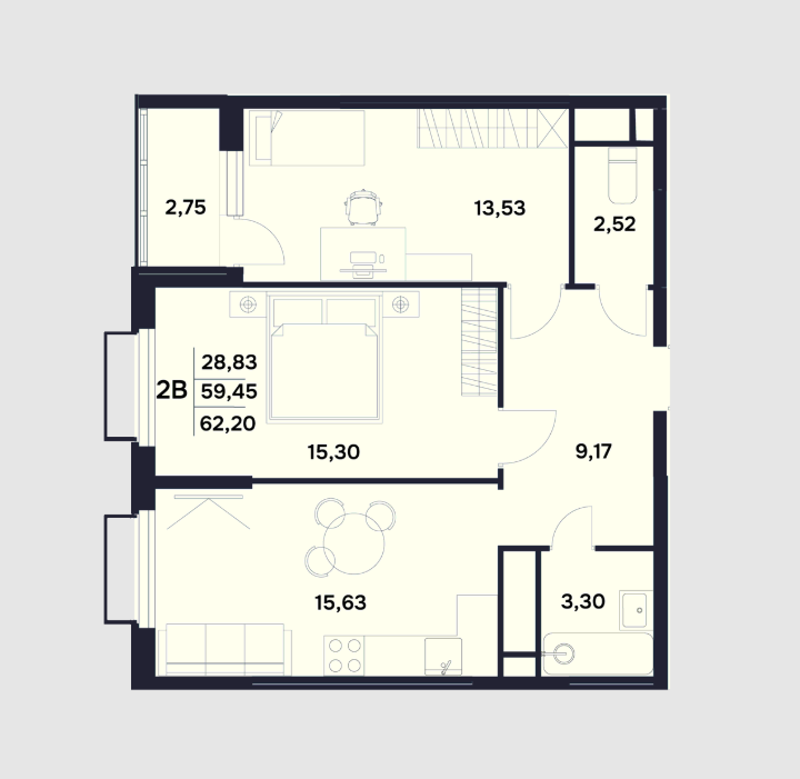 | 1-комн | от 28 м² до 43 м² | от 2,89 млн ₽ | 59 |