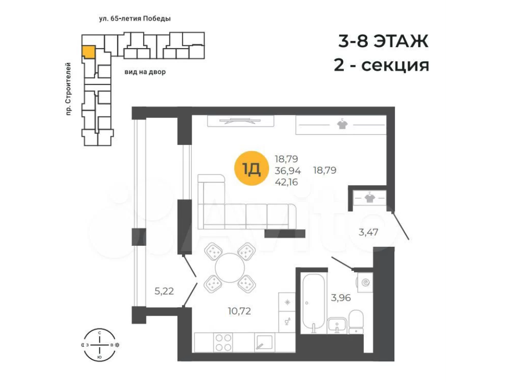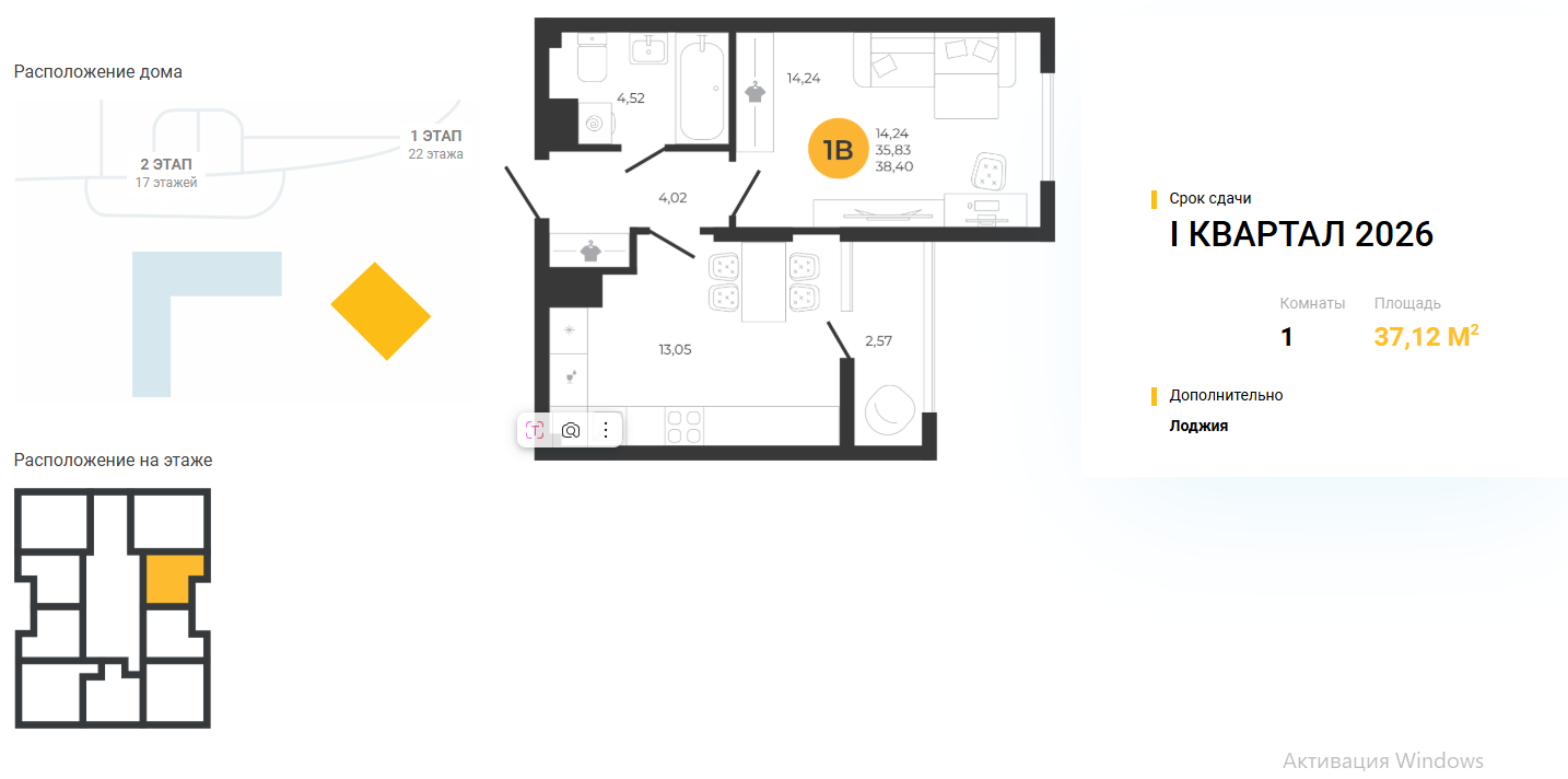 | 1-комн | от 34 м² до 65 м² | от 3,62 млн ₽ | 156 |