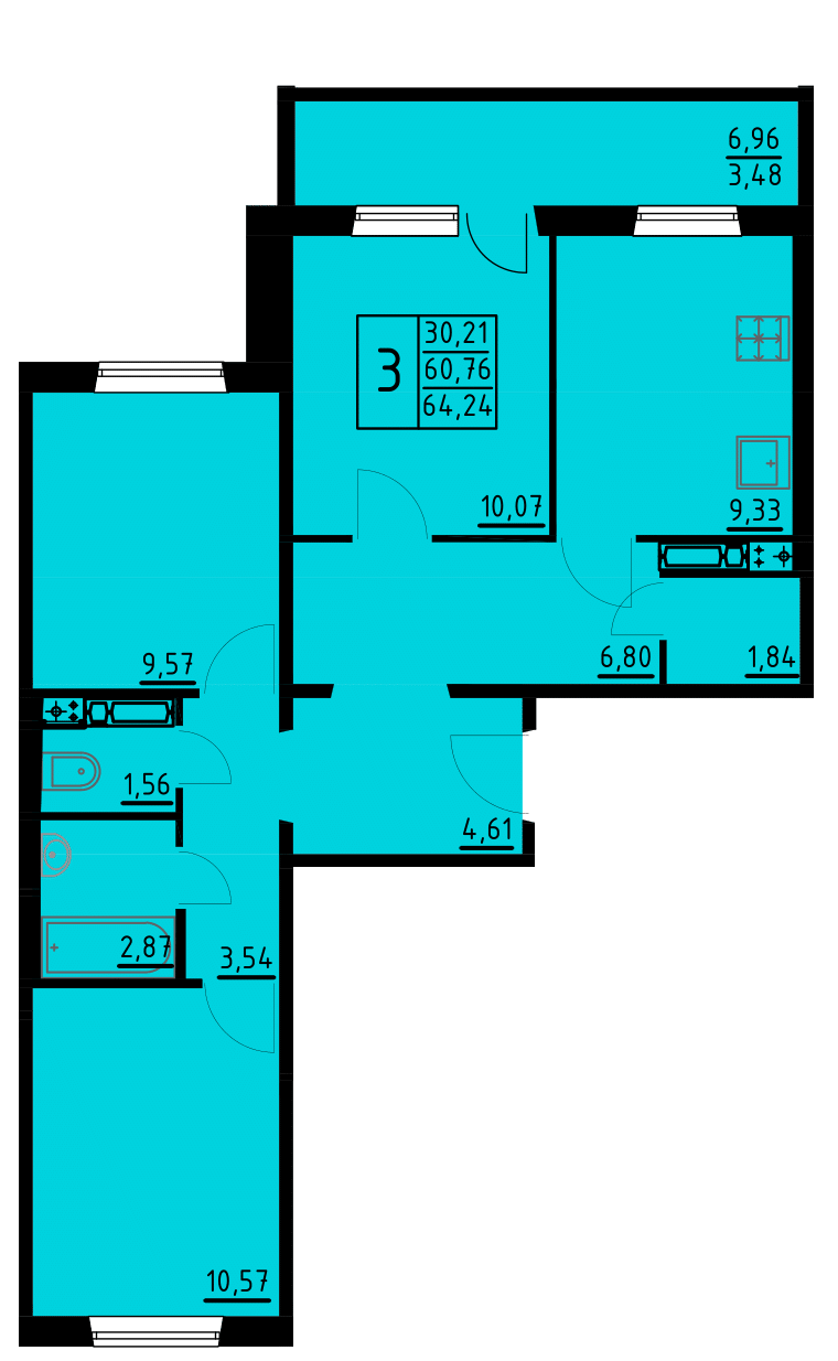 | 3-комн | от 59 м² до 83 м² | от 8,06 млн ₽ | 91 |