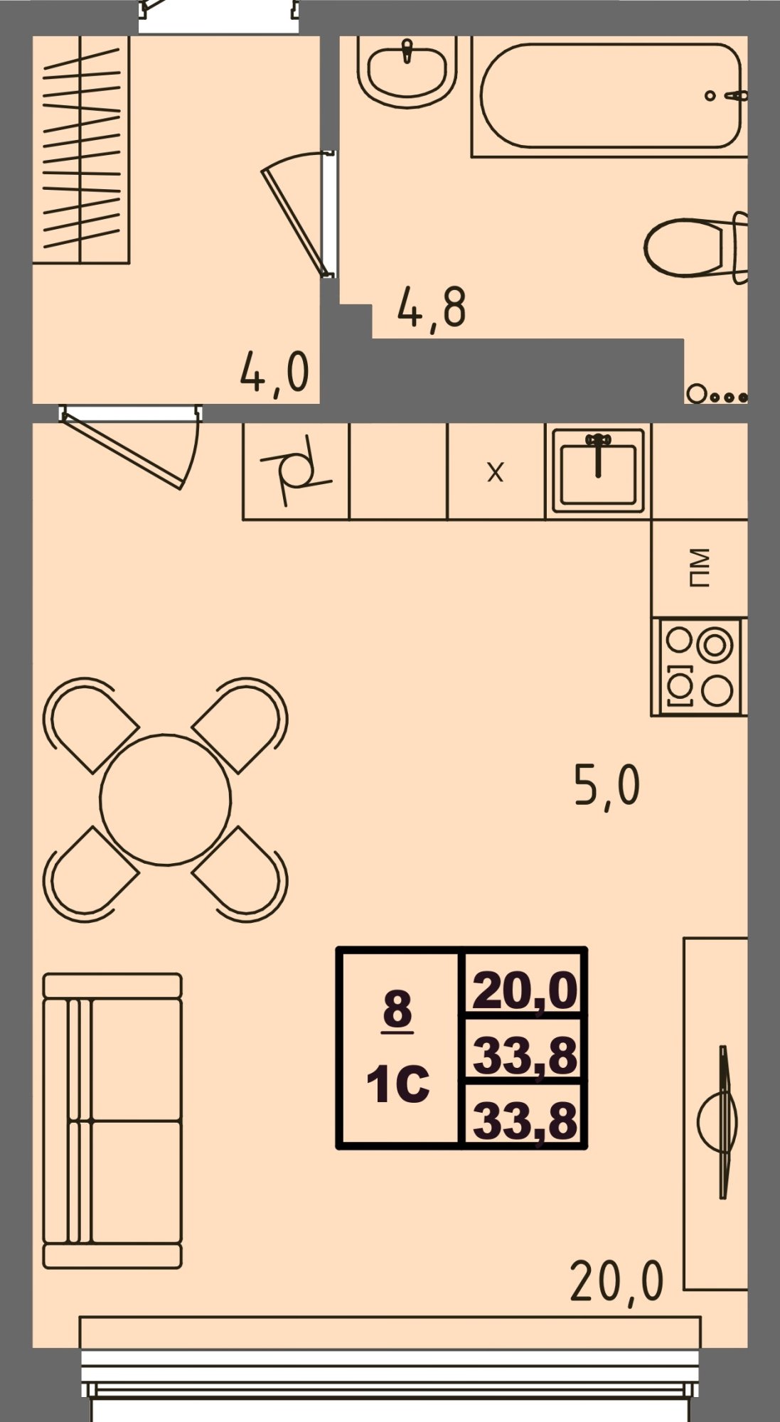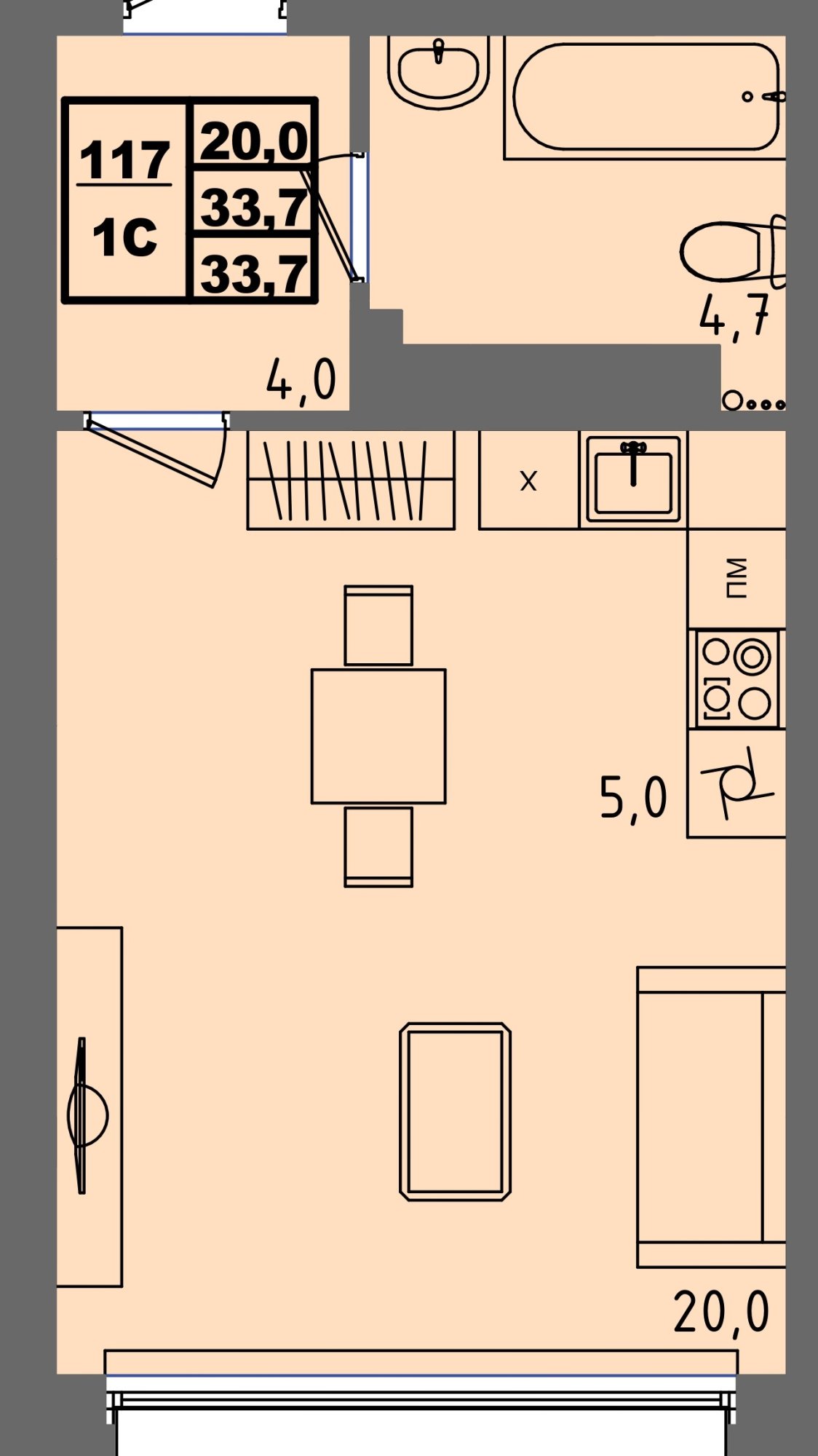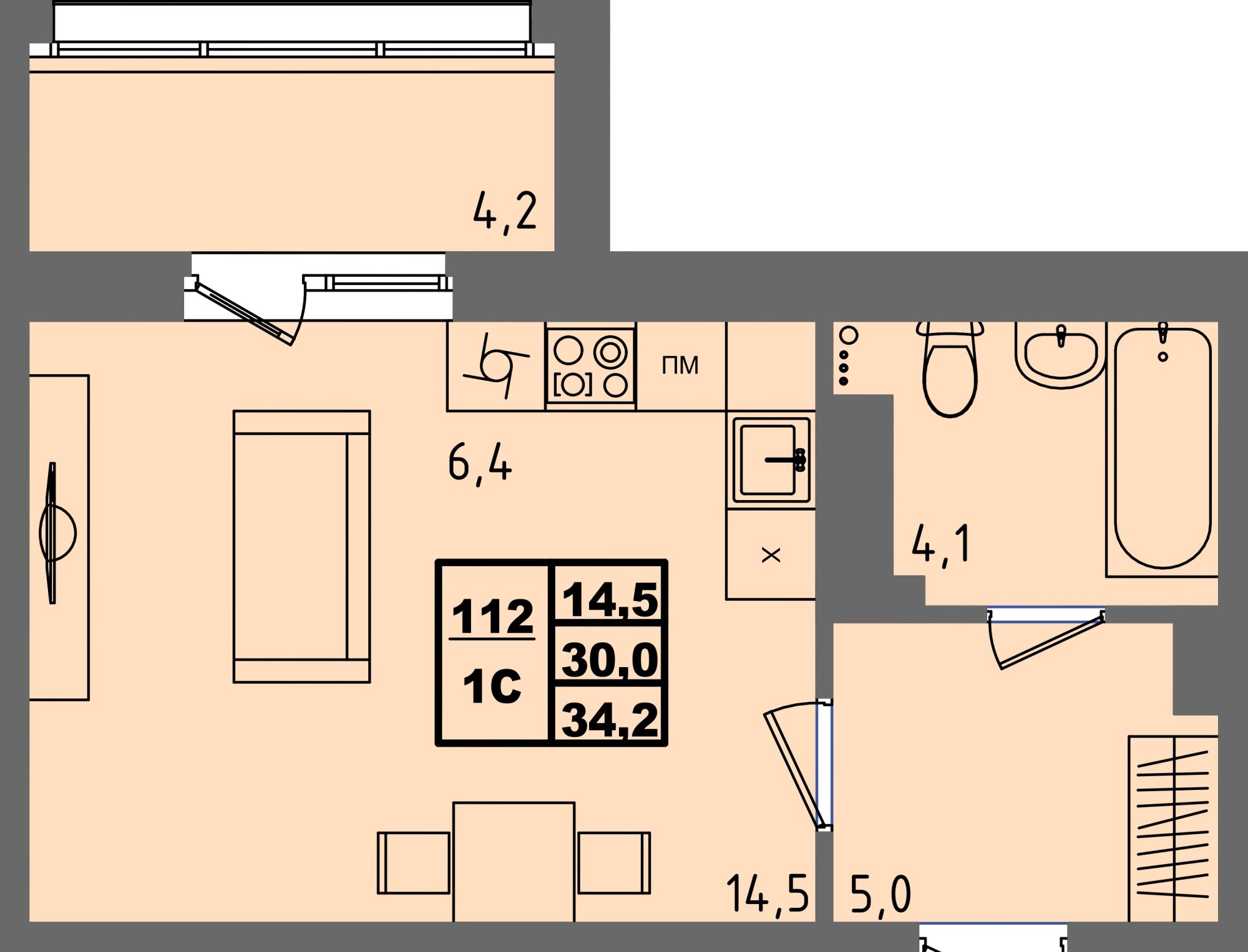 | Студии | от 33 м² до 44 м² | от 4,80 млн ₽ | 30 |