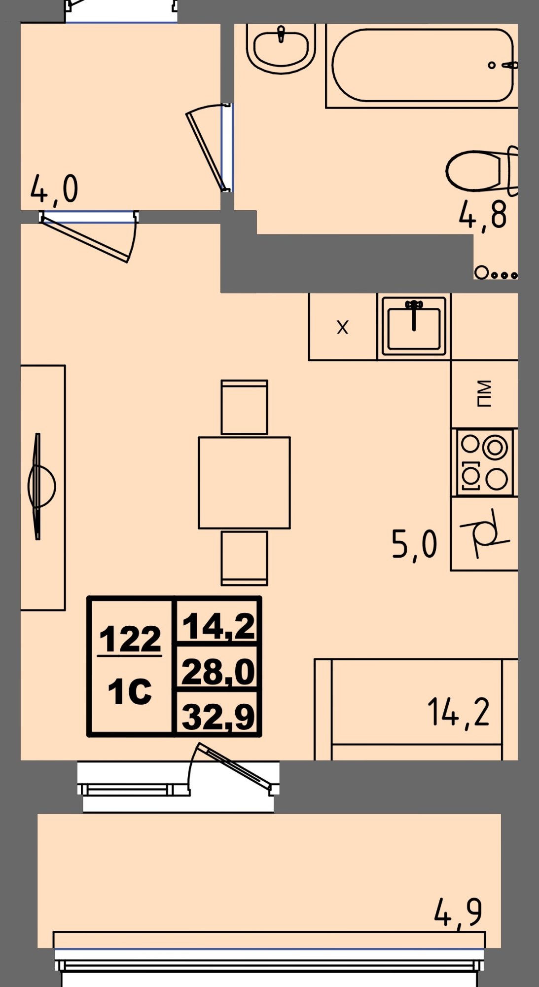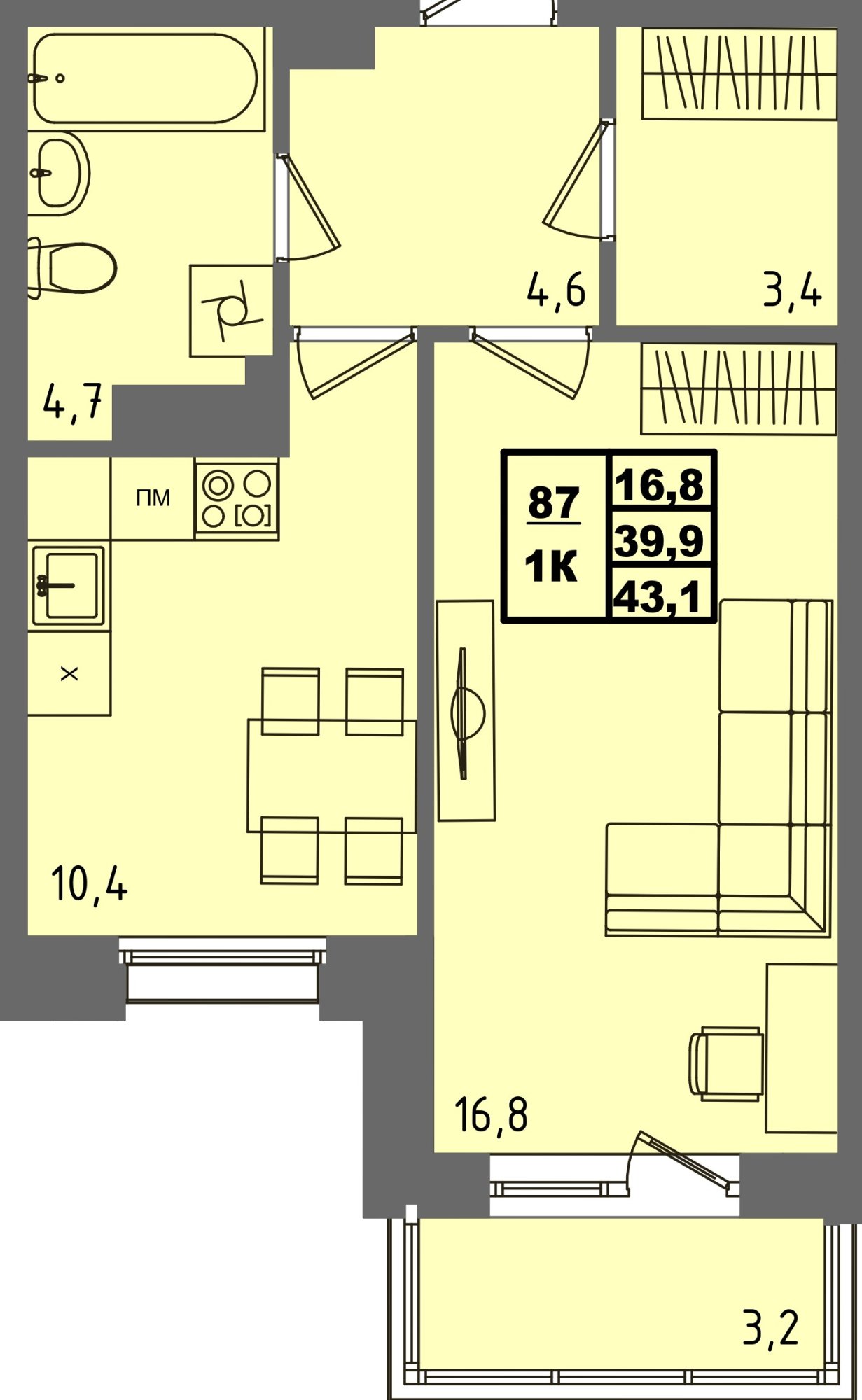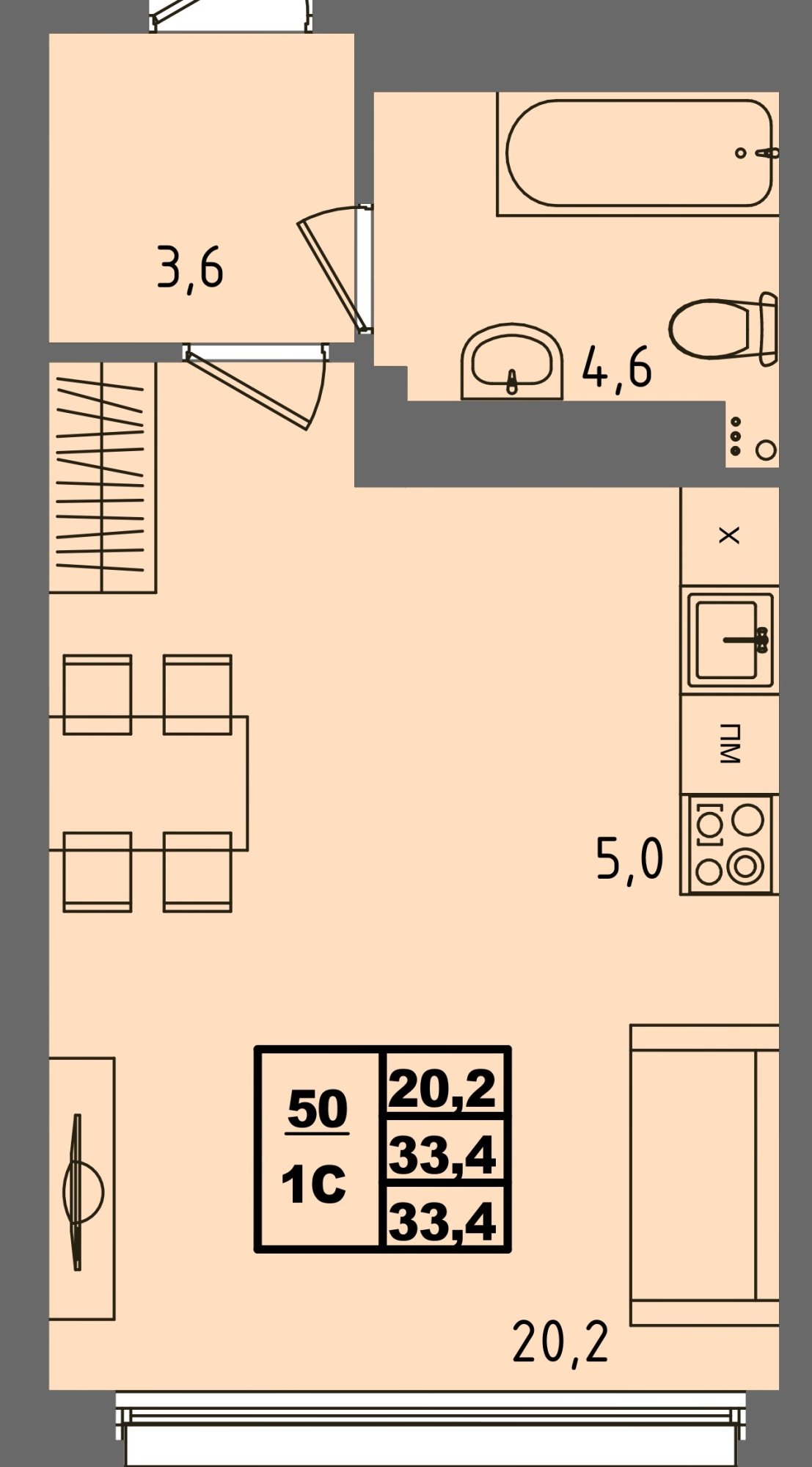 | Студии | от 33 м² до 44 м² | от 4,80 млн ₽ | 30 |