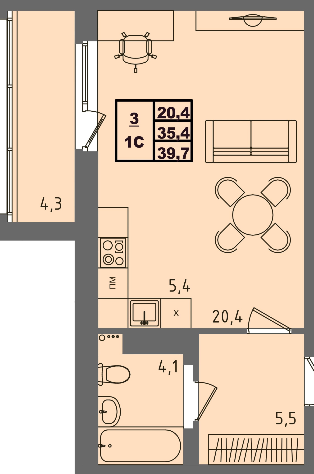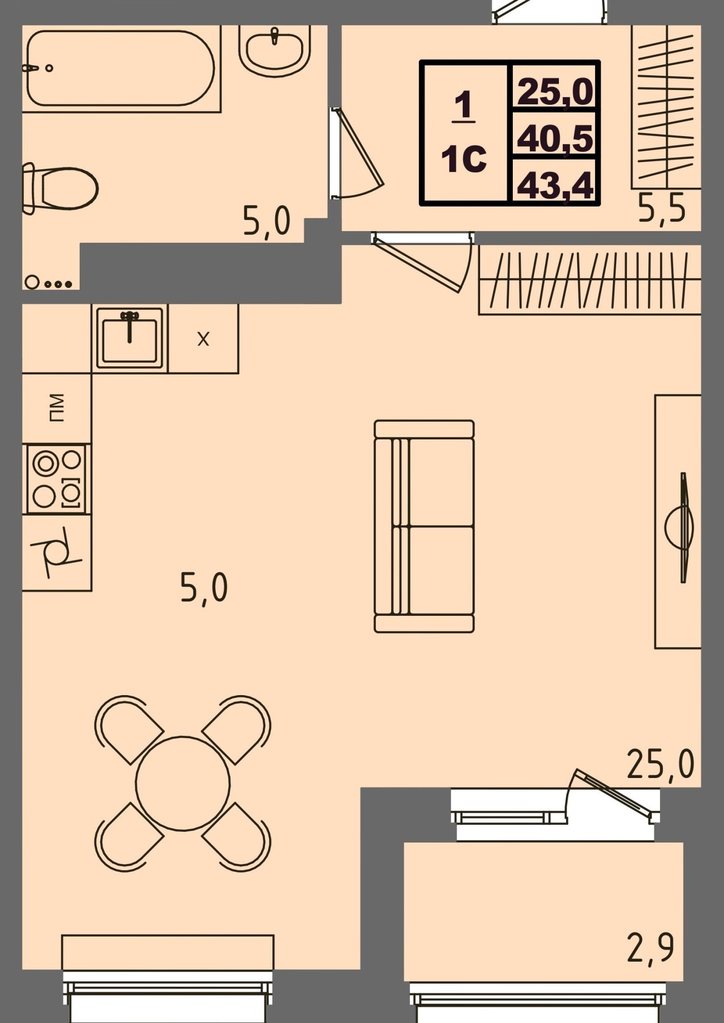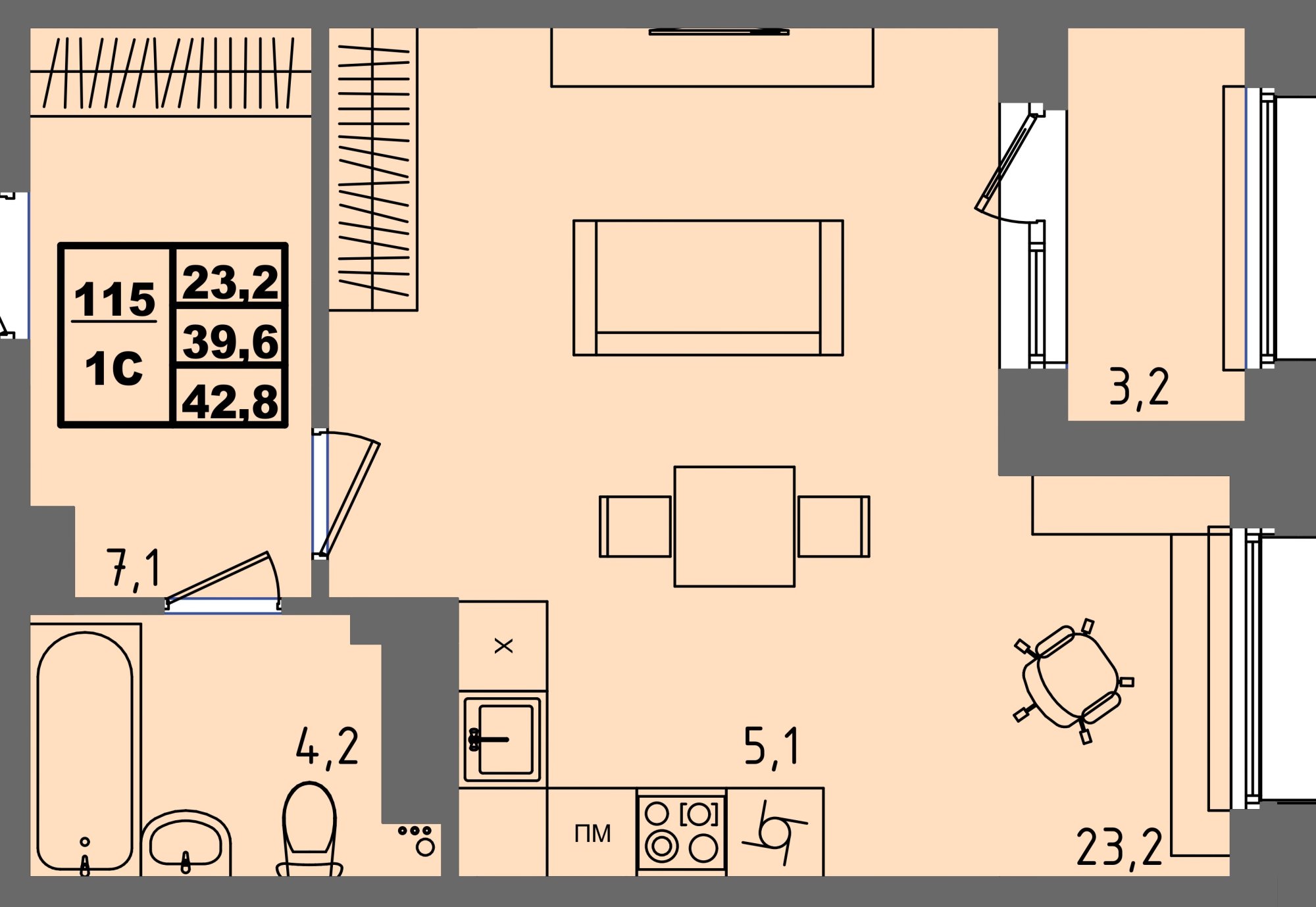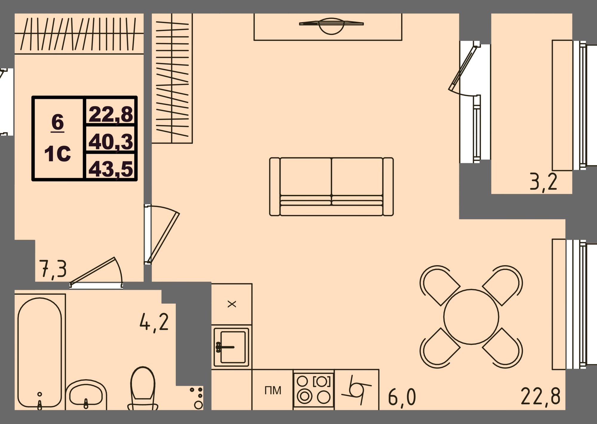 | 1-комн | от 38 м² до 66 м² | от 6,25 млн ₽ | 40 |
