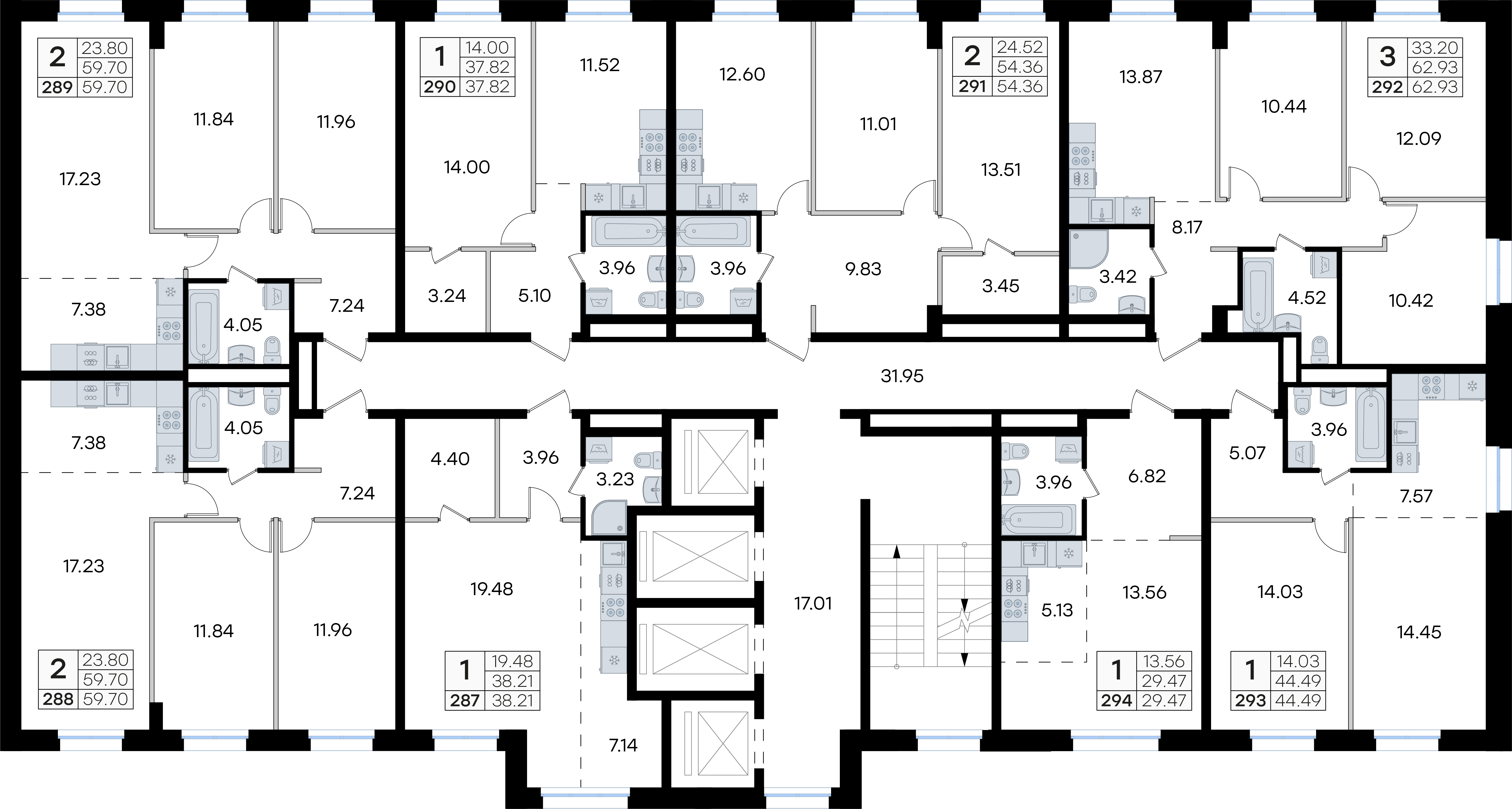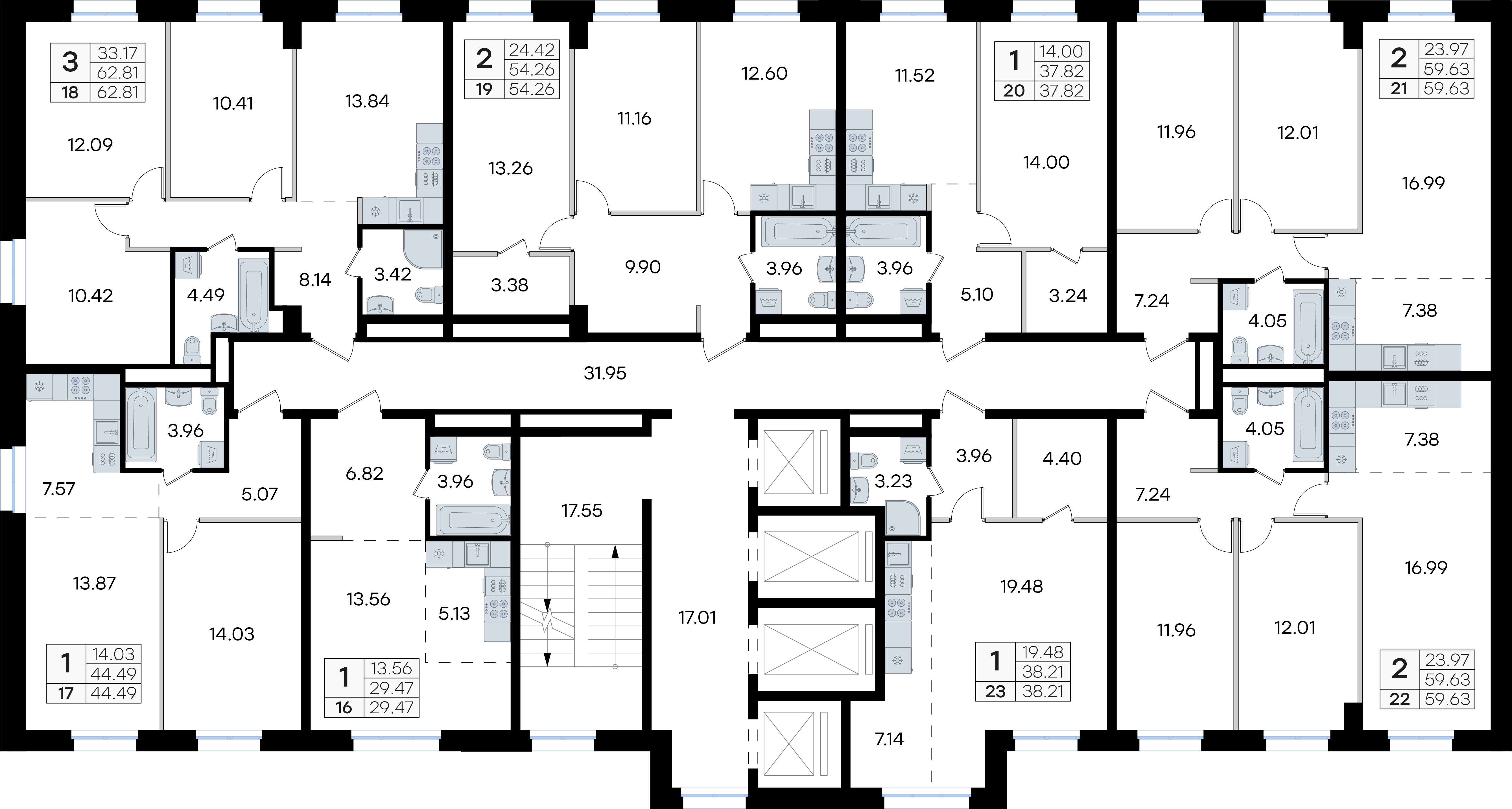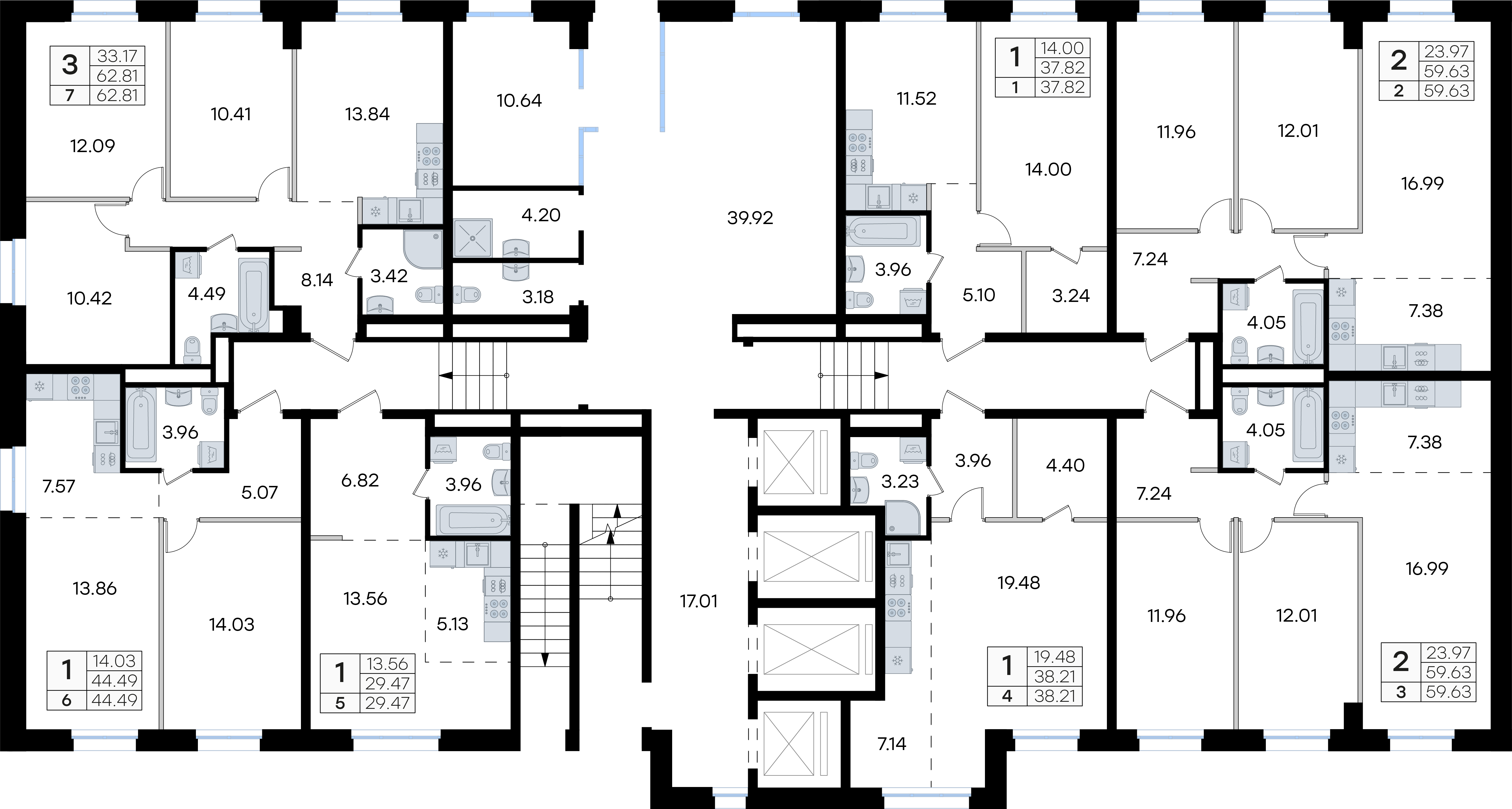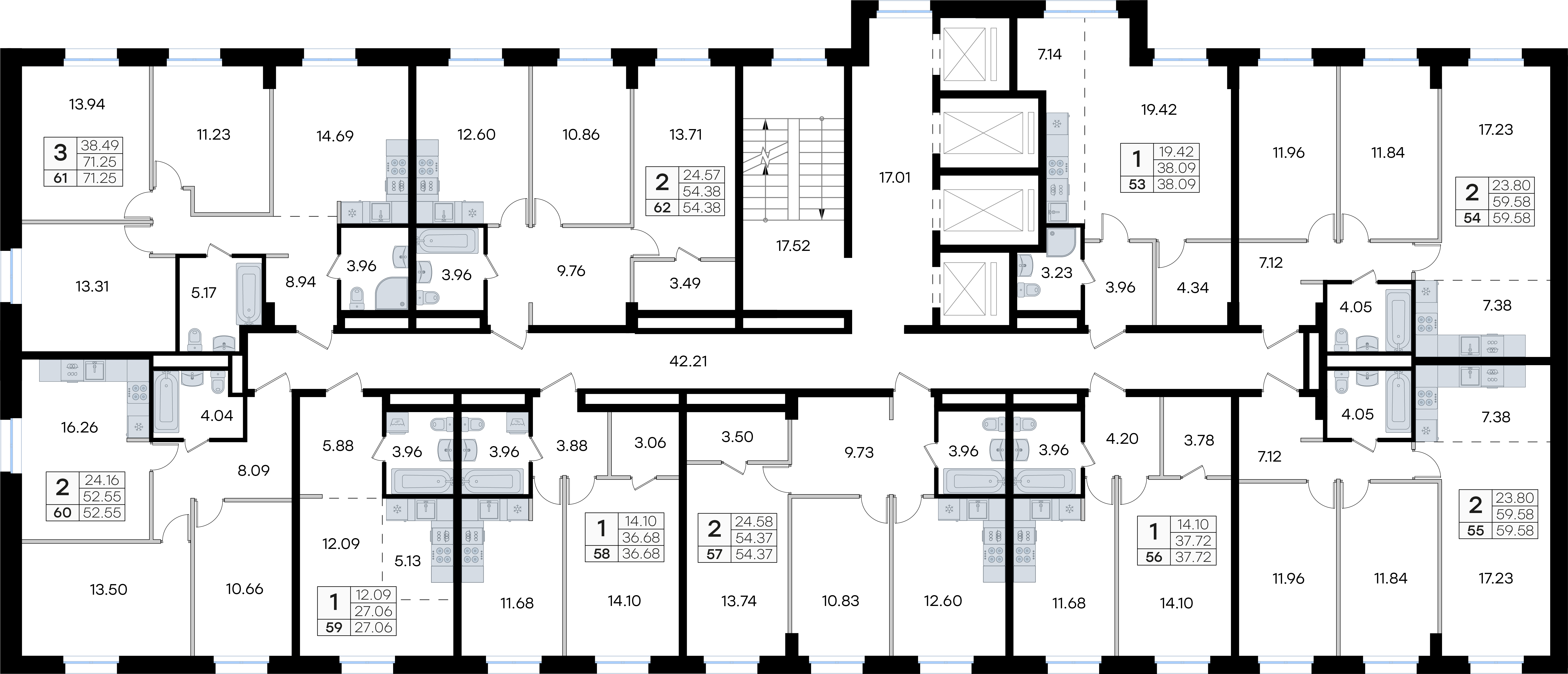 | 3-комн | от 63 м² до 71 м² | от 9,38 млн ₽ | 62 |
