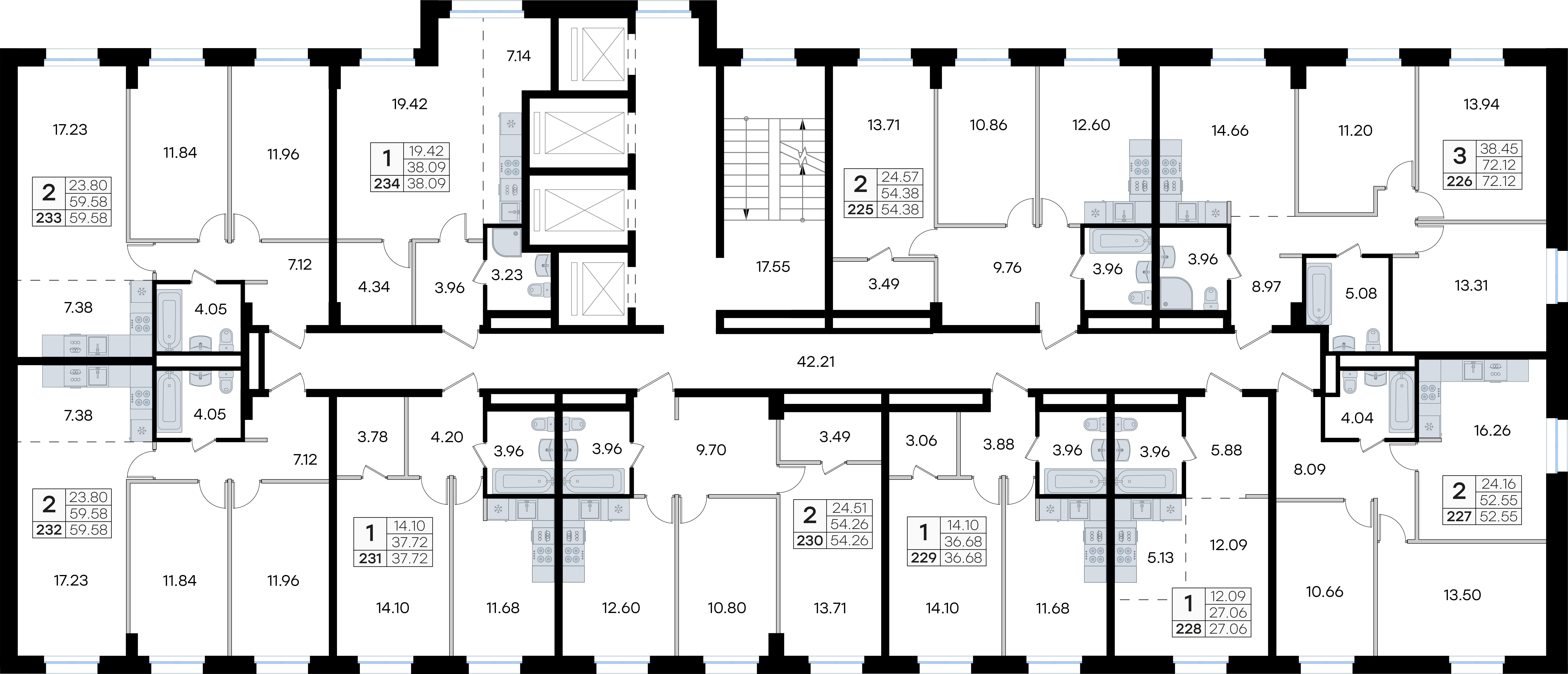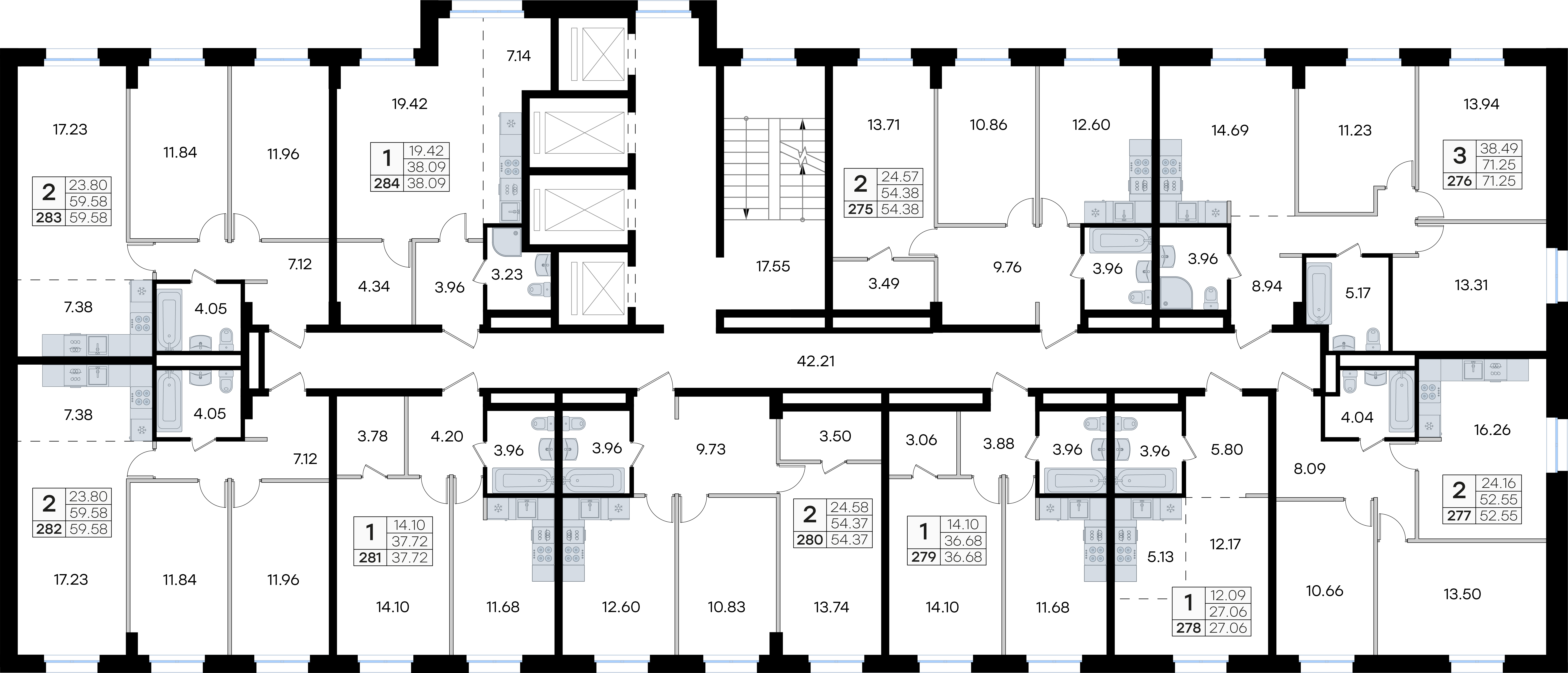 | Студии | от 27 м² до 38 м² | от 4,81 млн ₽ | 122 |