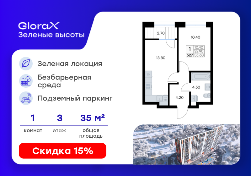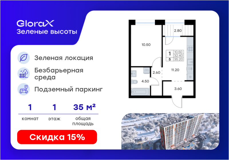 GloraX Зелёные высоты — современный жилой проект, сочетающий преимущества городской и пригородной жизни. Комплекс тщательно продуман для максимального удобства и обеспечения безопасности жителей. В...