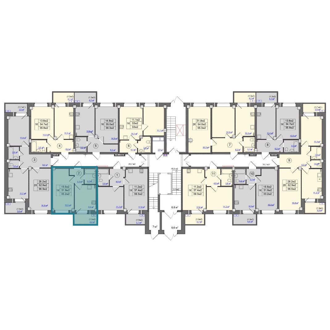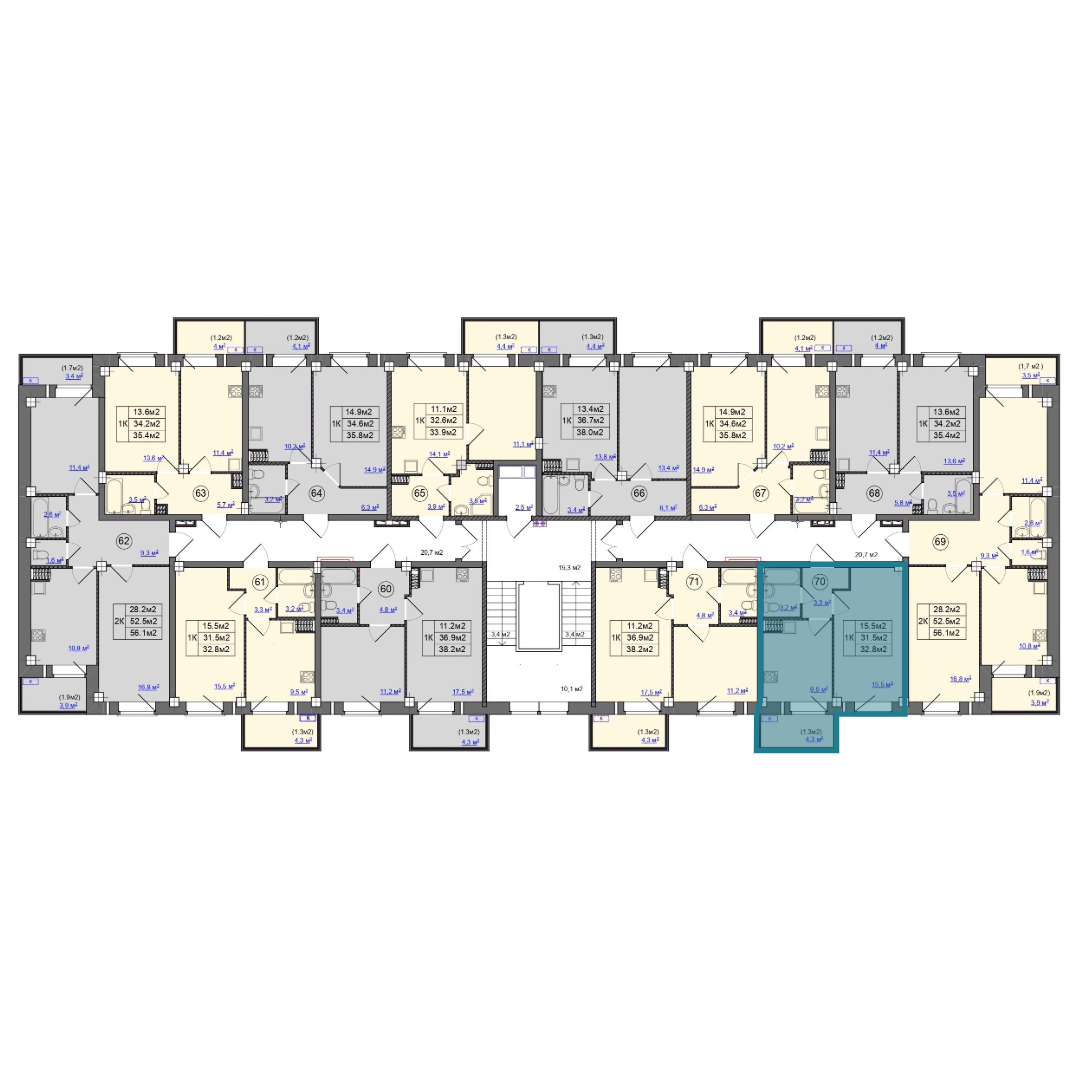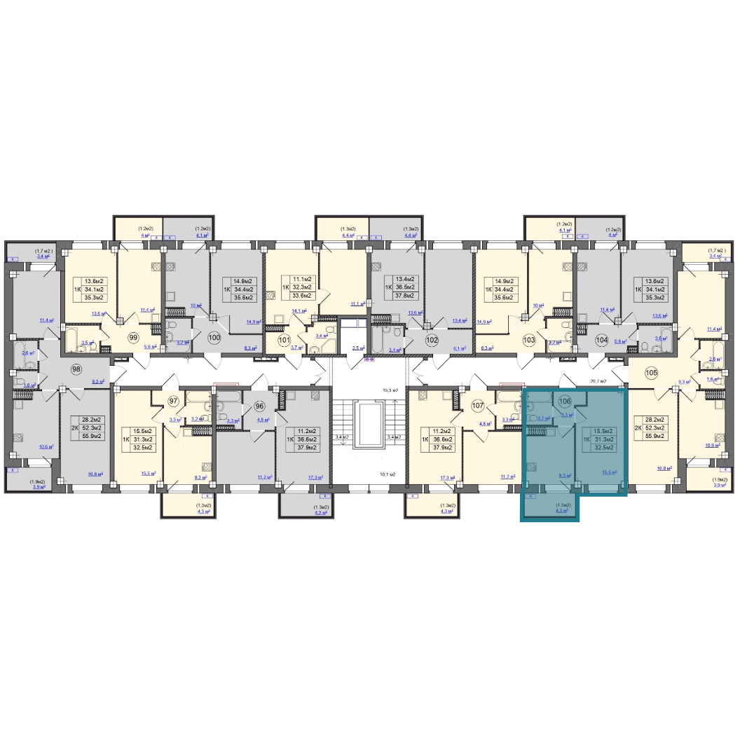 | Студии | от 24 м² до 26 м² | от 2,23 млн ₽ | 16 |