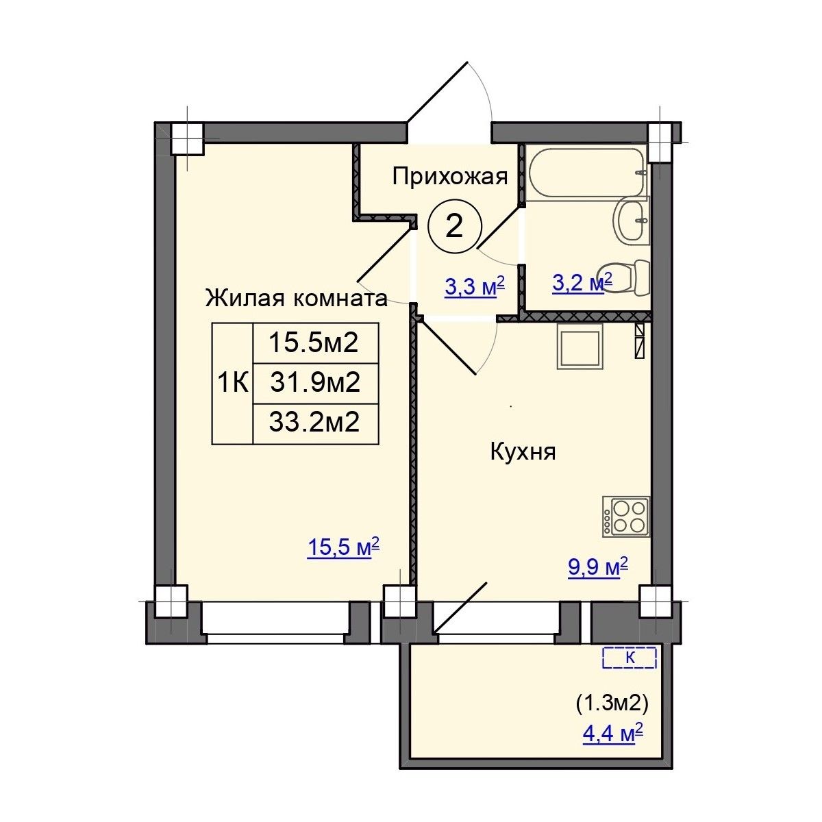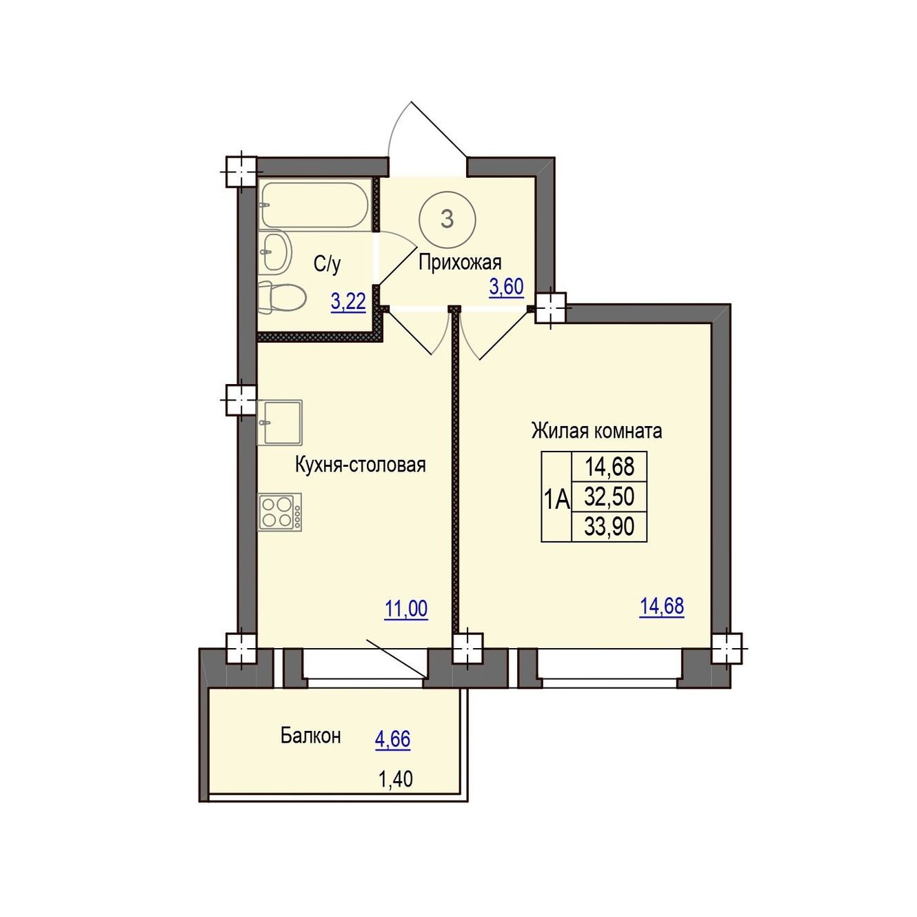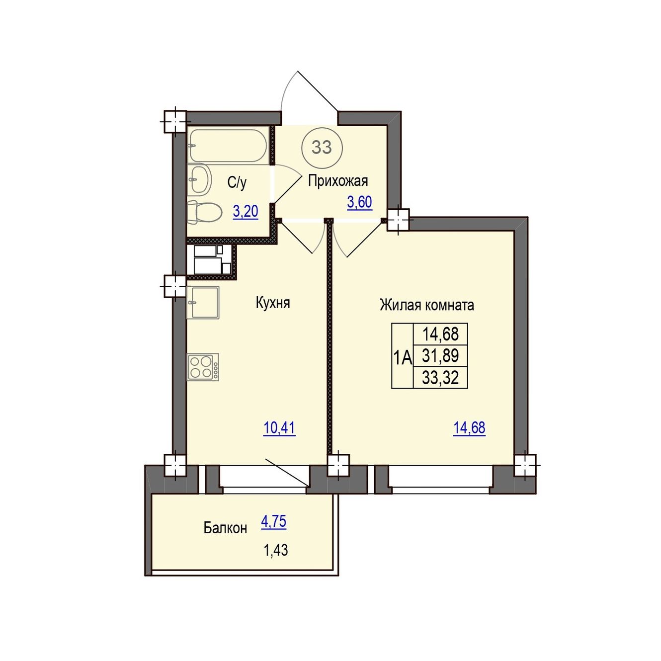 | 1-комн | от 33 м² до 39 м² | от 2,97 млн ₽ | 92 |