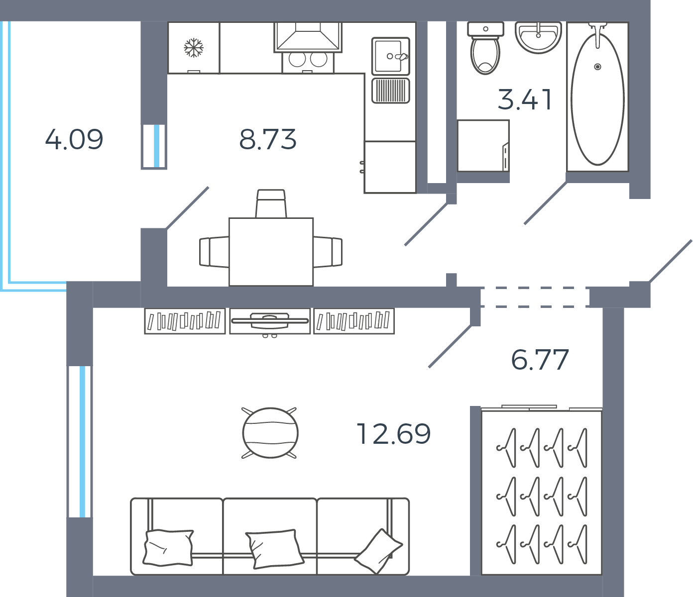 | Студии | от 24 м² до 33 м² | от 3,08 млн ₽ | 27 |