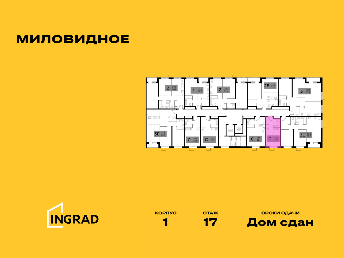 | Студии | от 22 м² до 28 м² | от 6,24 млн ₽ | 5 |