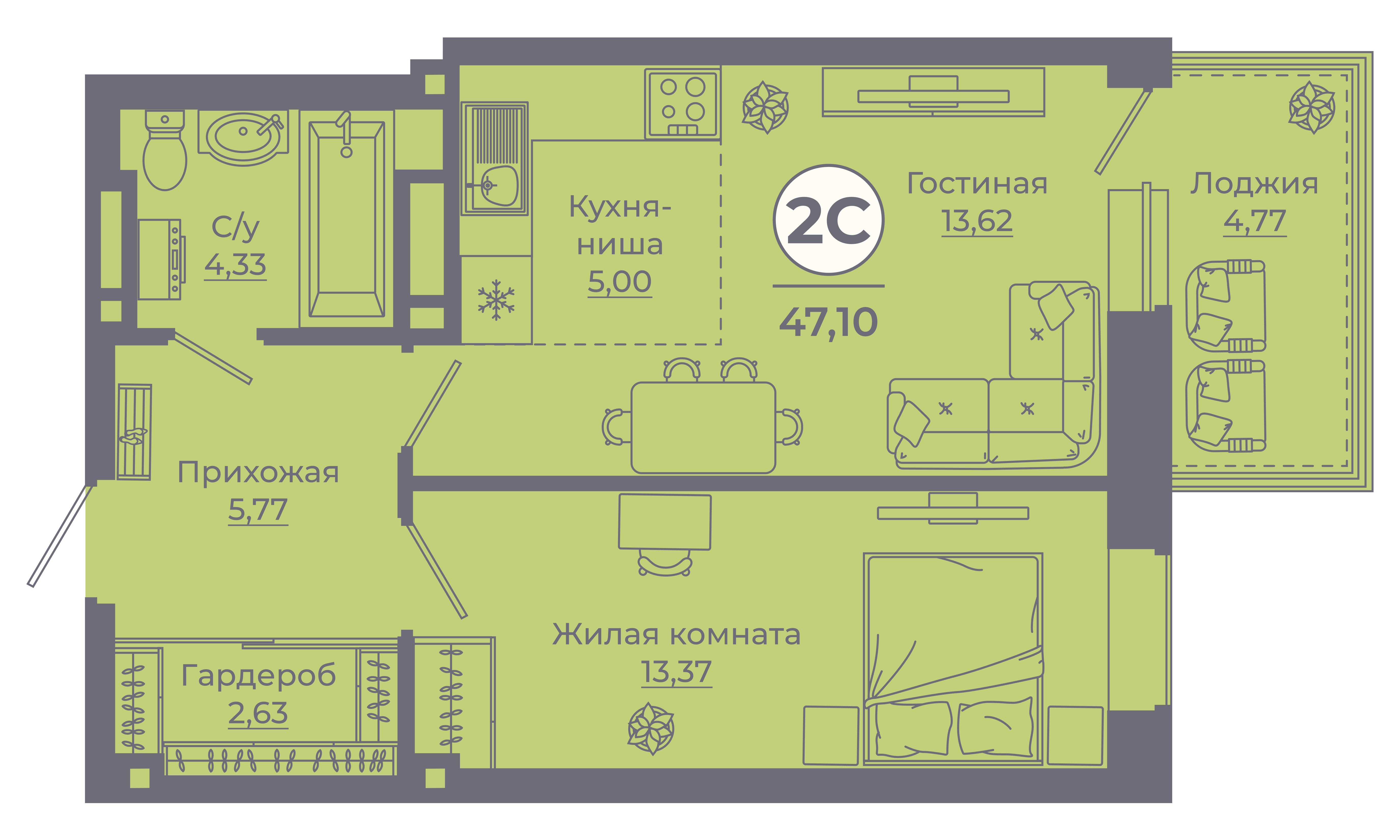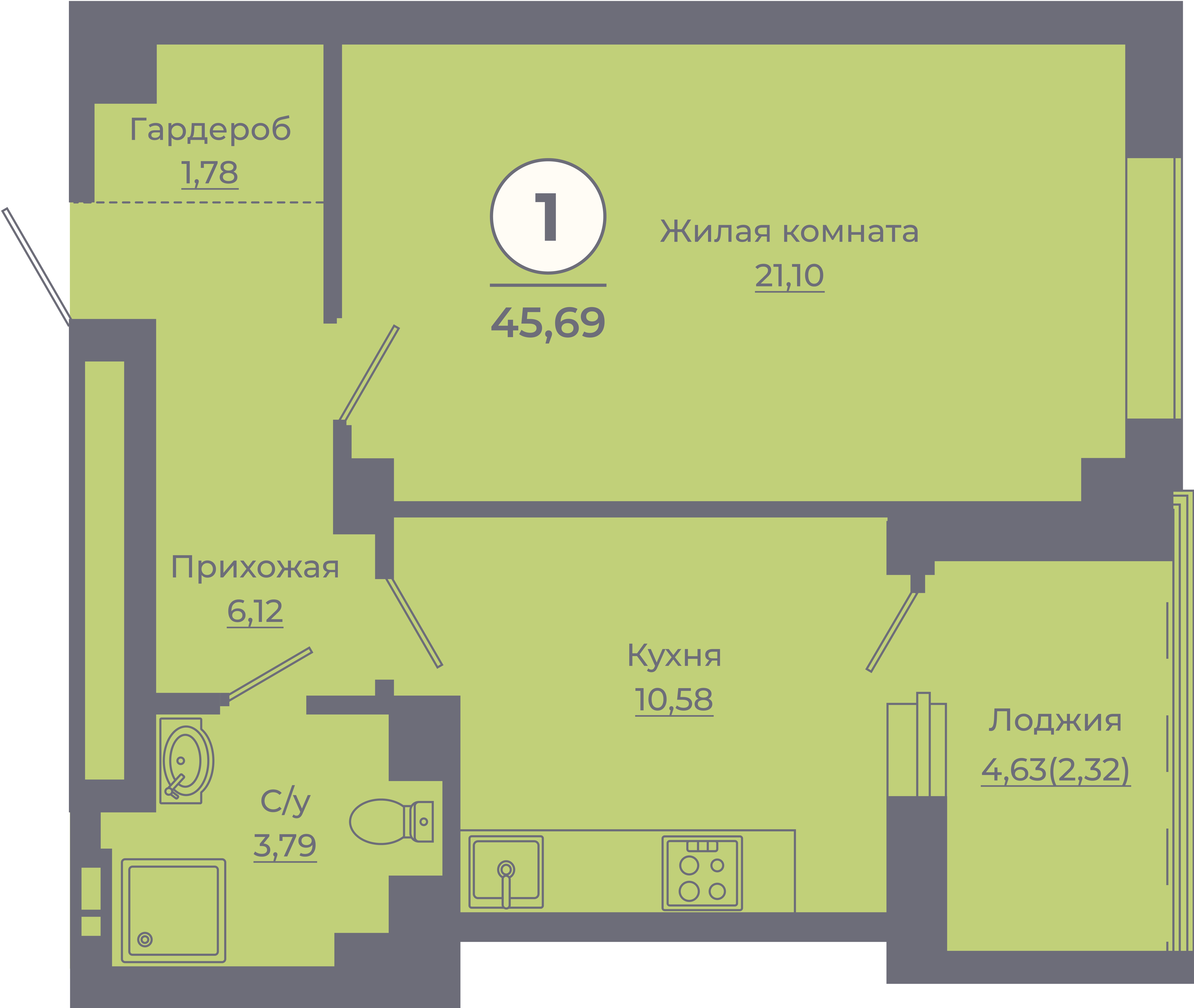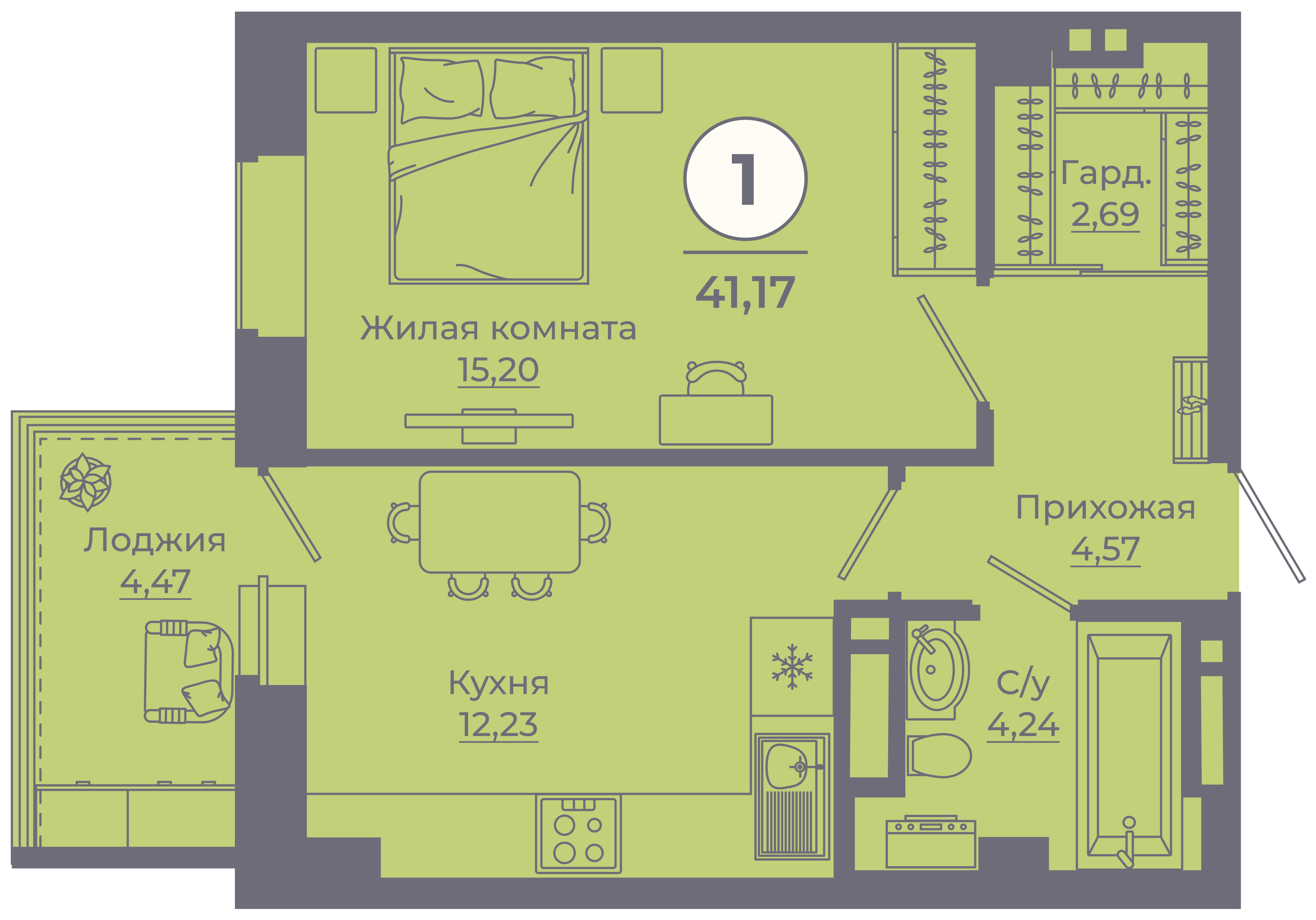 | Студии | от 24 м² до 28 м² | от 0 тыс. млн ₽ | 82 |