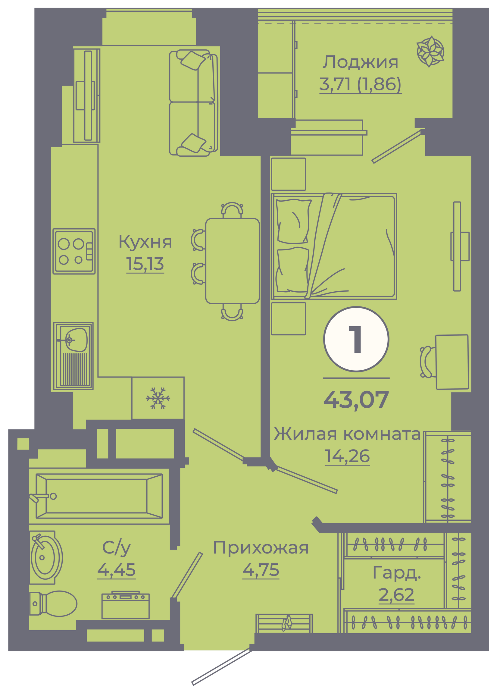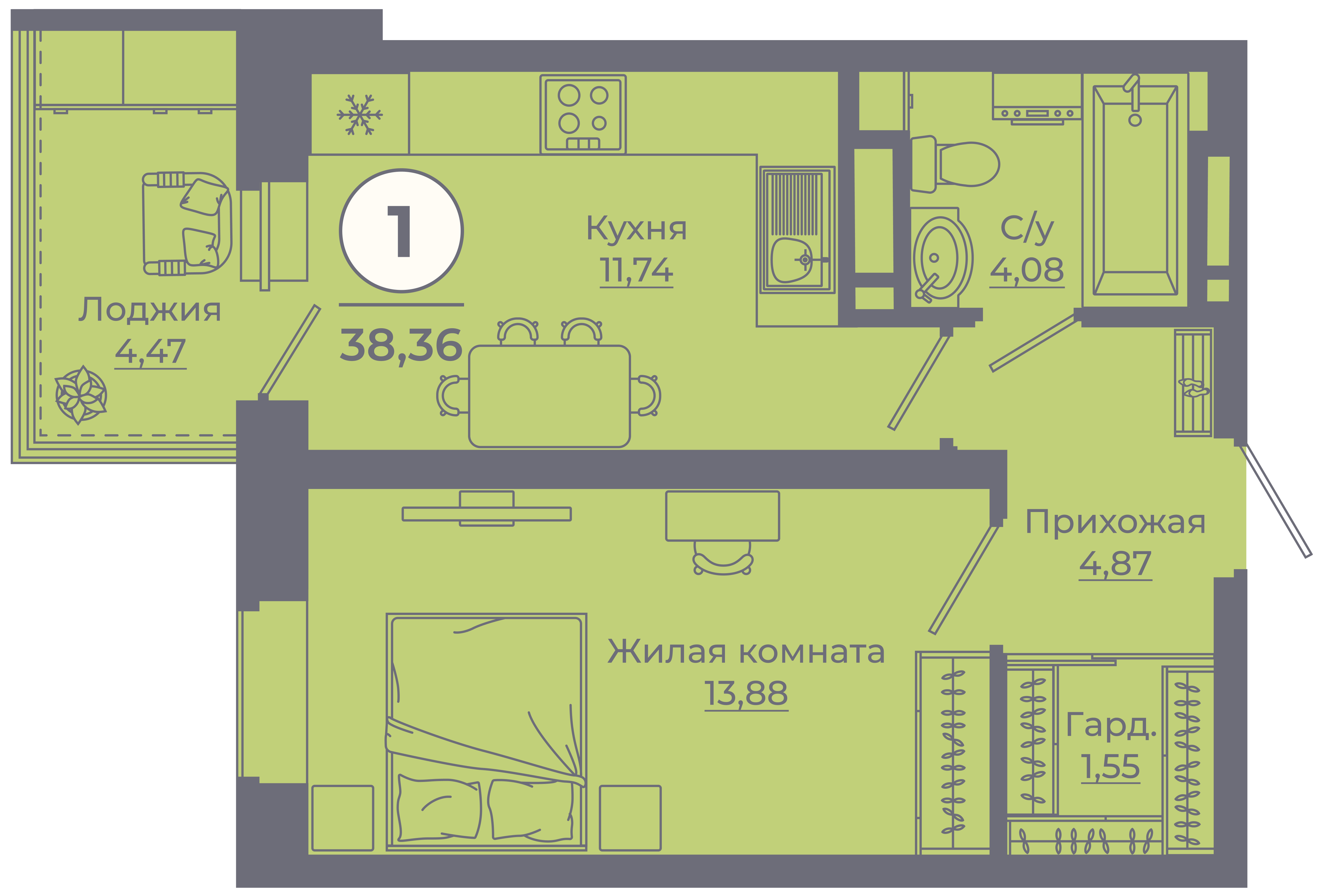 | 1-комн | от 34 м² до 46 м² | от 0 тыс. млн ₽ | 263 |