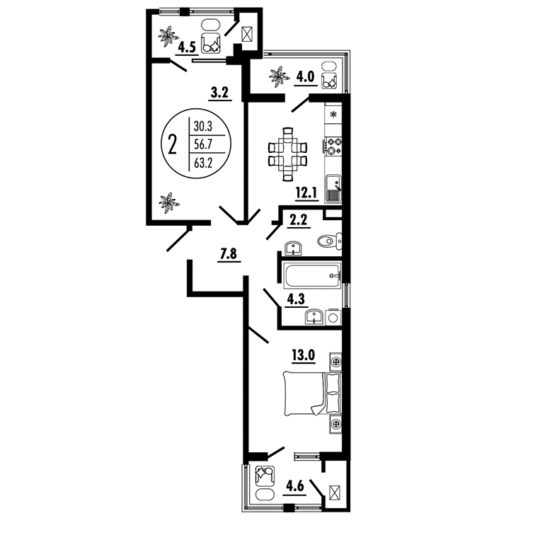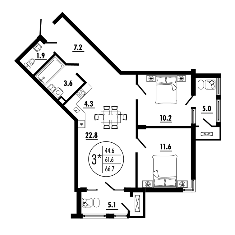 | 3-комн | от 61 м² до 67 м² | от 11,16 млн ₽ | 33 |