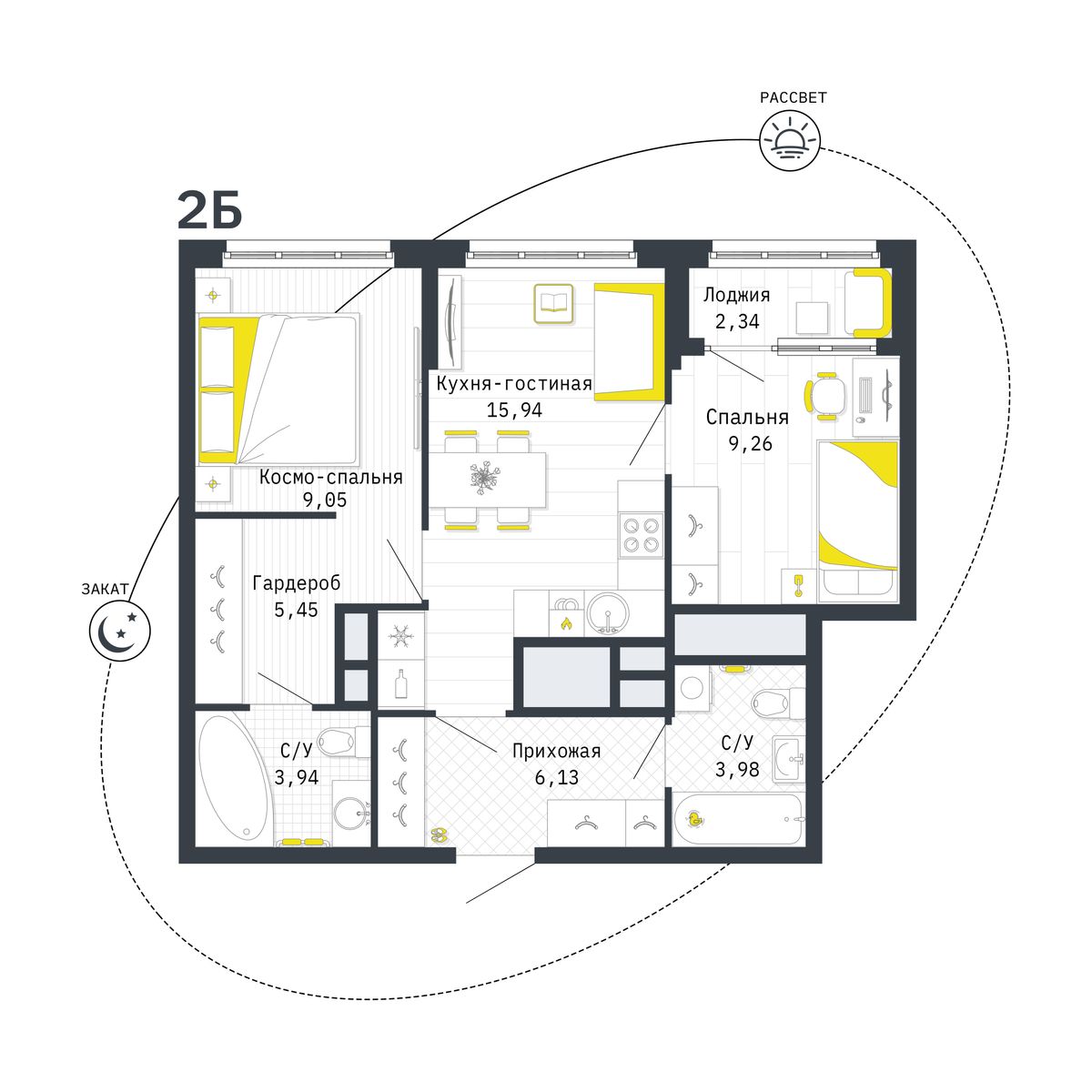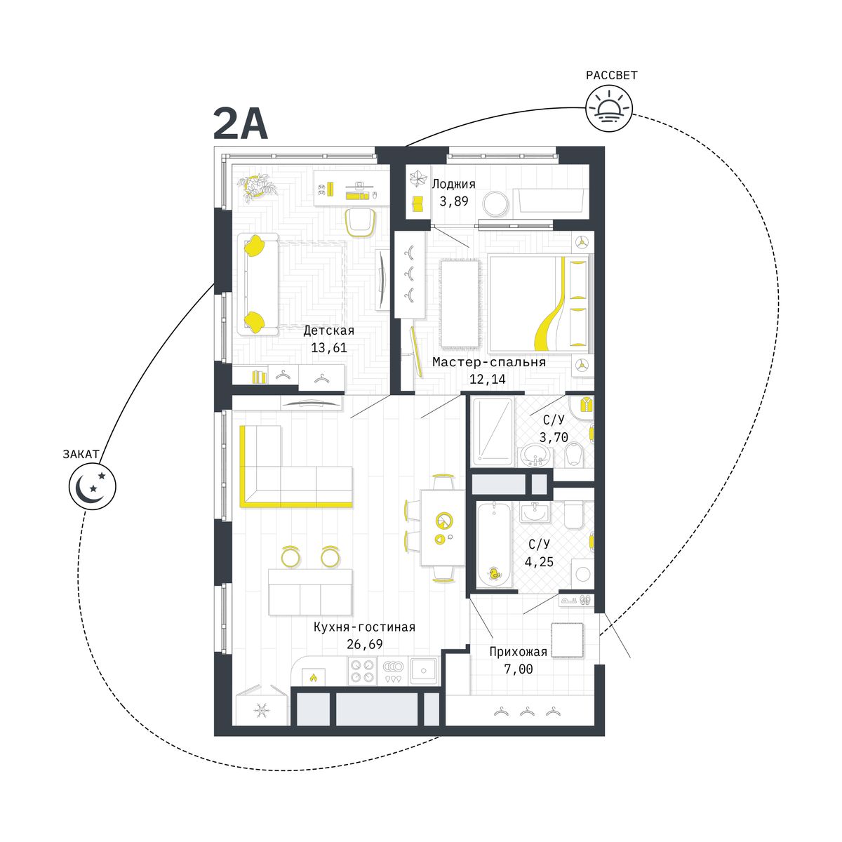 | 2-комн | от 55 м² до 69 м² | от 6,90 млн ₽ | 11 |