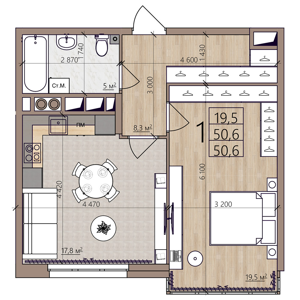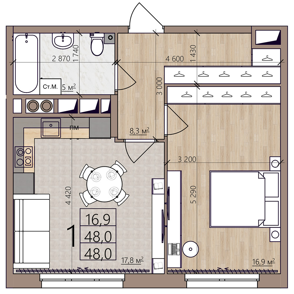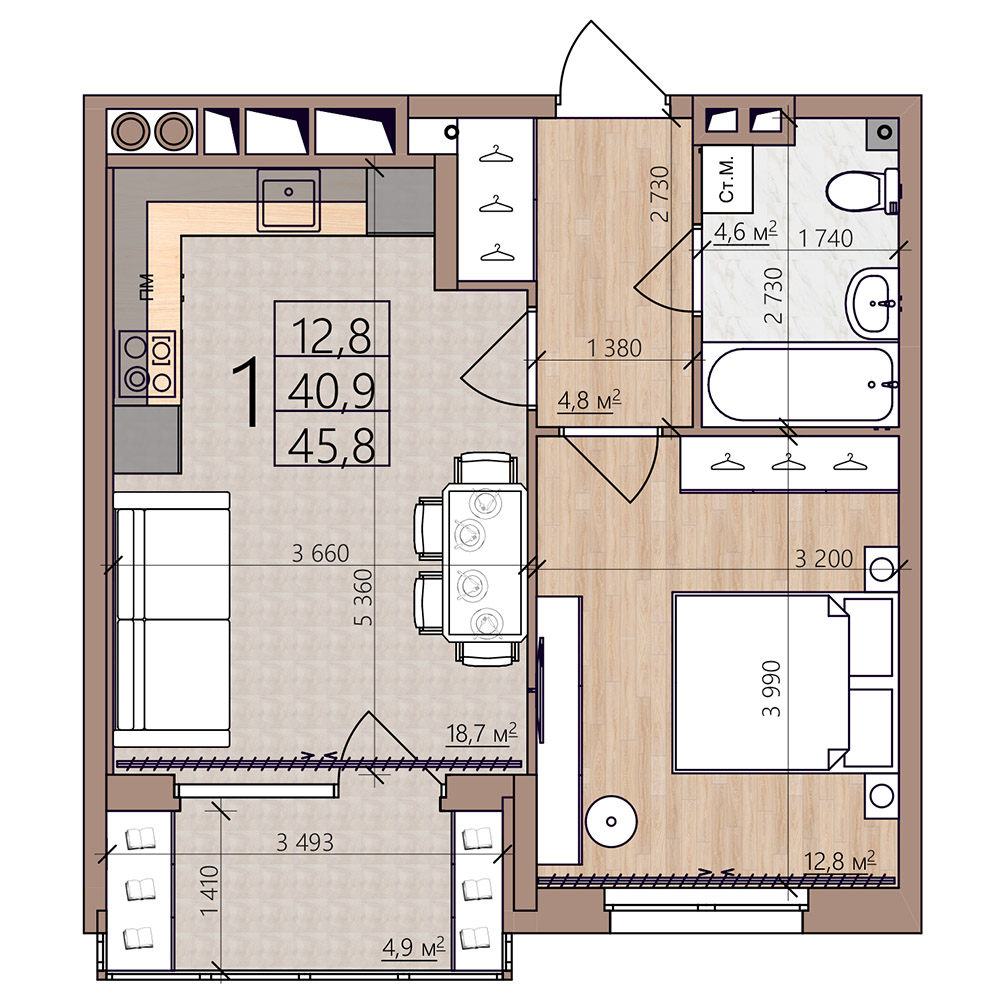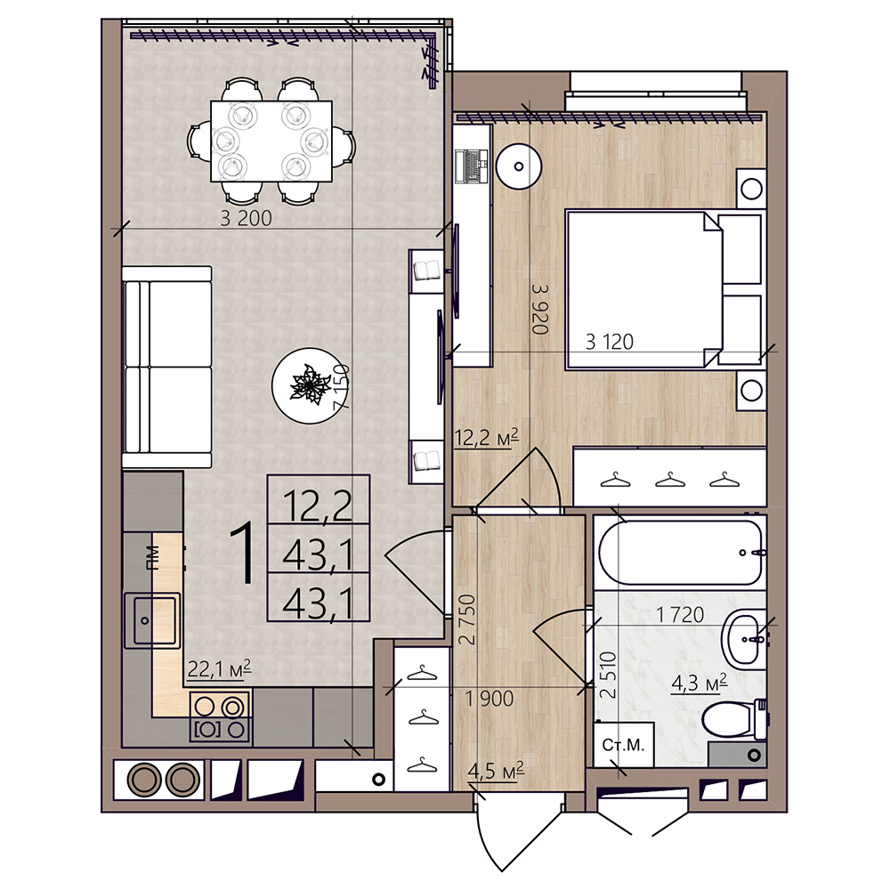 | 1-комн | от 41 м² до 70 м² | от 8,66 млн ₽ | 26 |