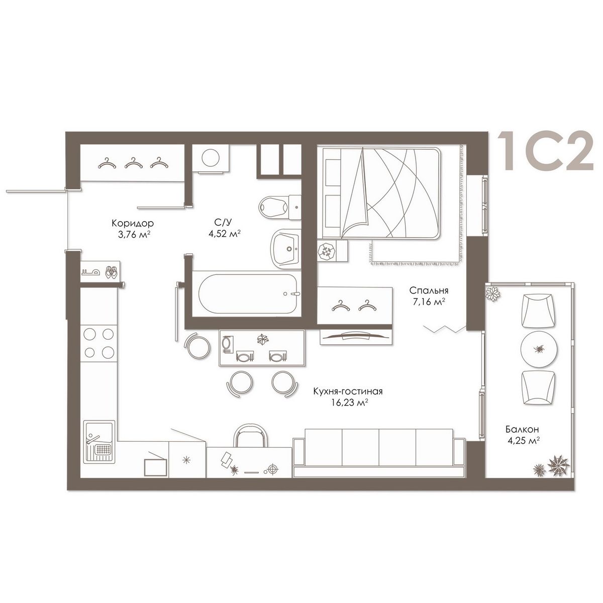 | 1-комн | от 42 м² | от 6,30 млн ₽ | 1 |