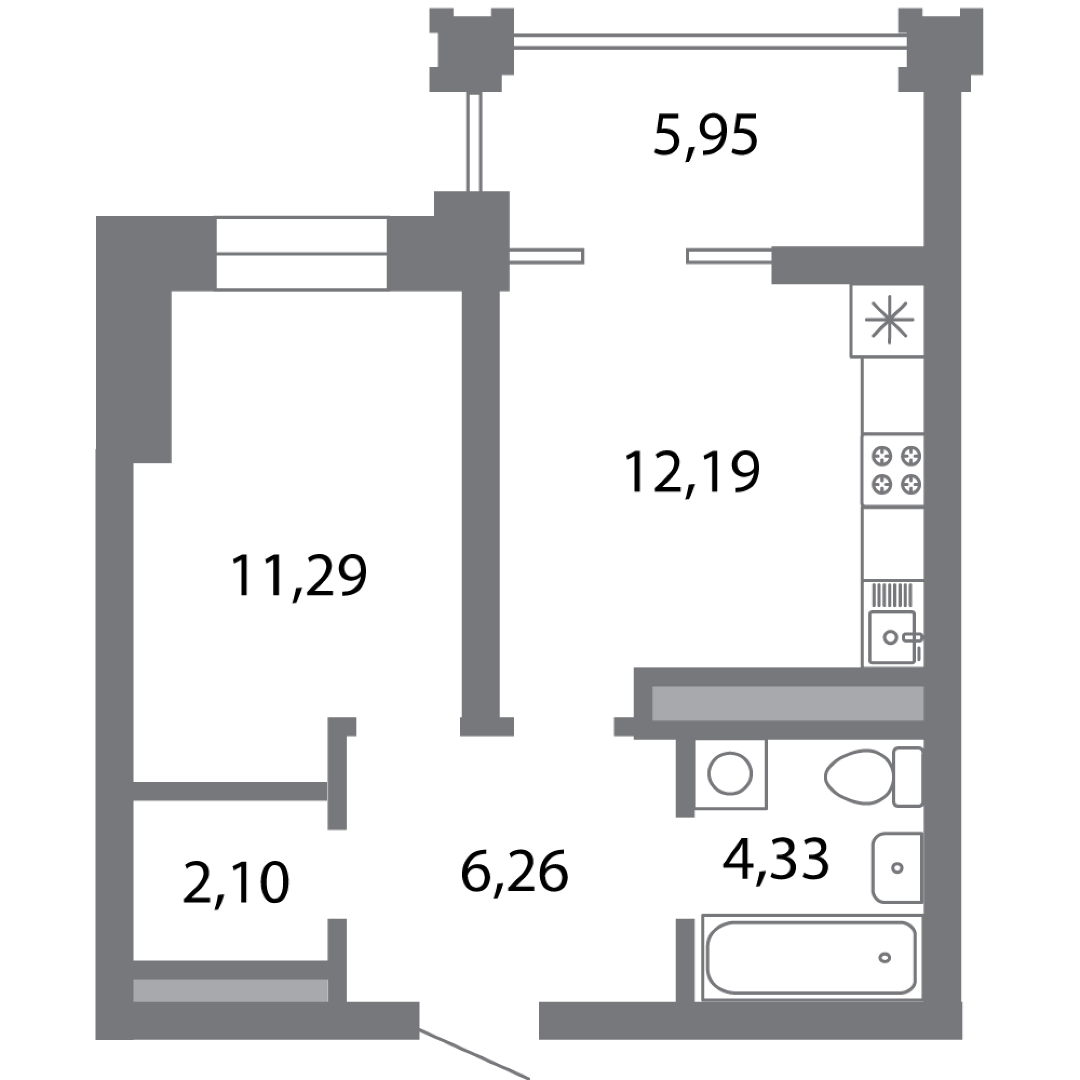 | 1-комн | от 38 м² до 54 м² | от 7,00 млн ₽ | 44 |