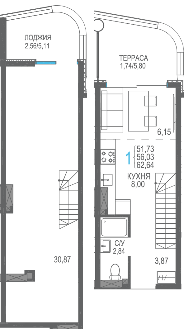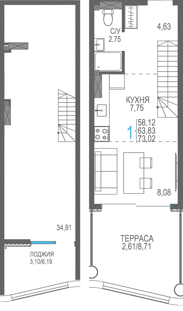 | Студии | от 60 м² до 122 м² | от 10,91 млн ₽ | 7 |