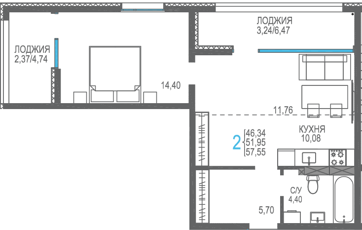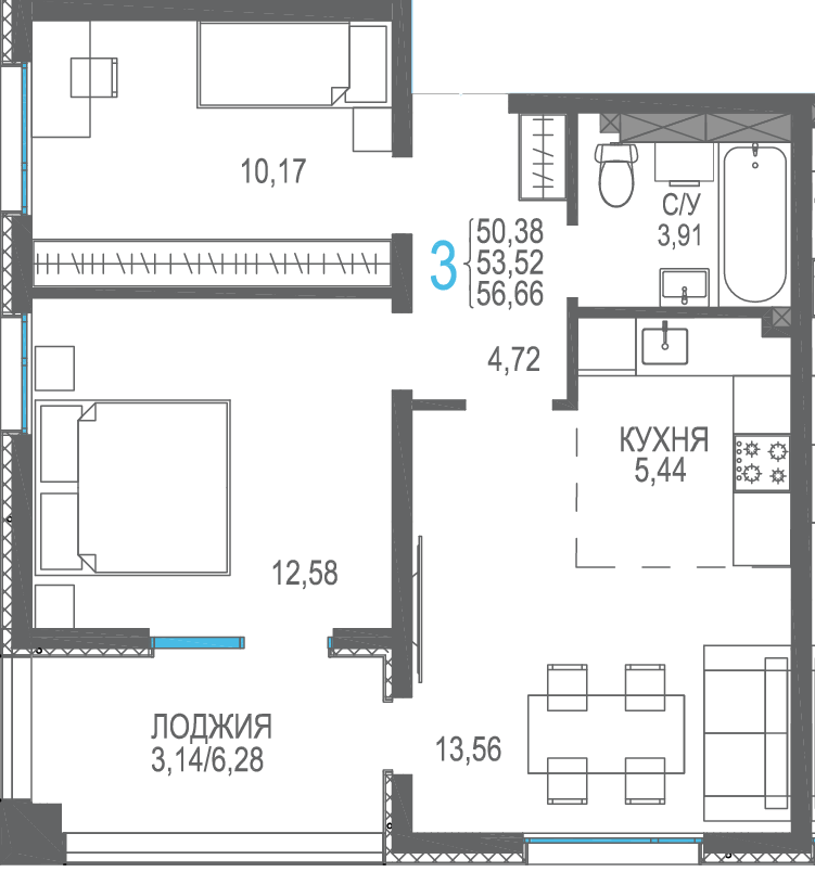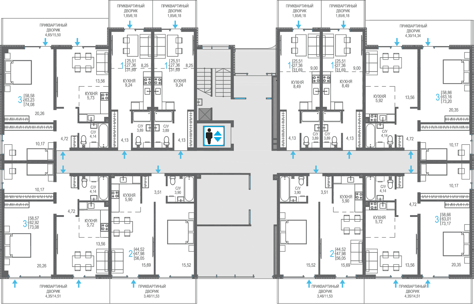 | 2-комн | от 56 м² до 79 м² | от 10,61 млн ₽ | 6 |
