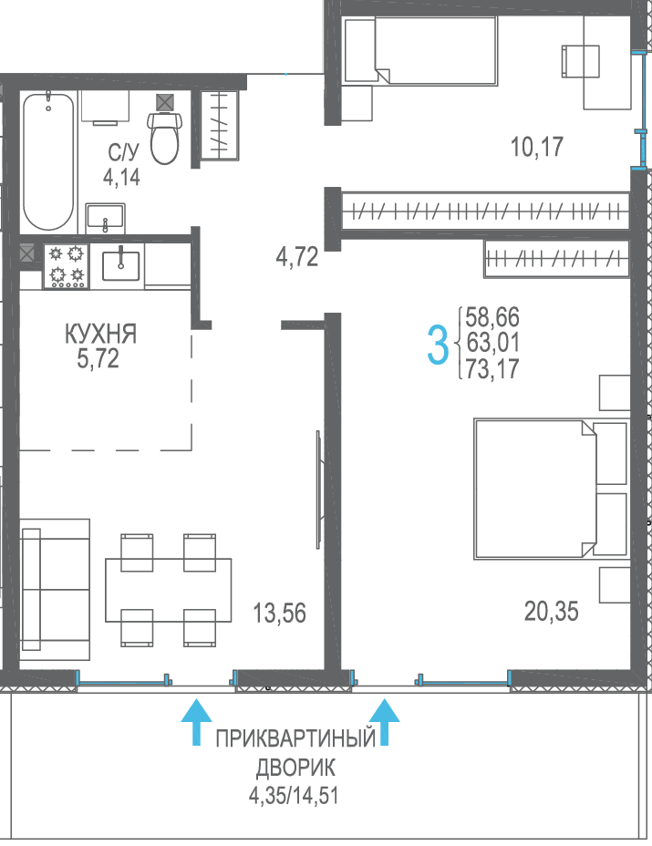 | 3-комн | от 57 м² до 74 м² | от 10,77 млн ₽ | 5 |