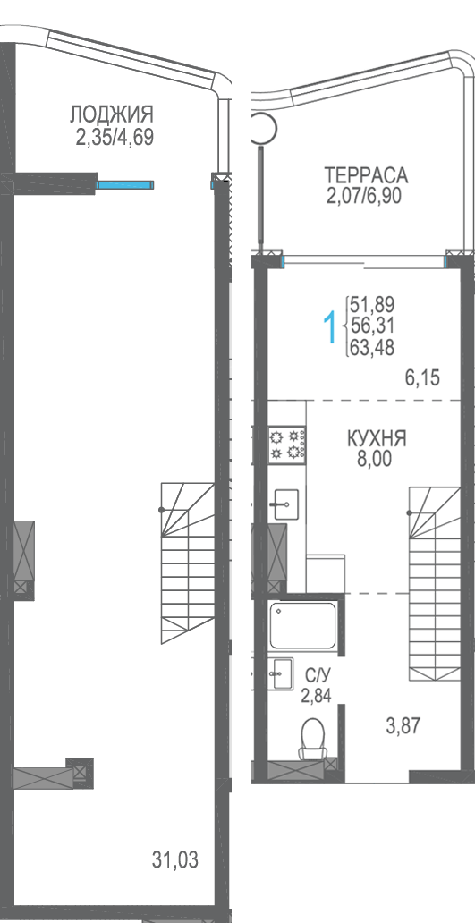 | 1-комн | от 63 м² до 105 м² | от 10,96 млн ₽ | 8 |