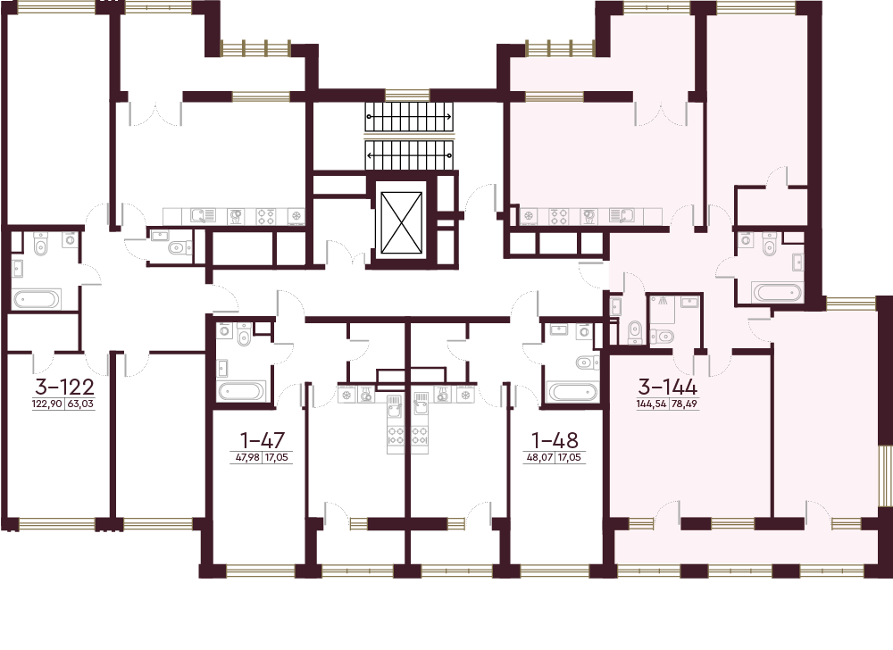 | 3-комн | от 108 м² до 144 м² | от 55,12 млн ₽ | 8 |
