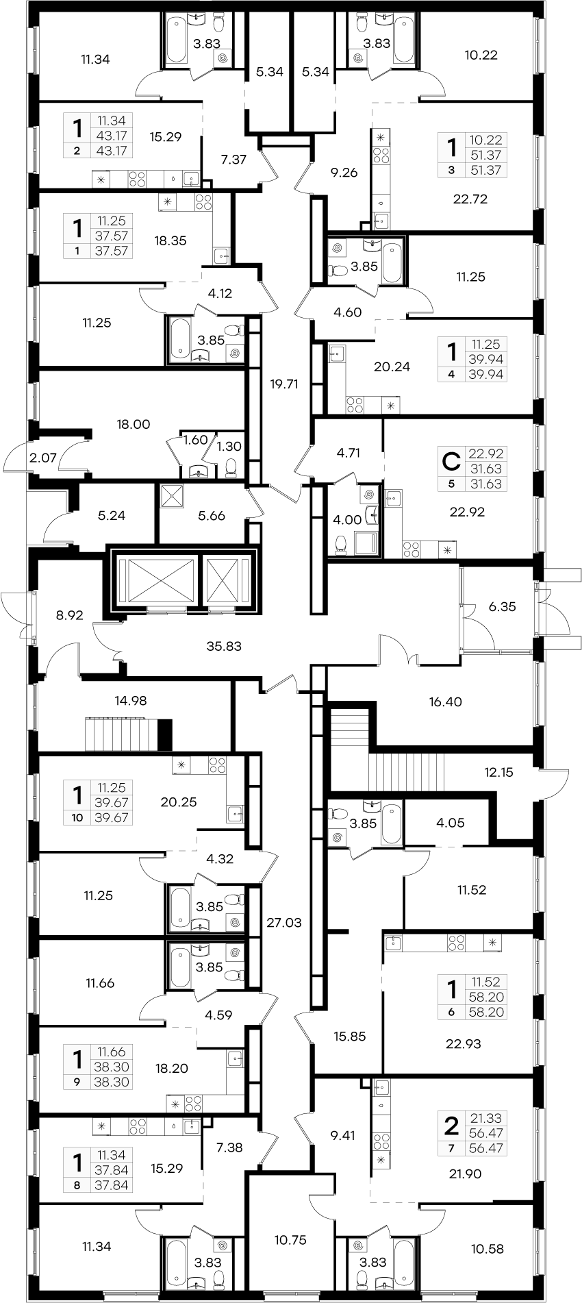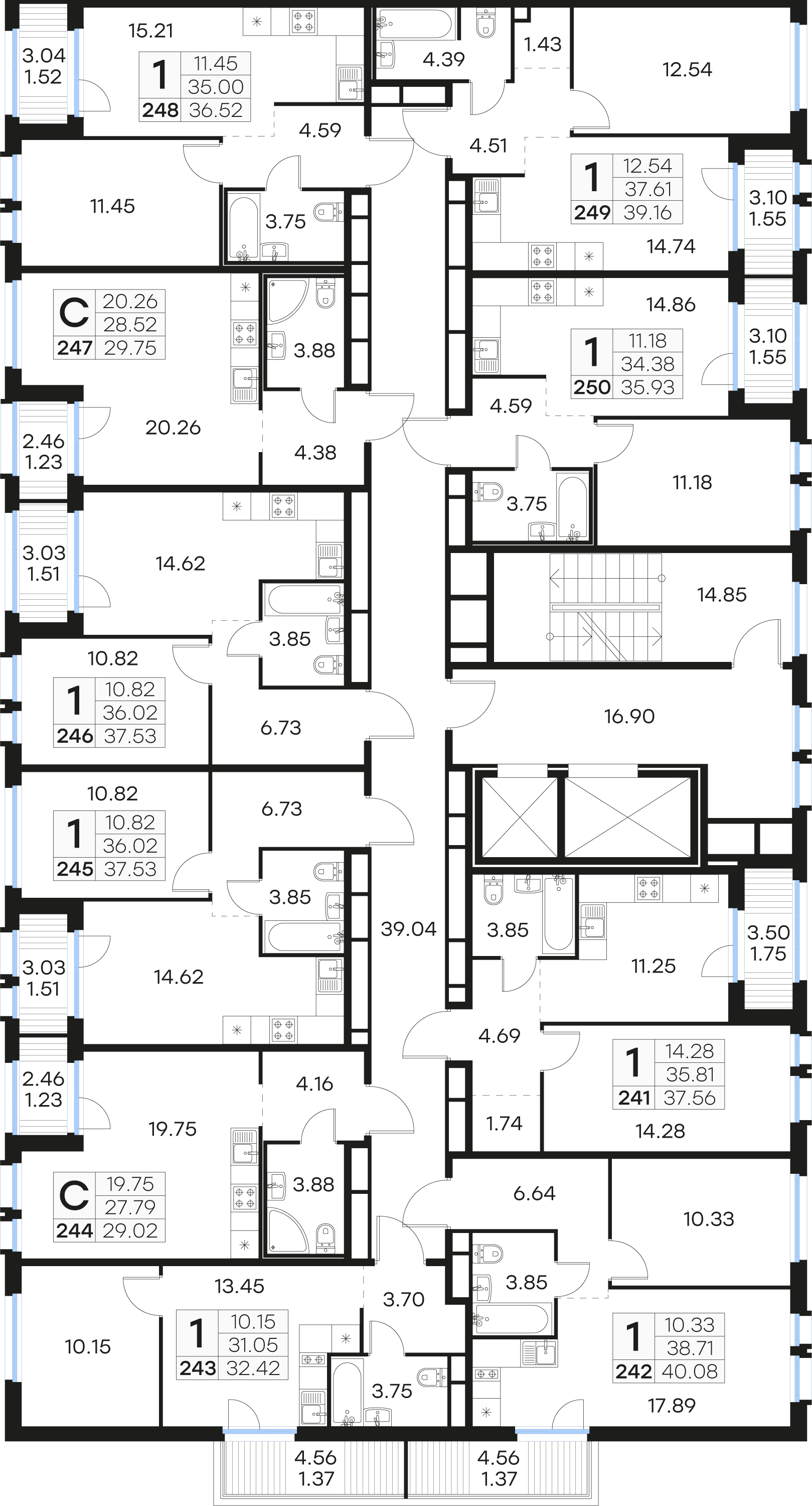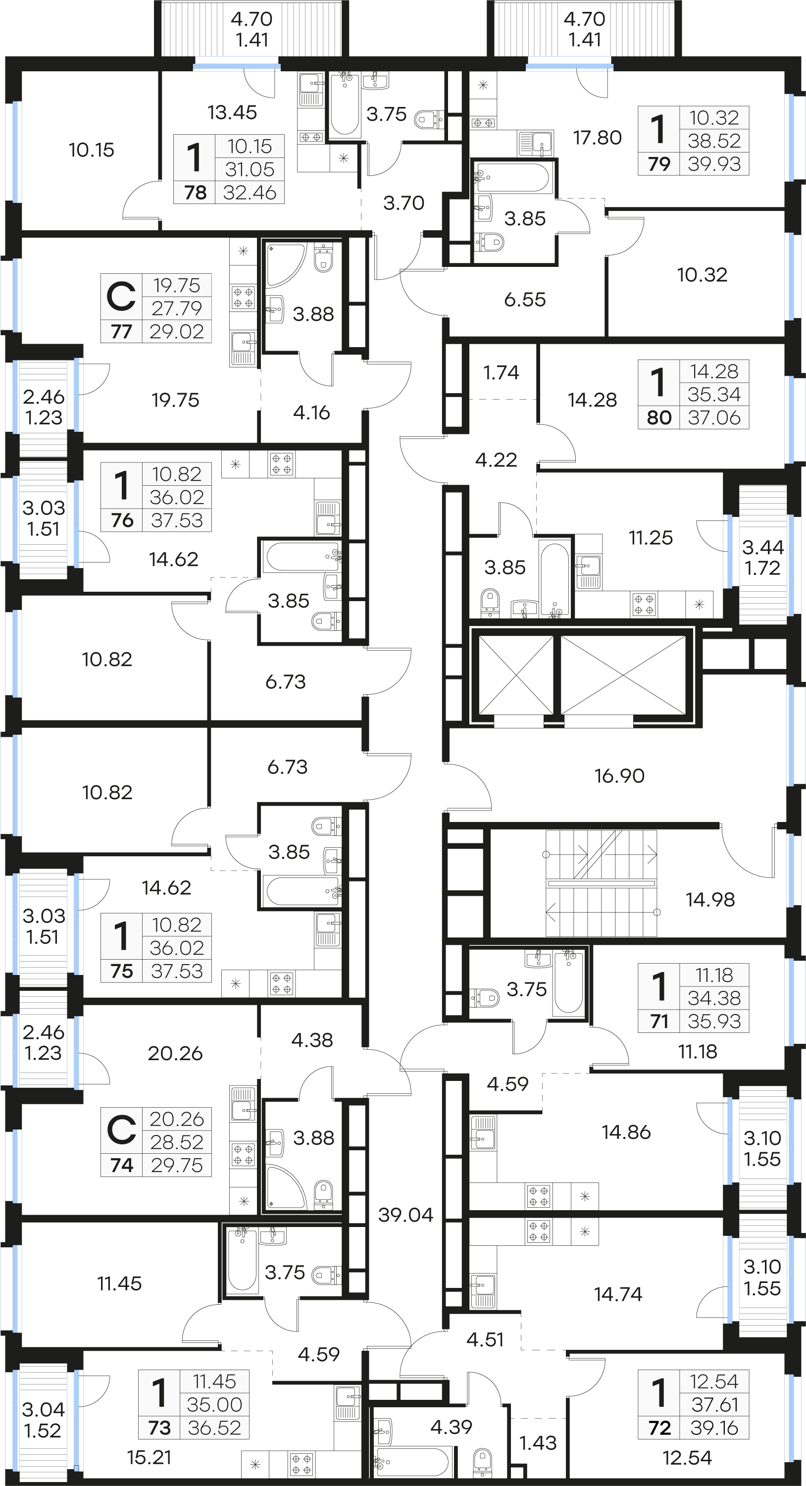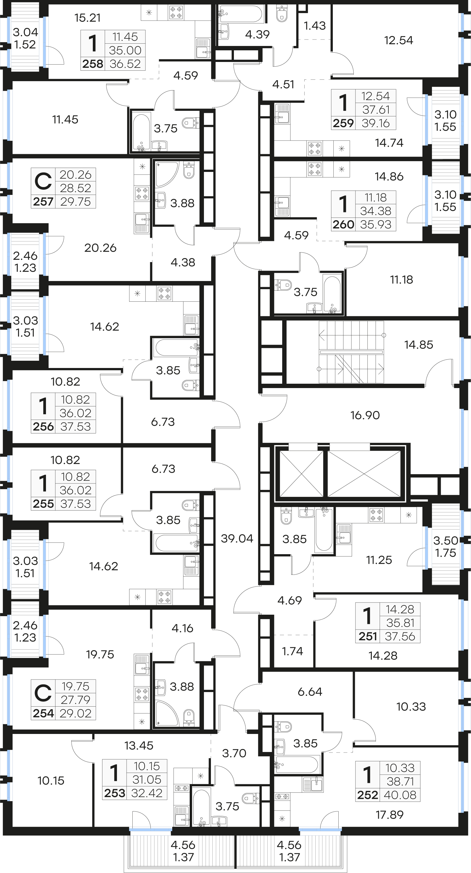 | 1-комн | от 32 м² до 40 м² | от 6,12 млн ₽ | 140 |
