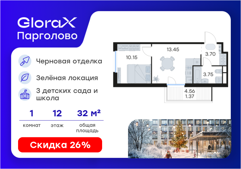 «GloraX Парголово» — большой проект жилой застройки комфорт-класса в Санкт-Петербурге, в 15 минутах езды от метро «Проспект Просвещения». Здесь можно купить квартиру евроформата или со стандартной...