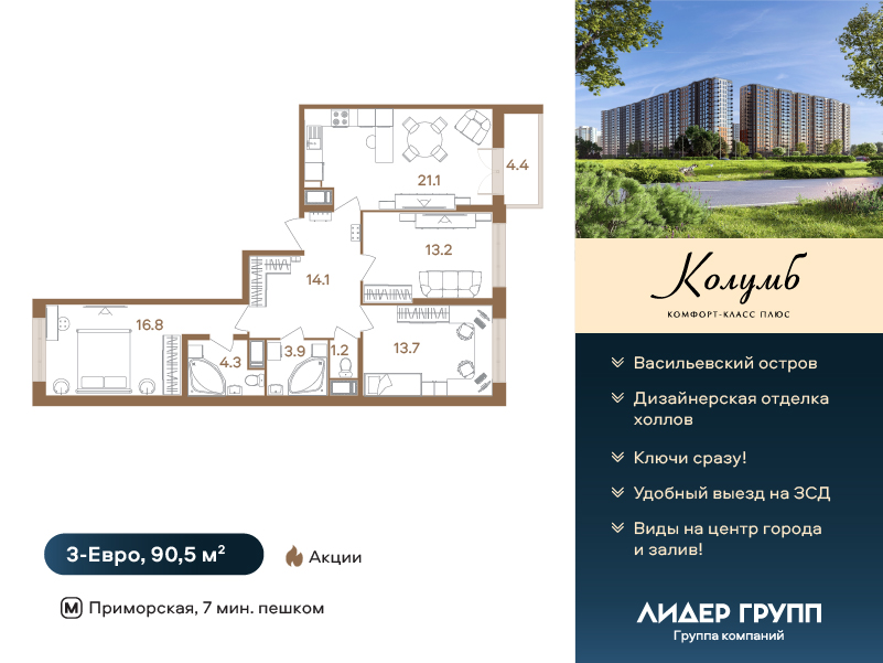 «Гавань Капитанов» от ГК «Лидер Групп» предлагает своим жильцам уютные квартиры комфорт- и бизнес-класса в одном из самых живописных мест Санкт-Петербурга – на берегу Финского залива. Чистота морской...