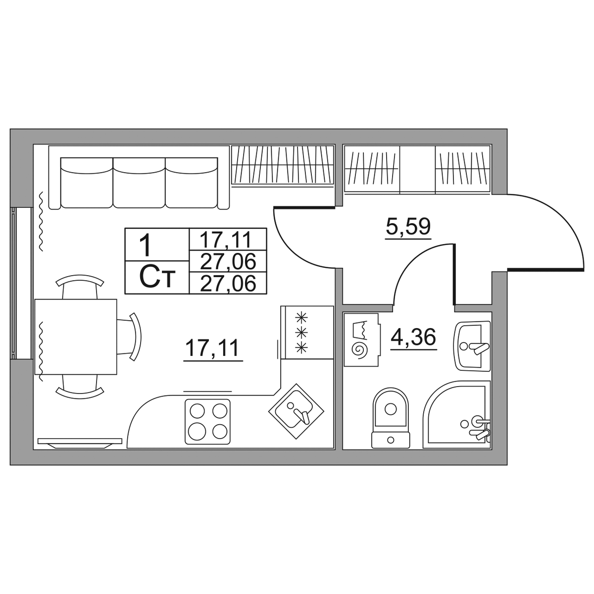 | 1-комн | от 36 м² до 56 м² | от 5,43 млн ₽ | 13 |