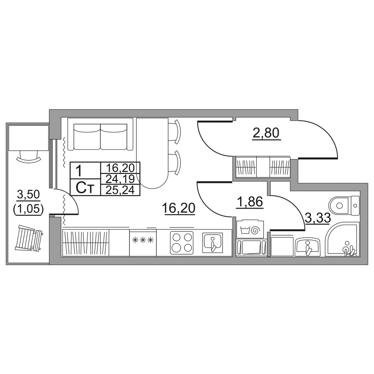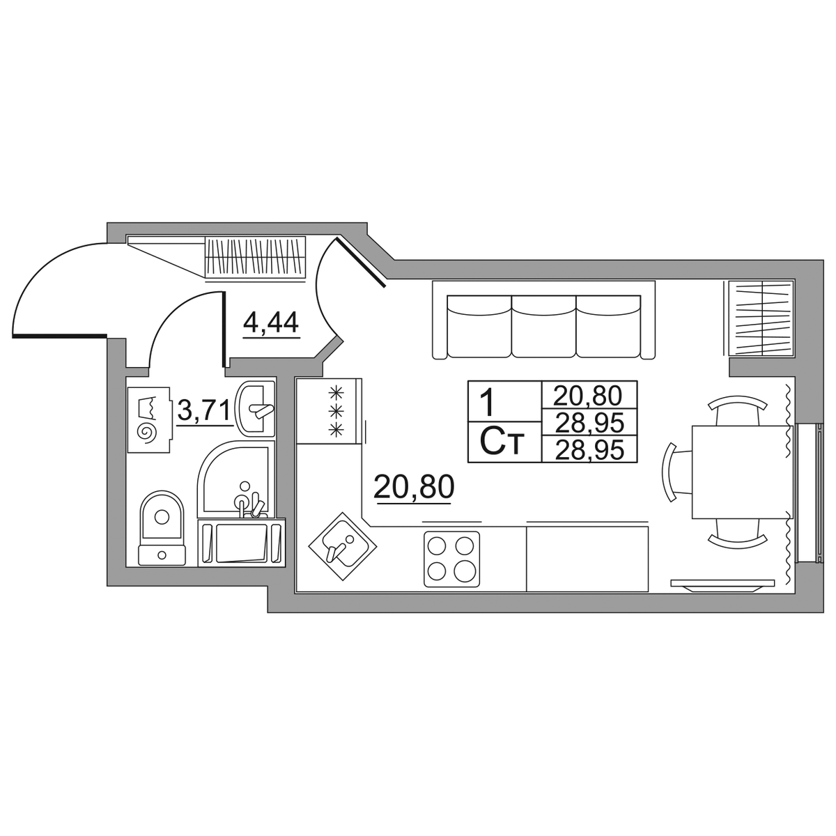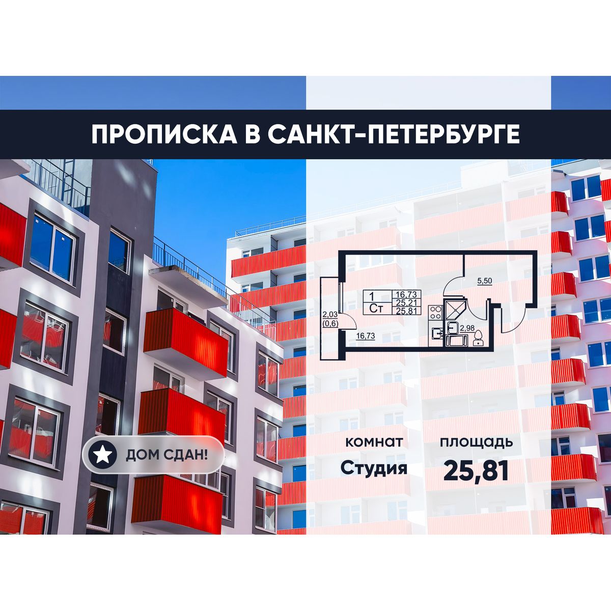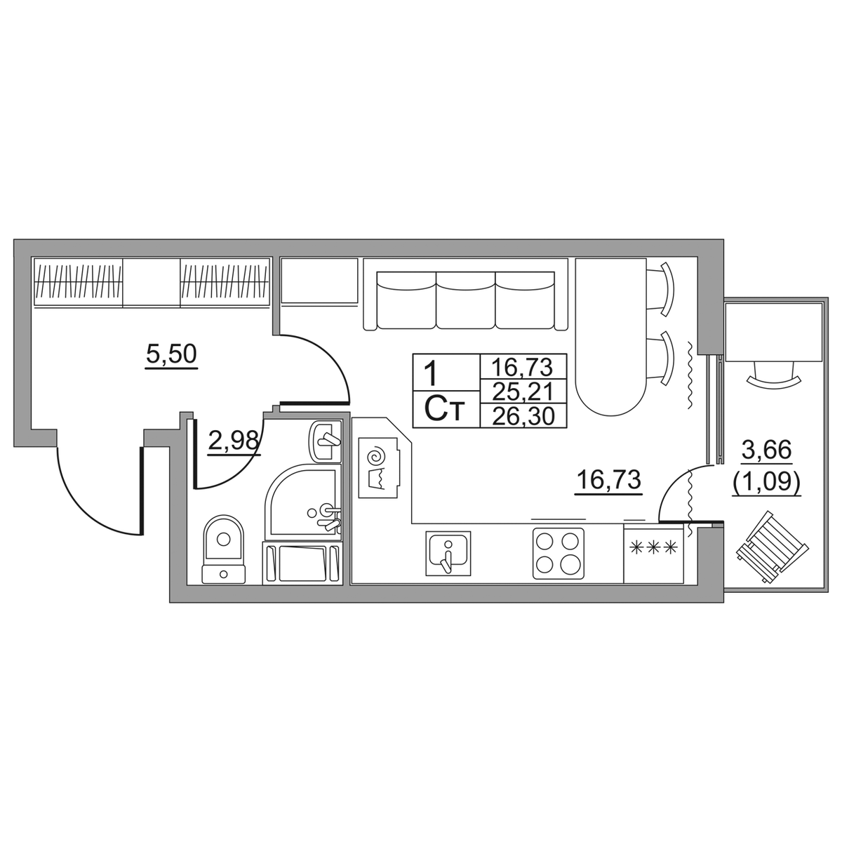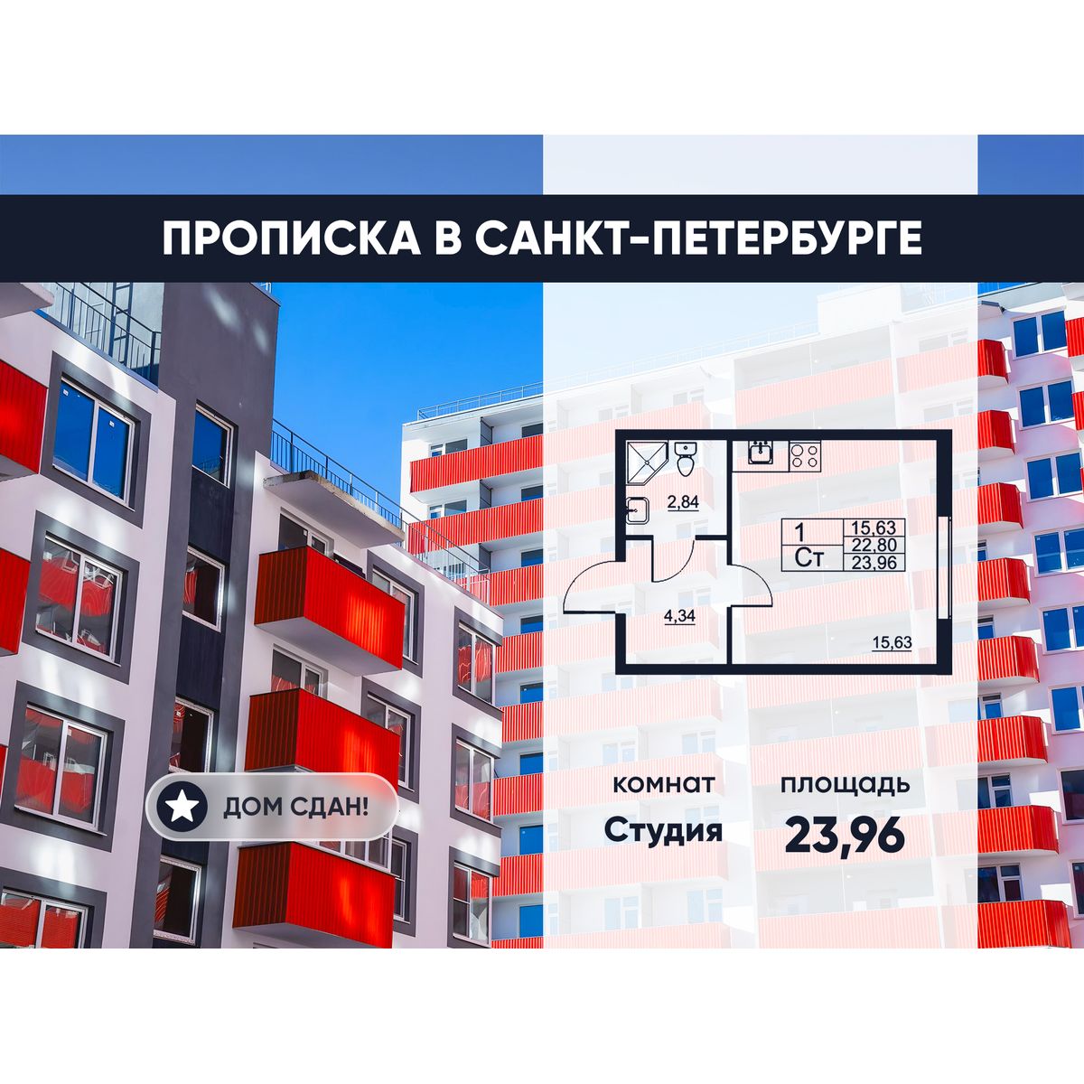 | Студии | от 23 м² до 35 м² | от 3,26 млн ₽ | 44 |