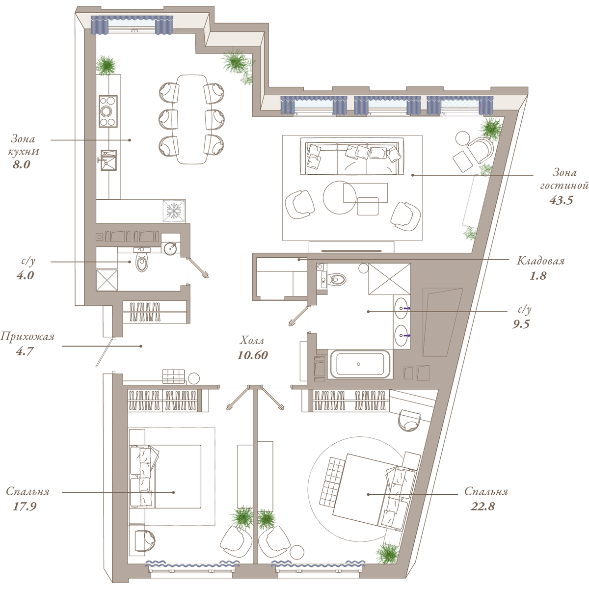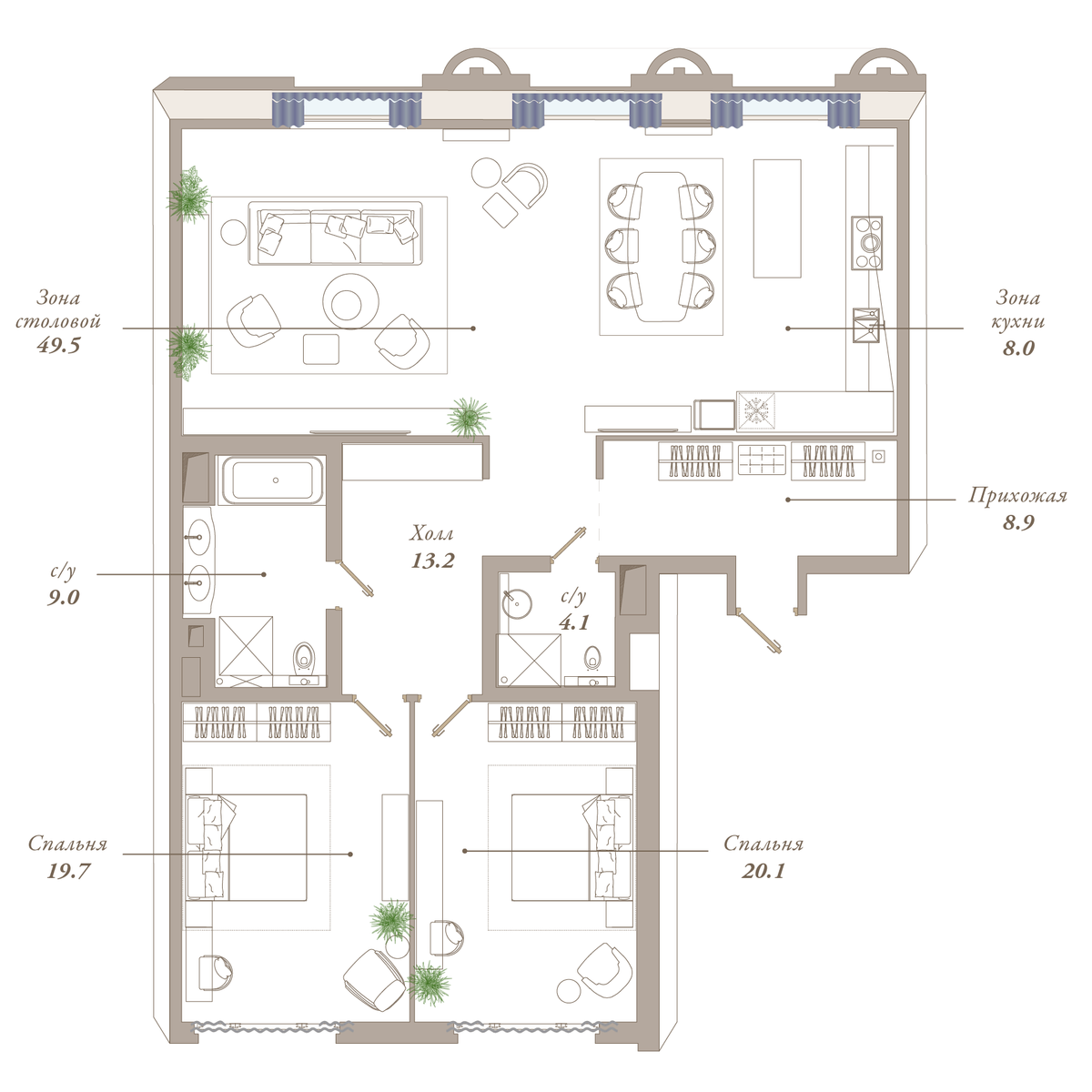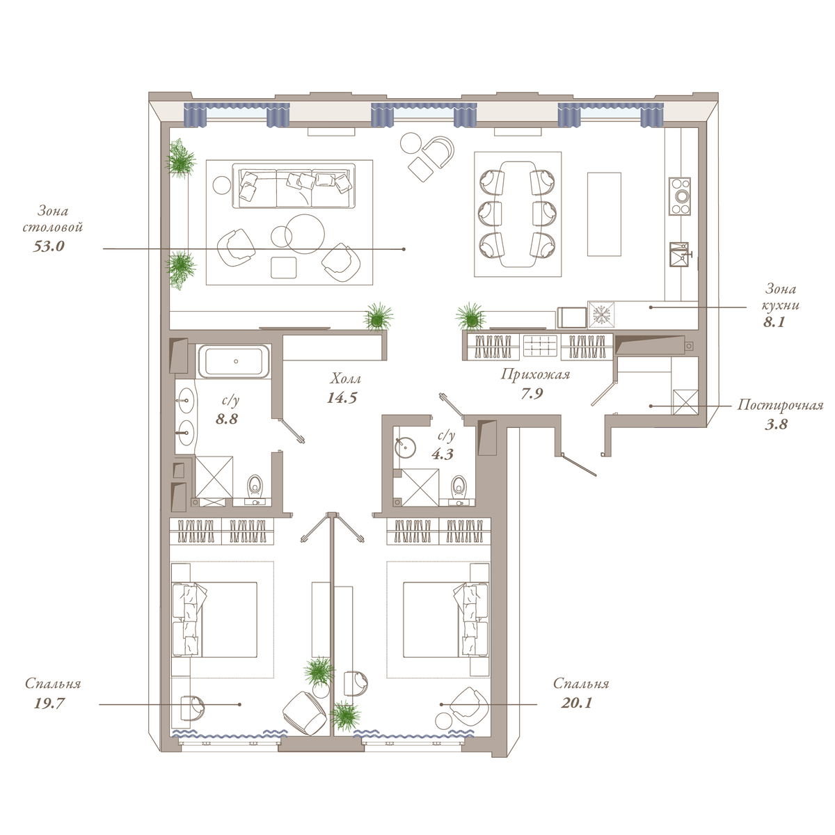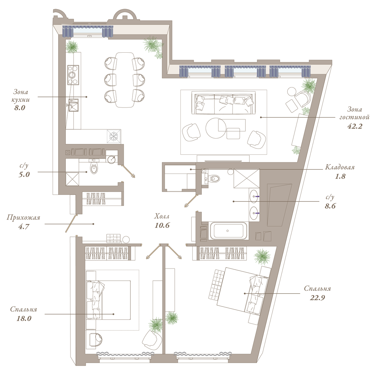 | 2-комн | от 120 м² до 181 м² | от 122,80 млн ₽ | 7 |