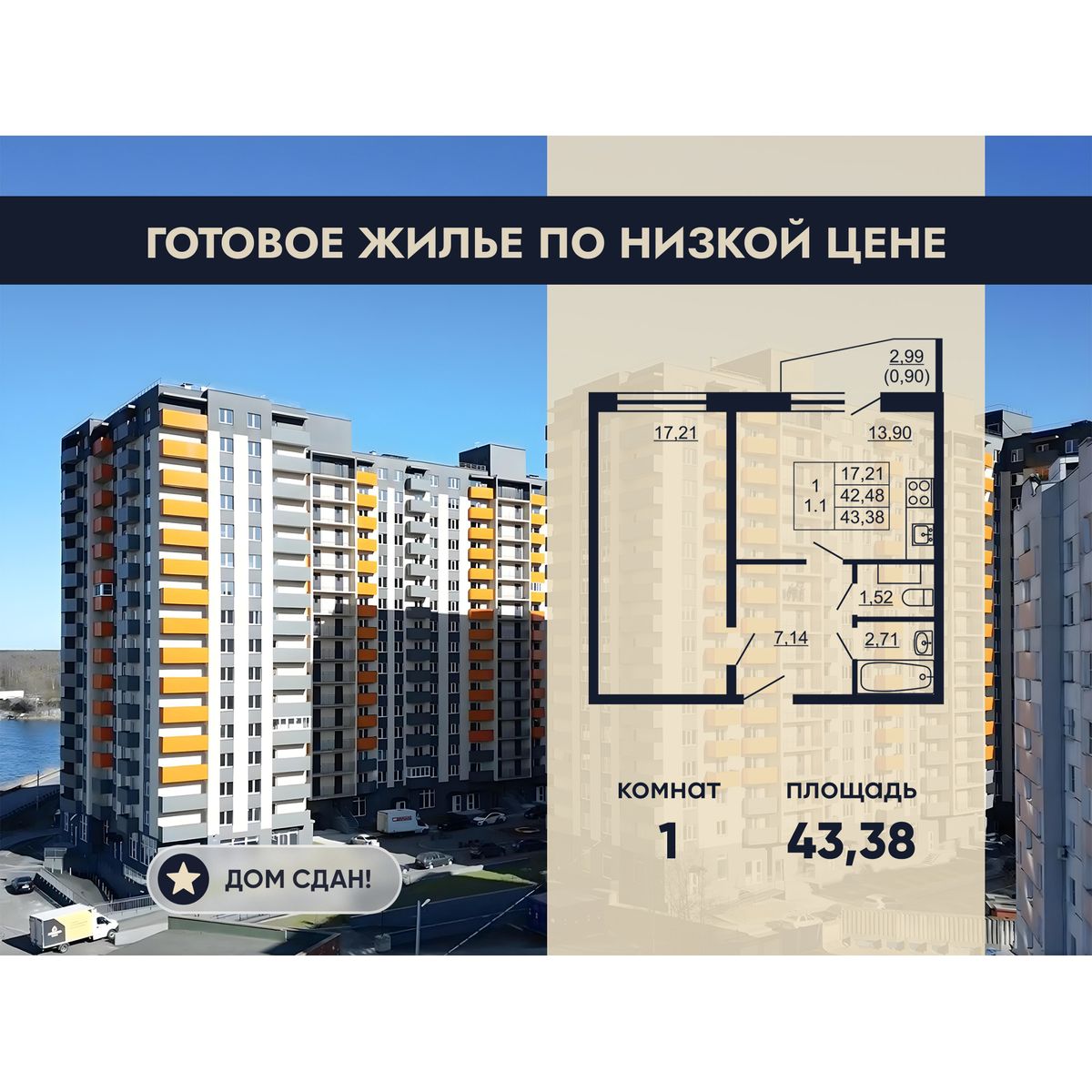 | 1-комн | от 39 м² до 46 м² | от 4,18 млн ₽ | 97 |