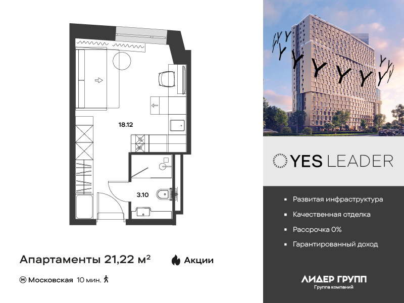 | Студии | от 20 м² до 32 м² | от 5,88 млн ₽ | 101 |