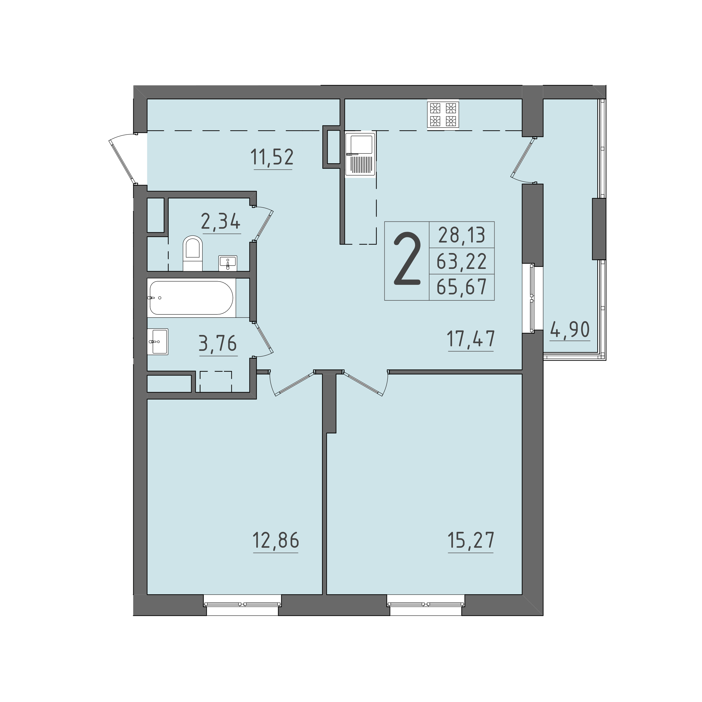 | 2-комн | от 64 м² до 72 м² | от 8,00 млн ₽ | 52 |