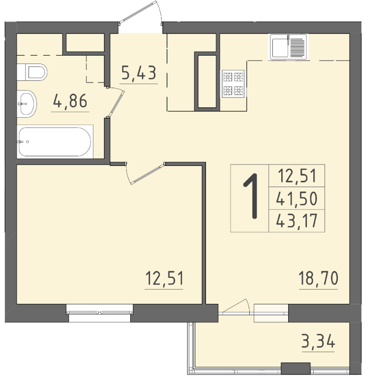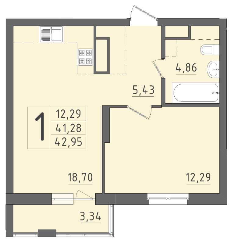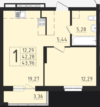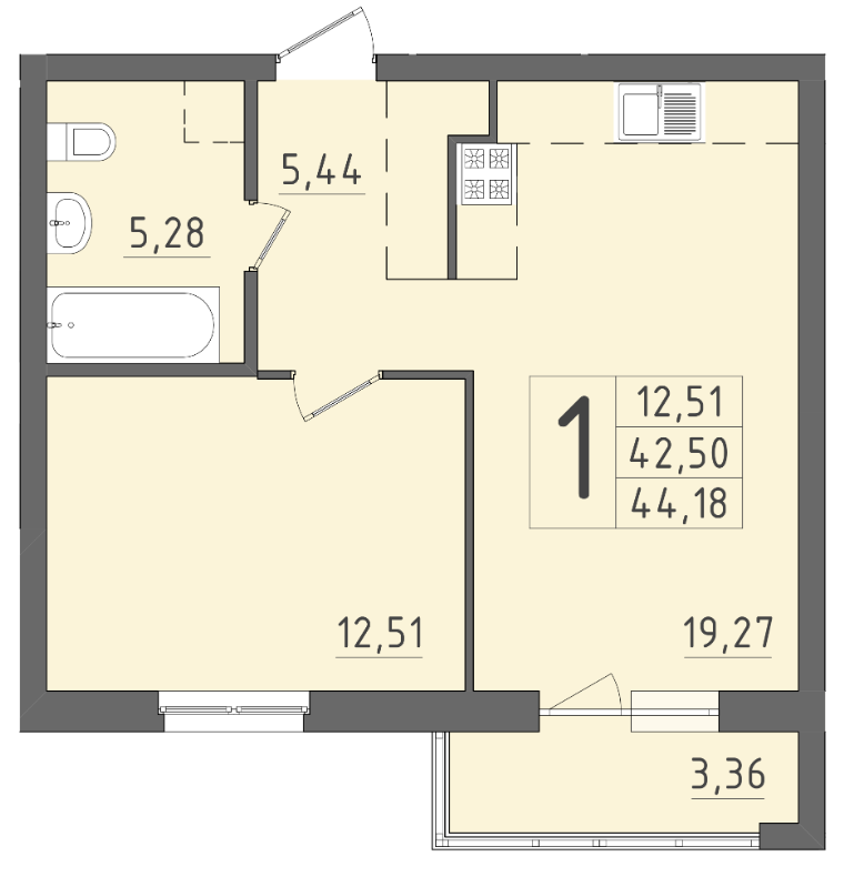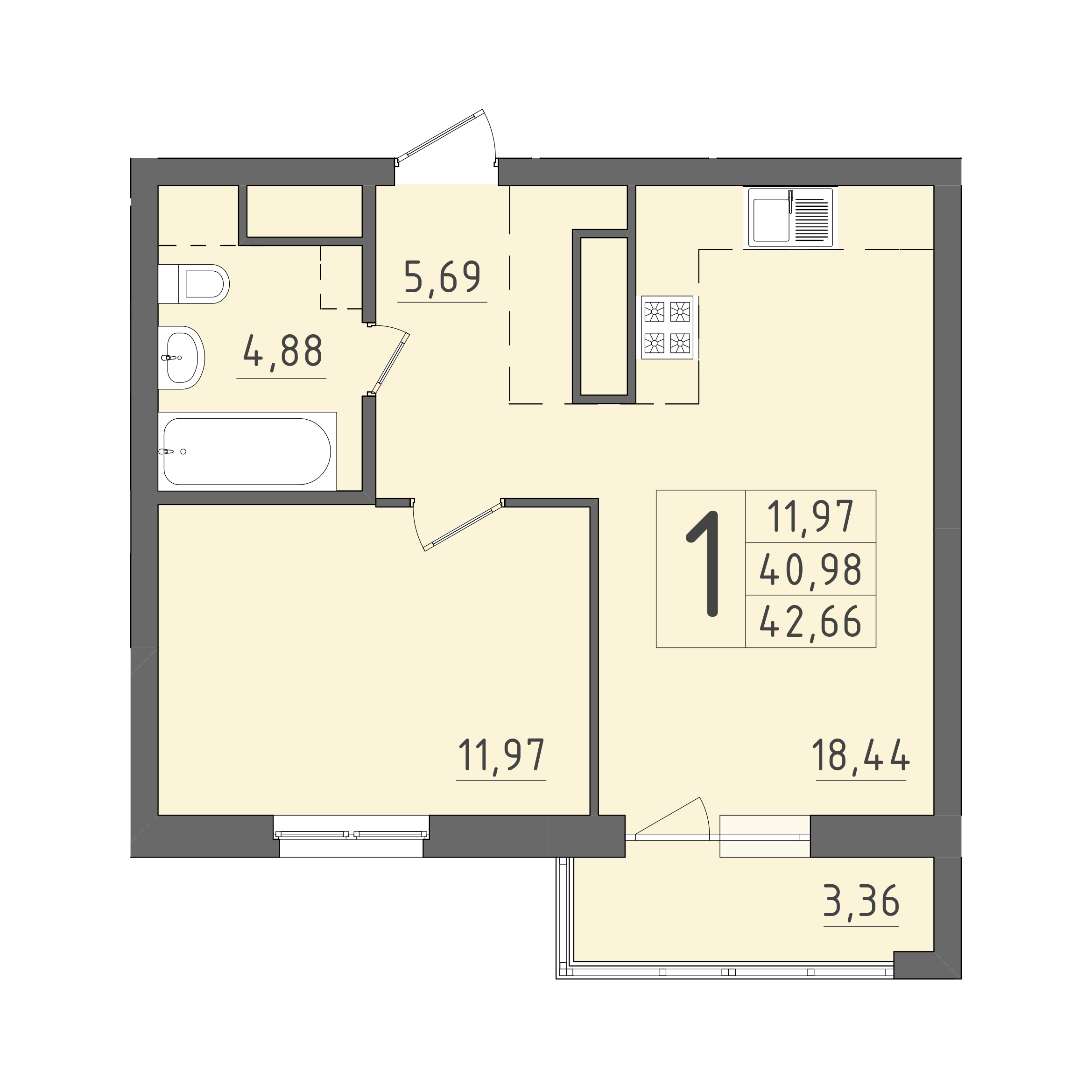 | 1-комн | от 42 м² до 44 м² | от 5,43 млн ₽ | 12 |