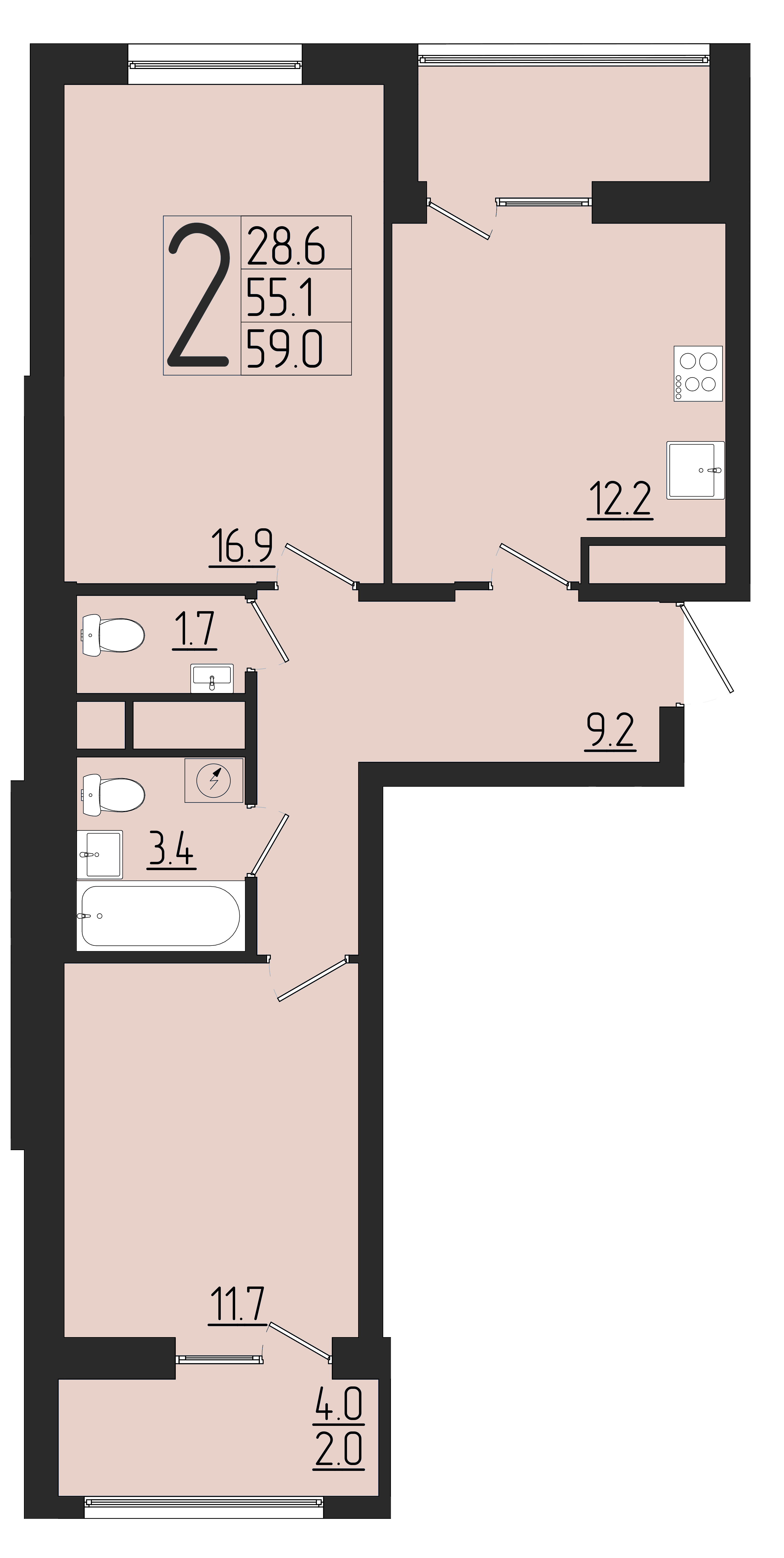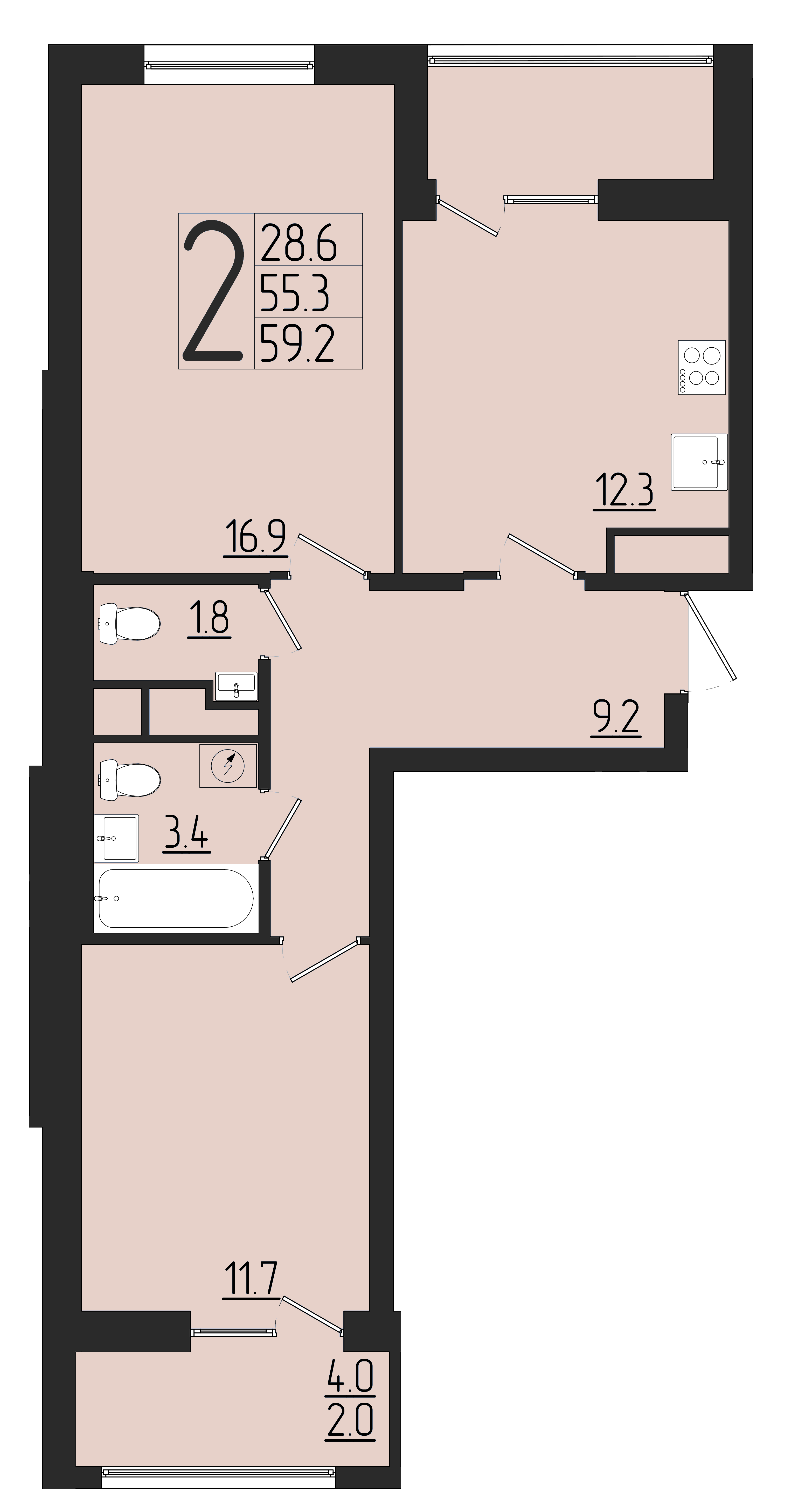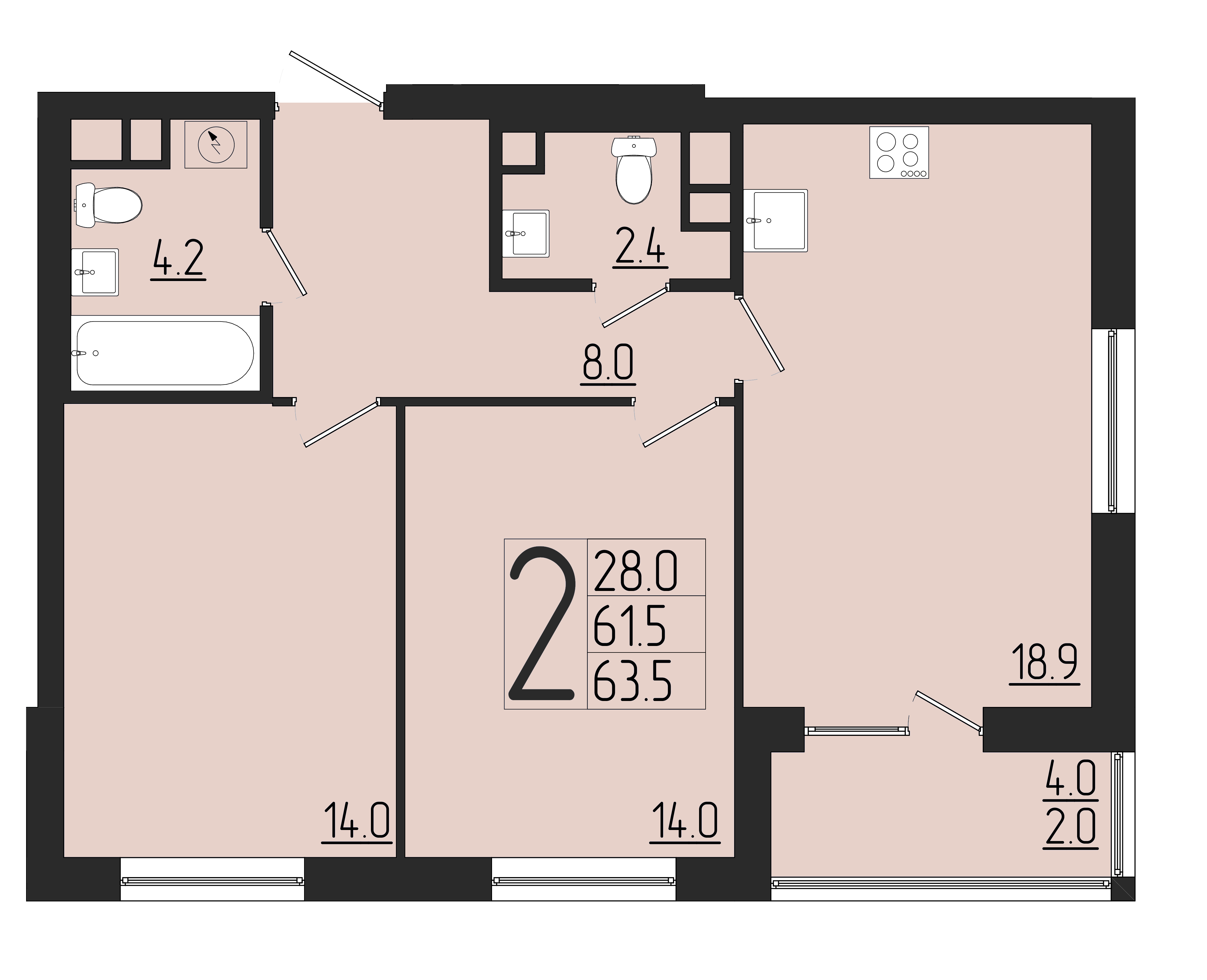 | 2-комн | от 59 м² до 75 м² | от 7,90 млн ₽ | 68 |