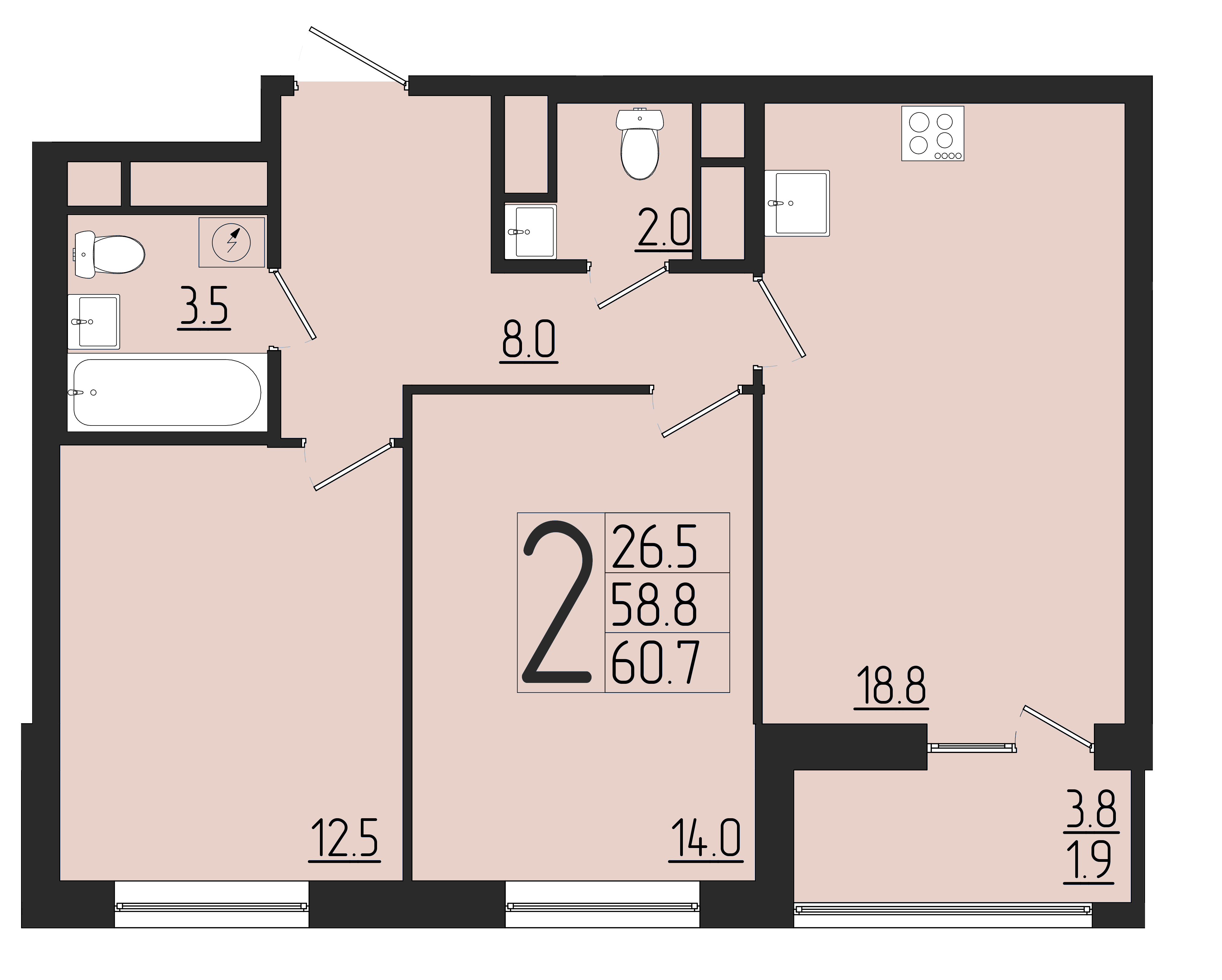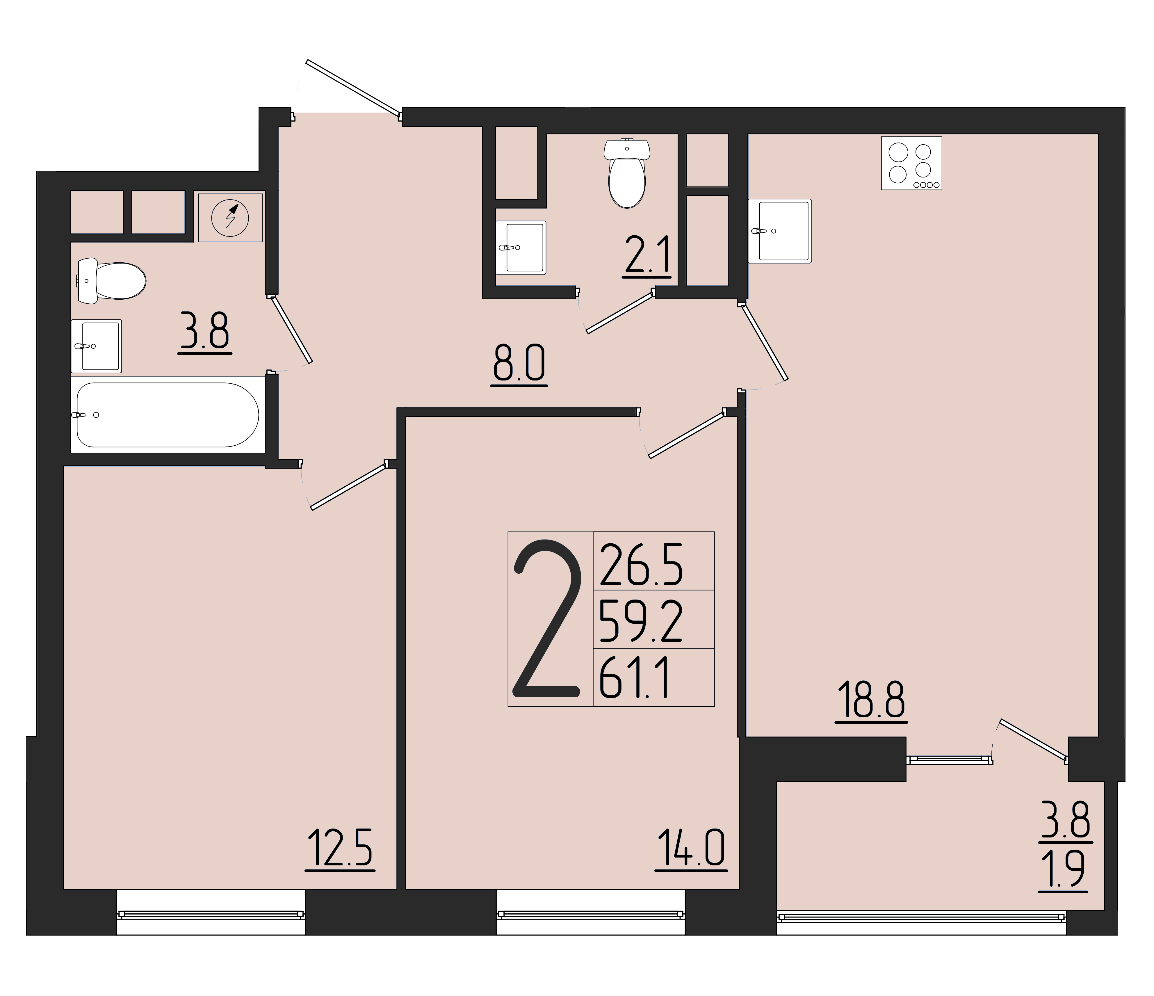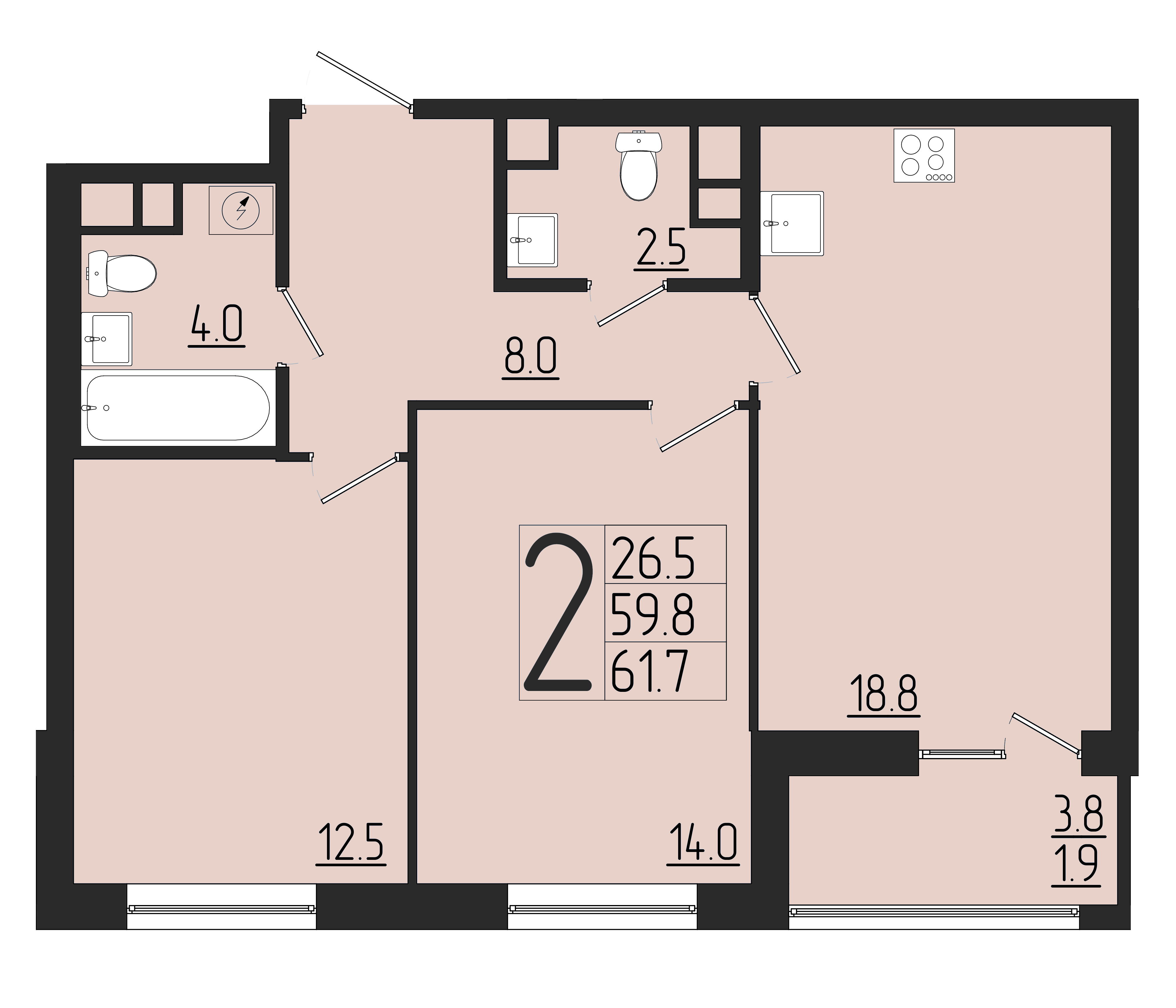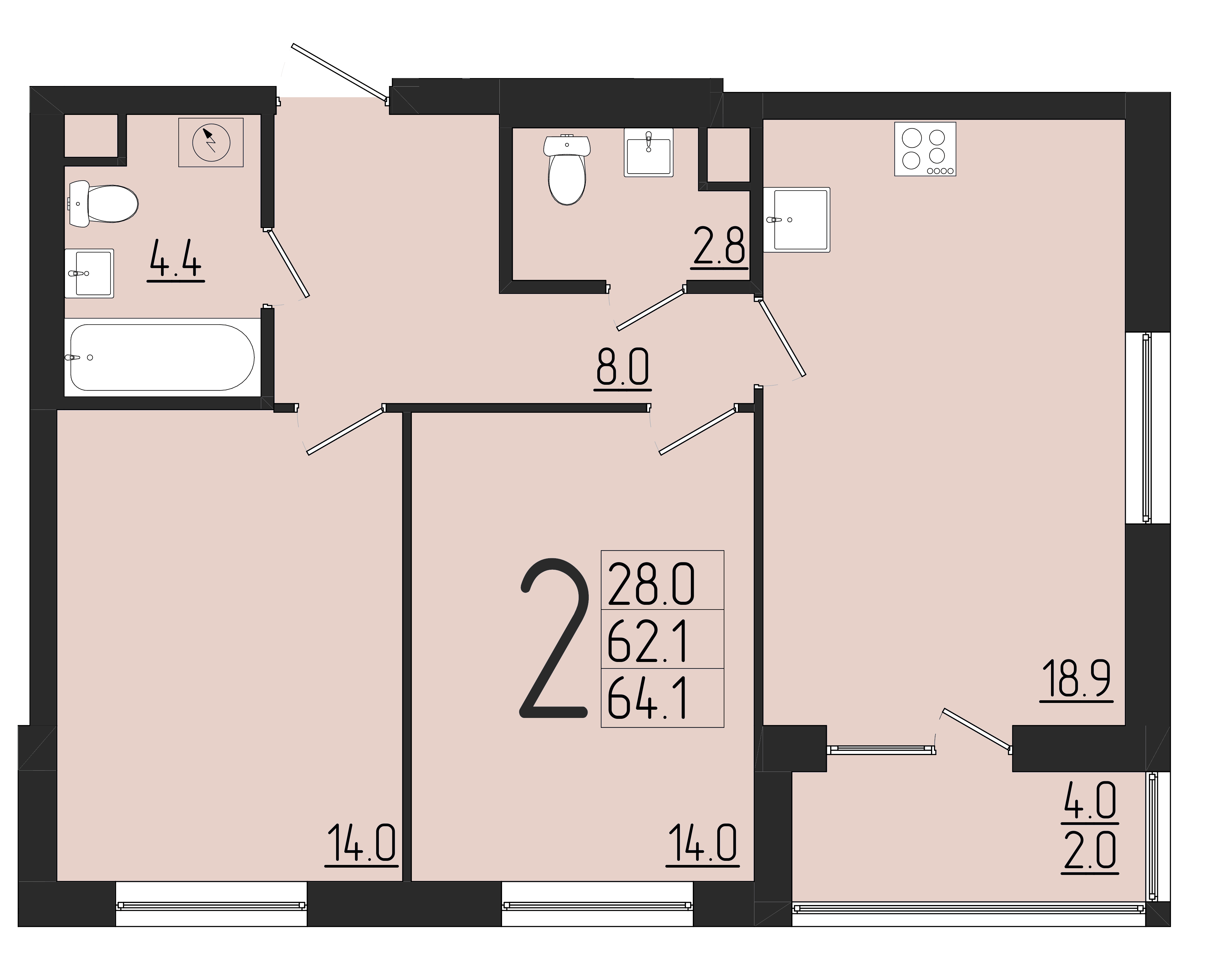 | 2-комн | от 59 м² до 75 м² | от 7,90 млн ₽ | 68 |