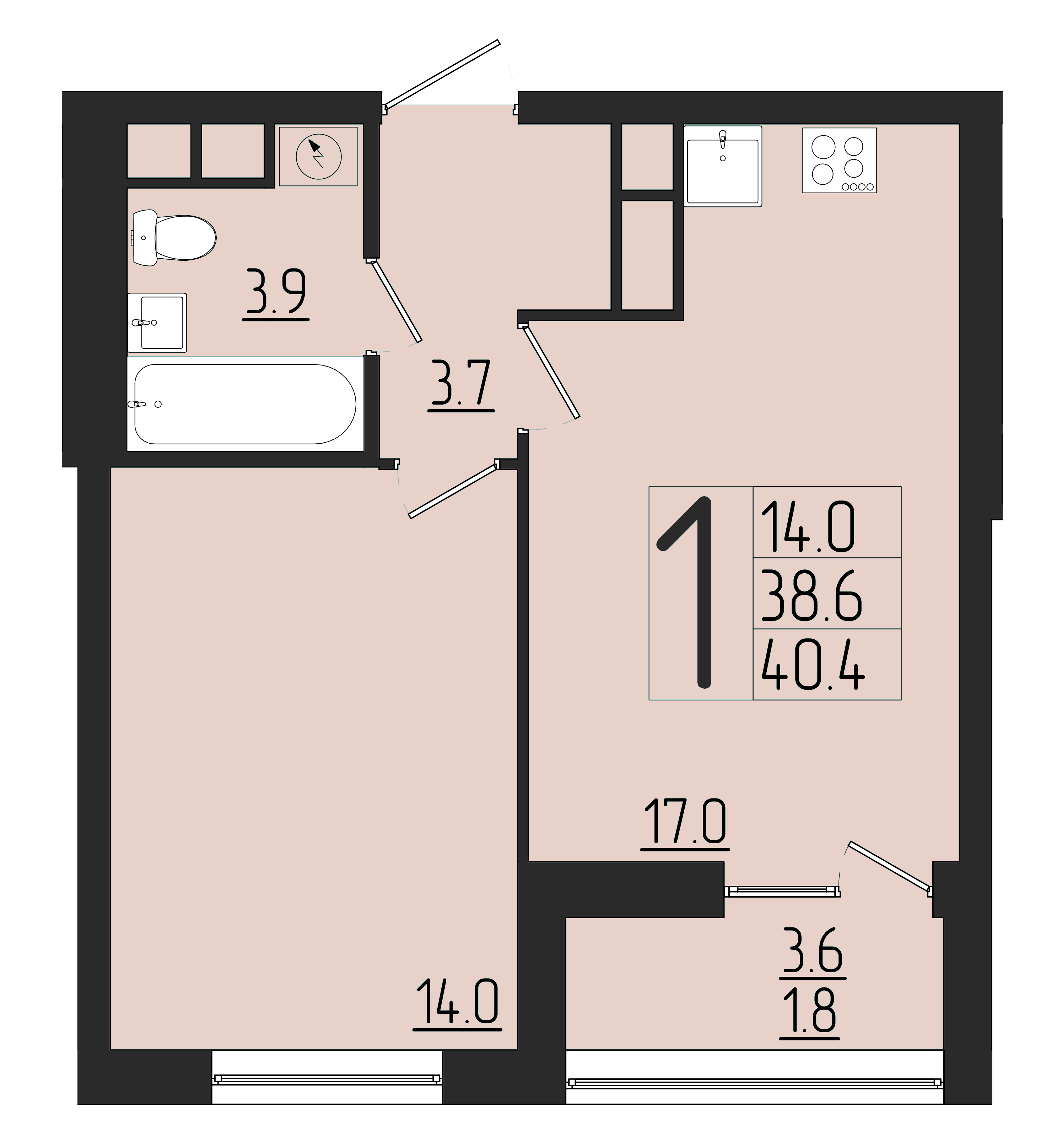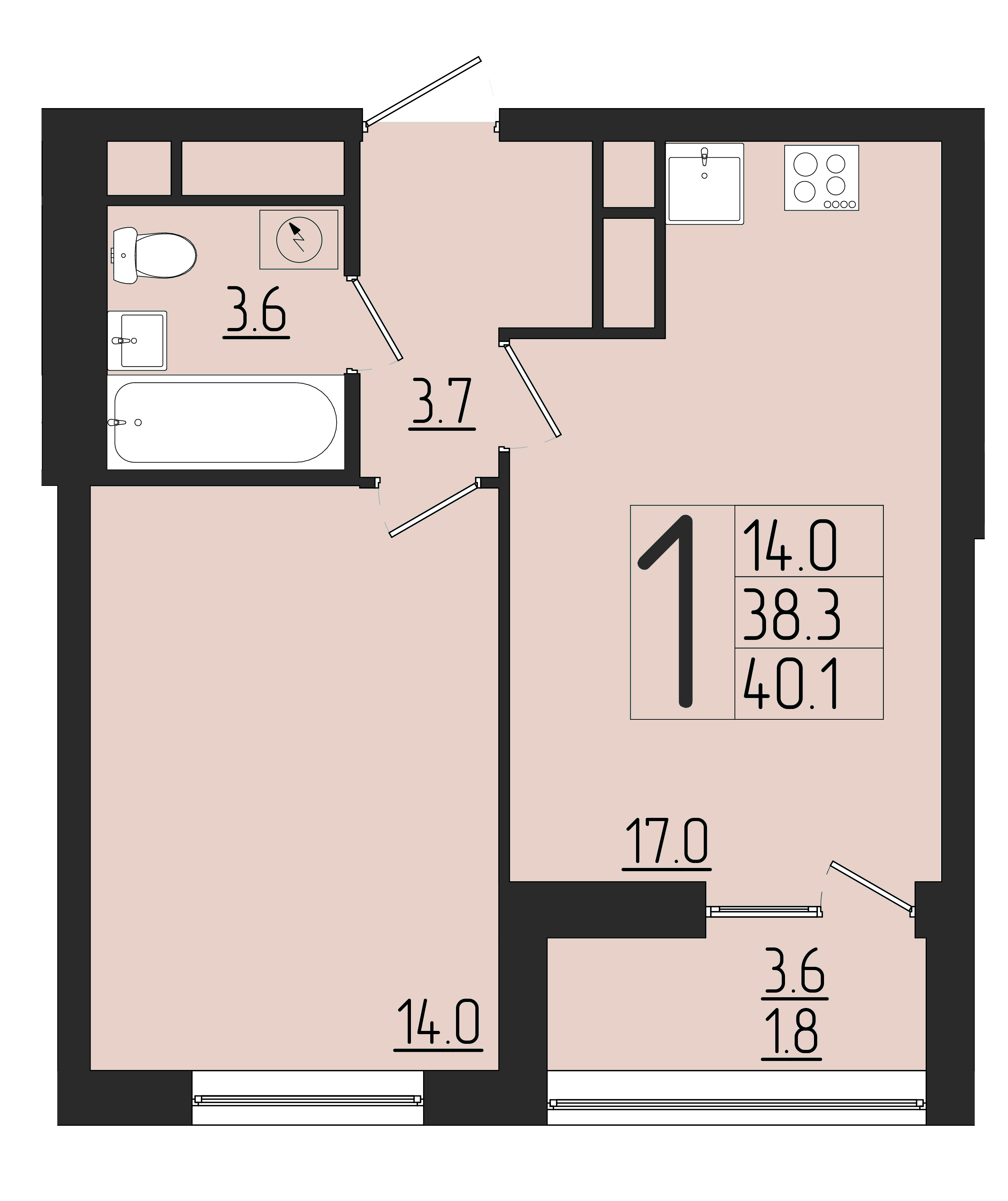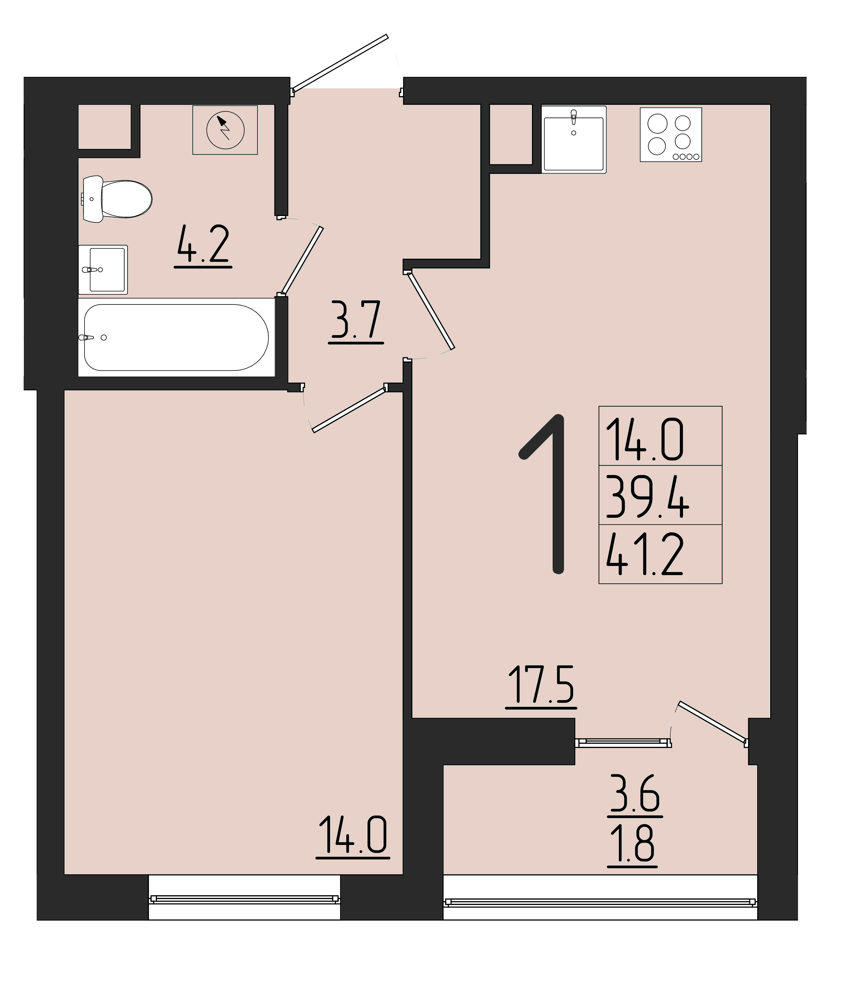 | 1-комн | от 39 м² до 41 м² | от 5,09 млн ₽ | 30 |