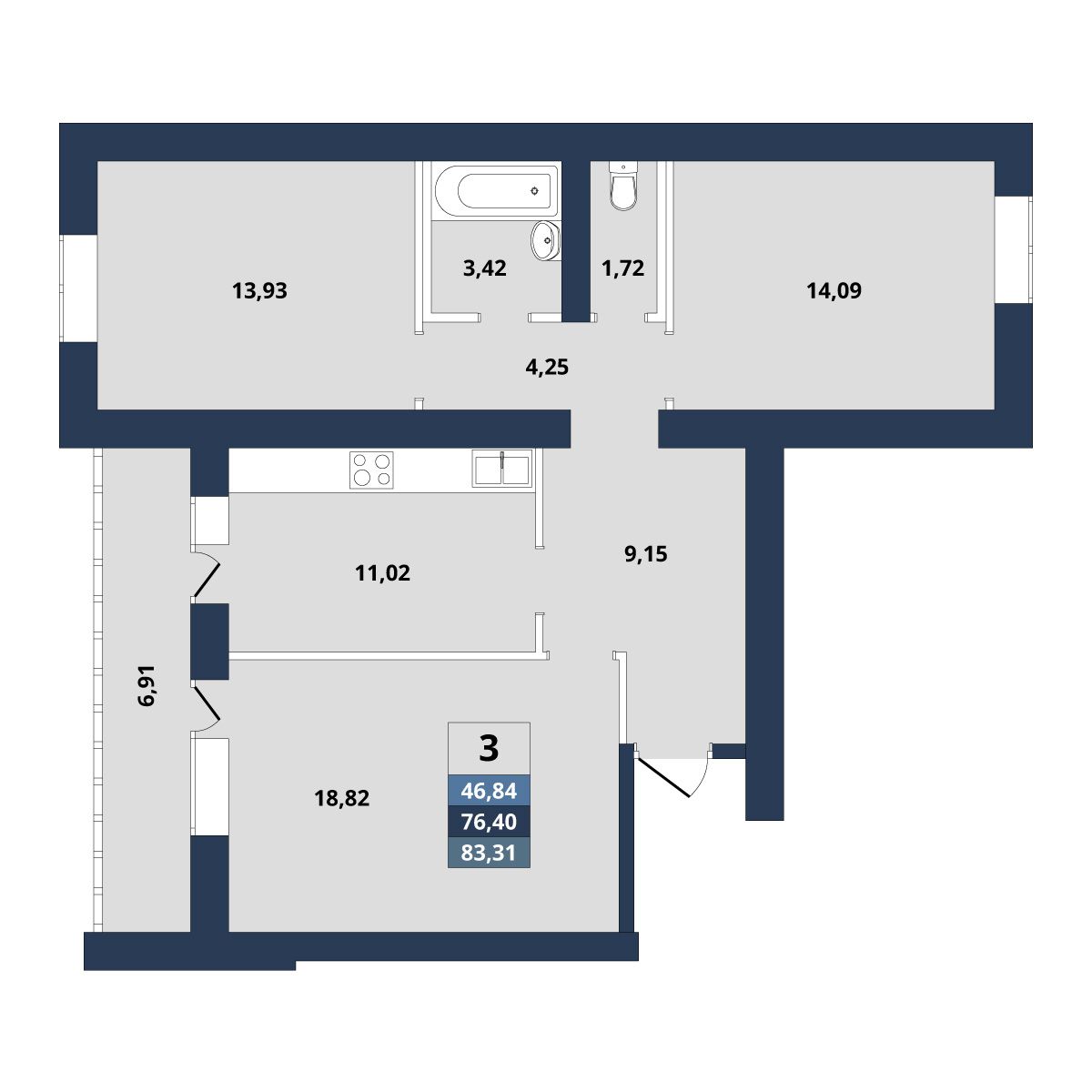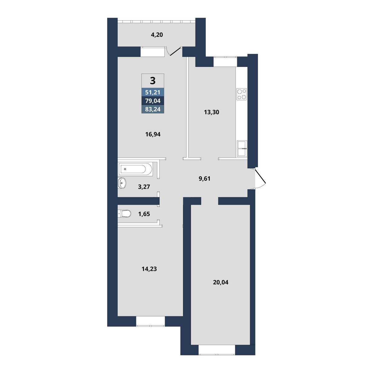 | 3-комн | от 76 м² до 79 м² | от 11,65 млн ₽ | 3 |