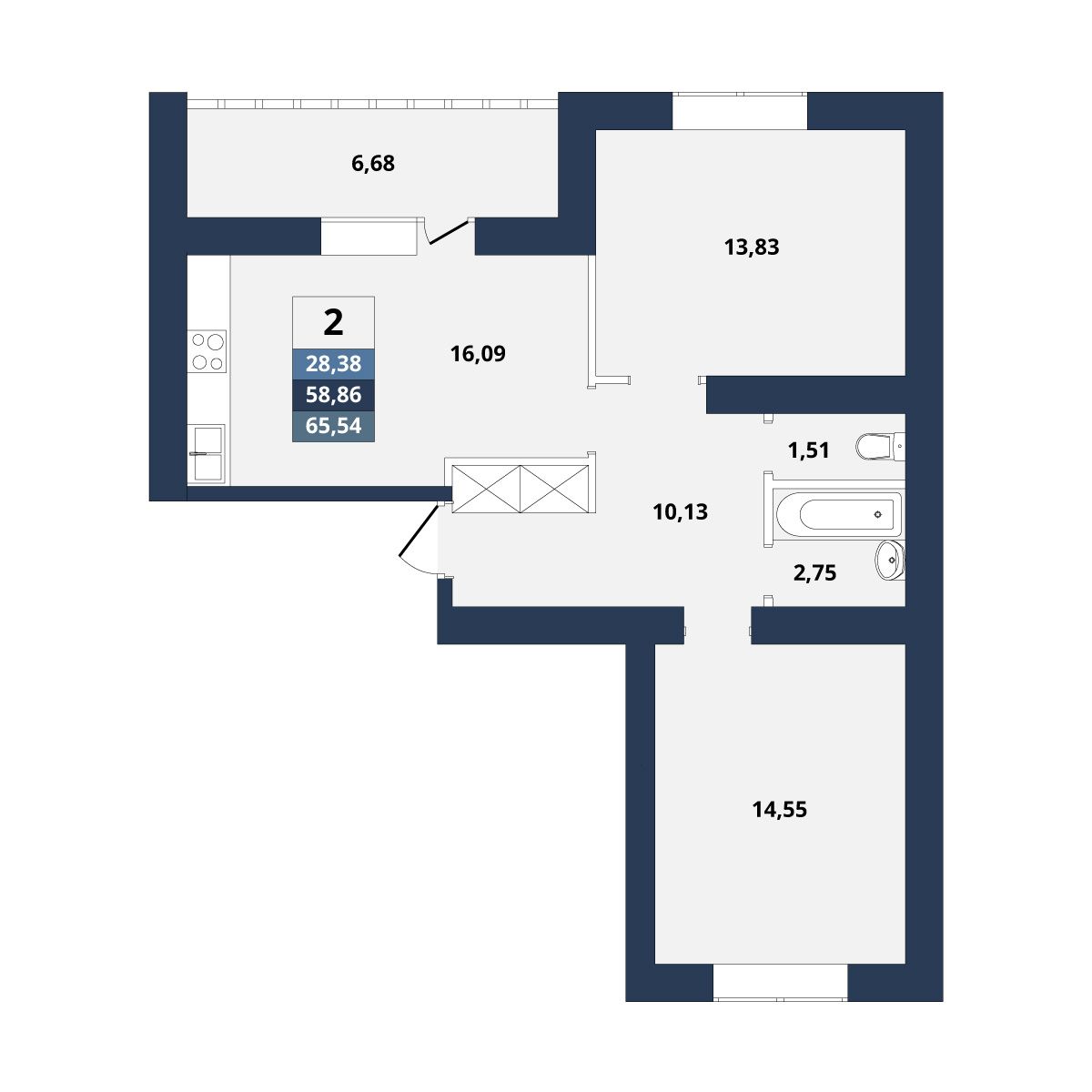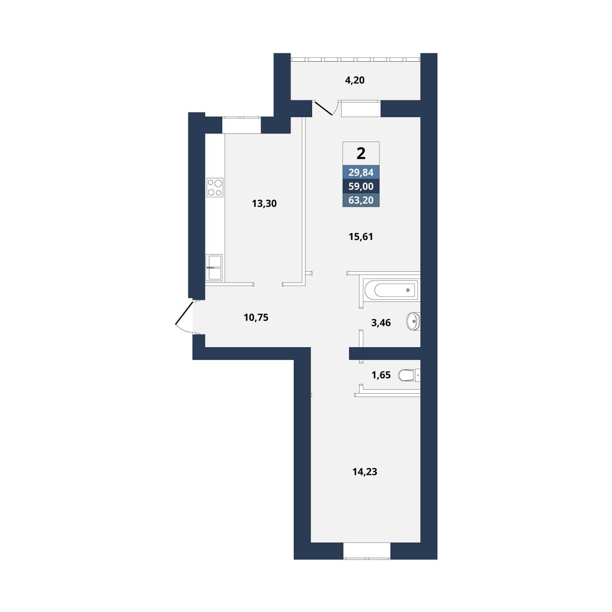 | 2-комн | от 58 м² до 59 м² | от 8,25 млн ₽ | 7 |