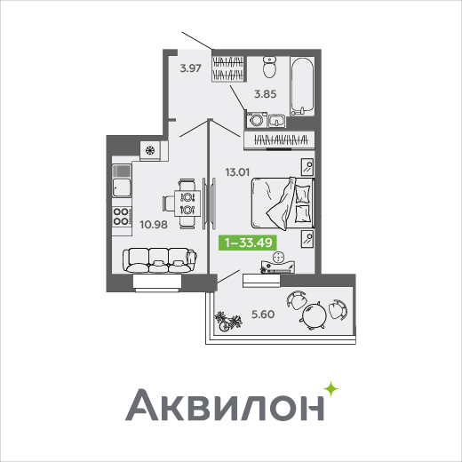| 1-комн | от 33 м² до 43 м² | от 4,68 млн ₽ | 19 |