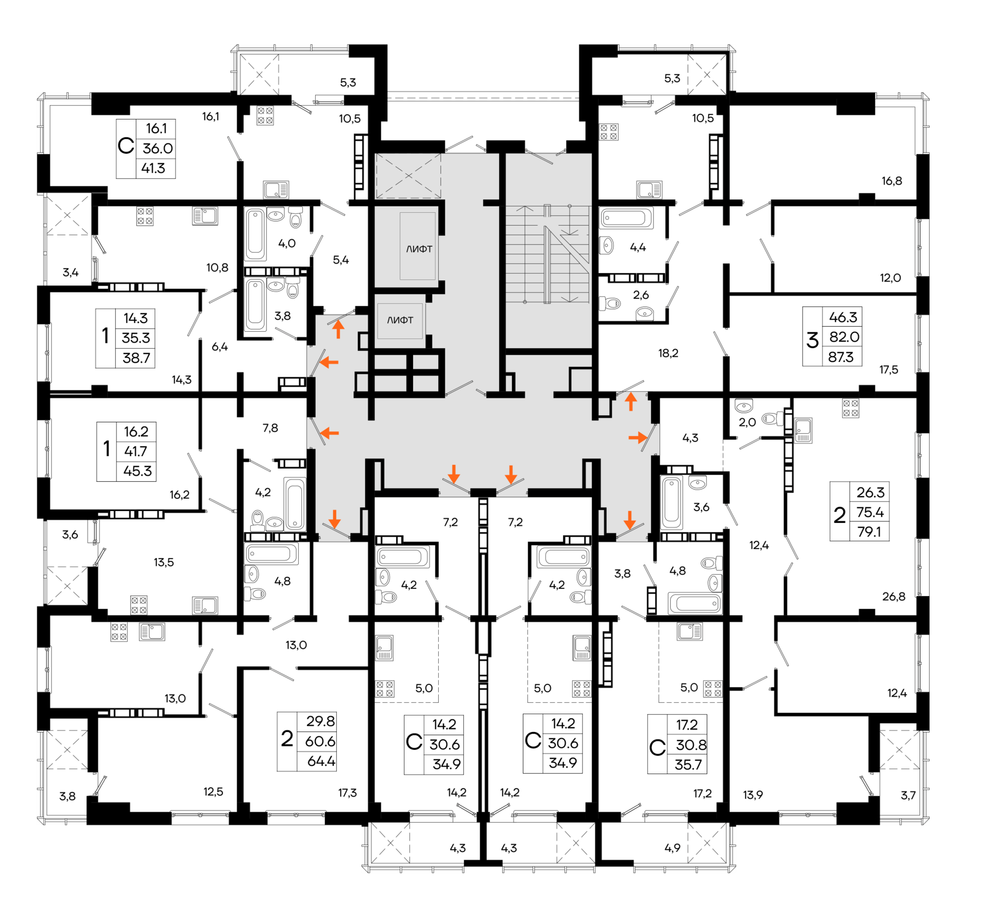 | 2-комн | от 64 м² до 79 м² | от 12,24 млн ₽ | 10 |