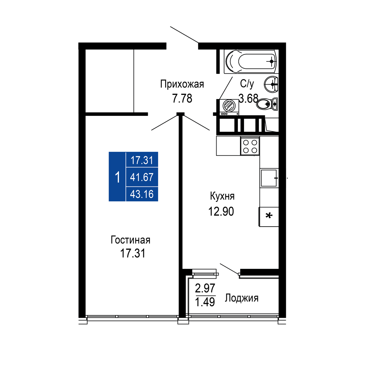 | 1-комн | от 37 м² до 45 м² | от 7,66 млн ₽ | 241 |