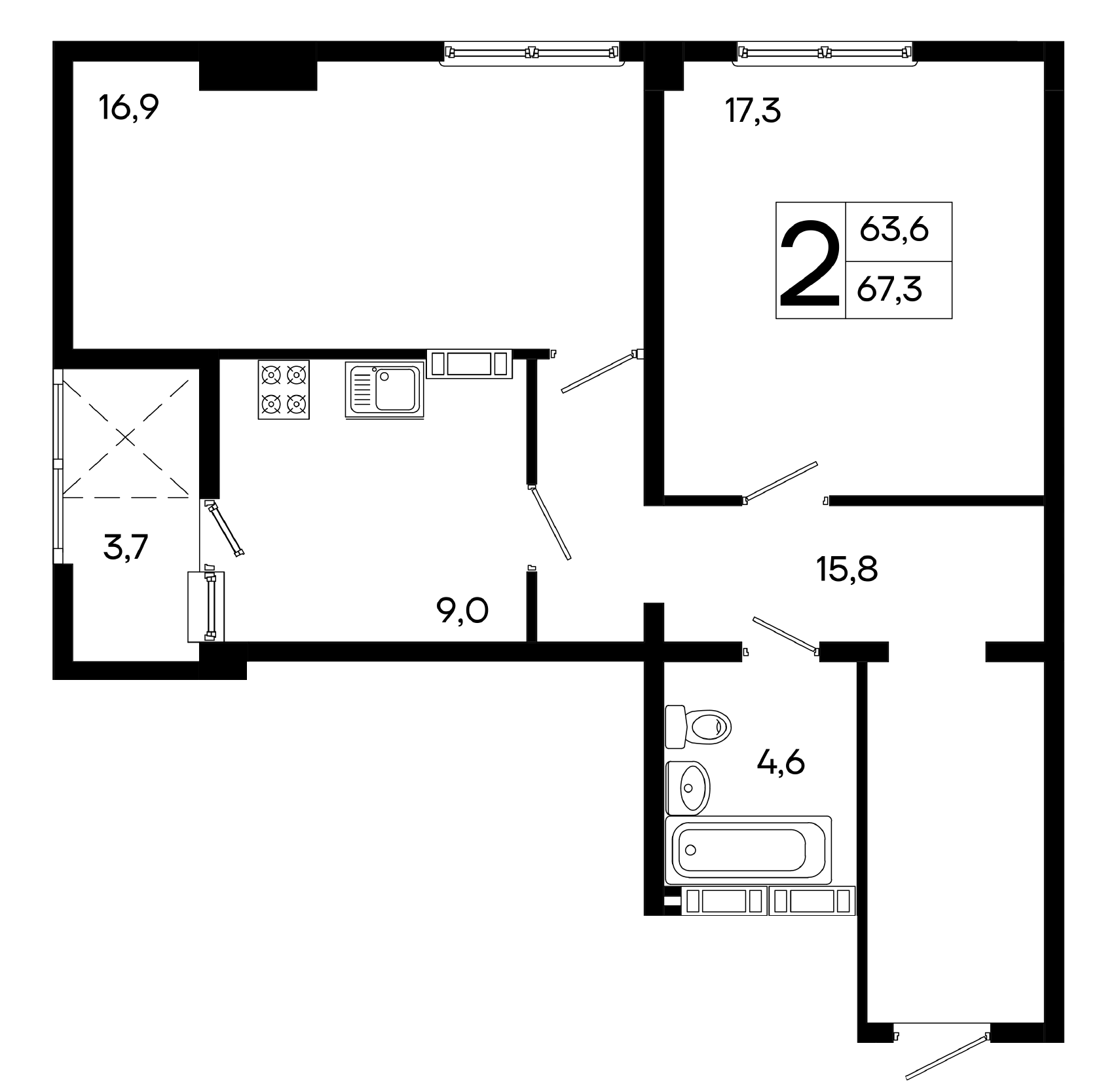 | 2-комн | от 67 м² до 67 м² | от 10,69 млн ₽ | 20 |