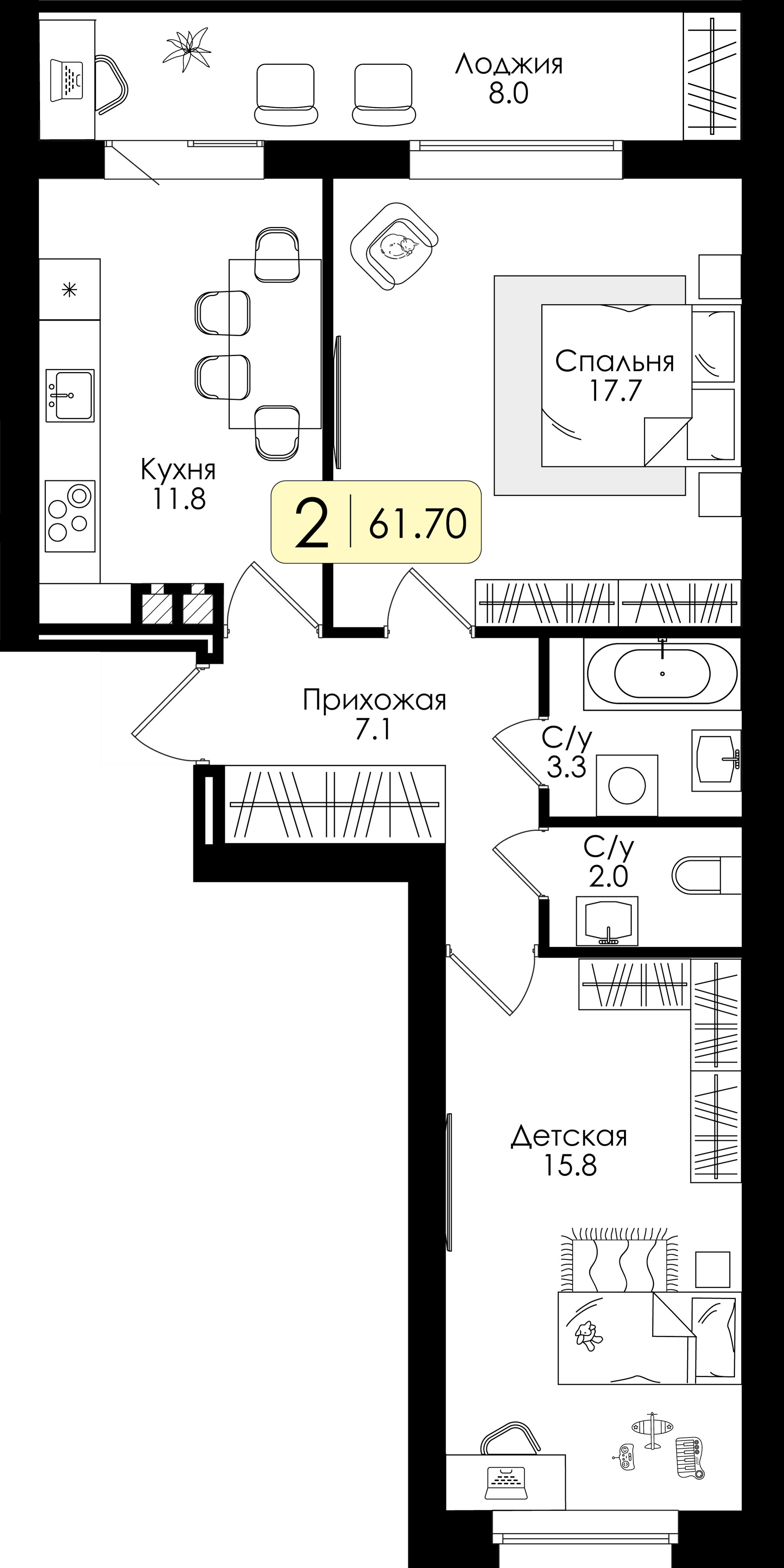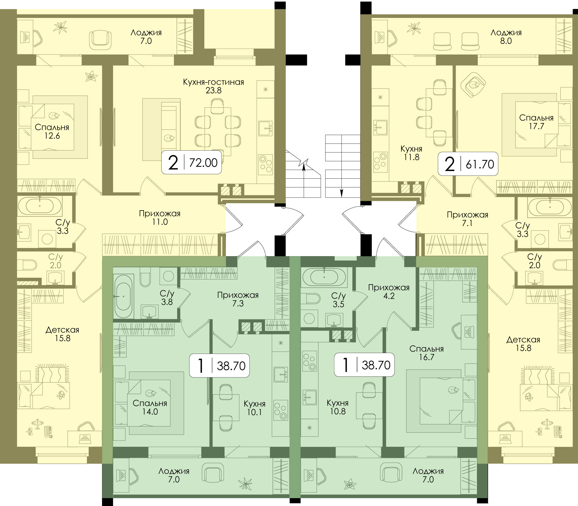 | 2-комн | от 62 м² | от 4,40 млн ₽ | 2 |