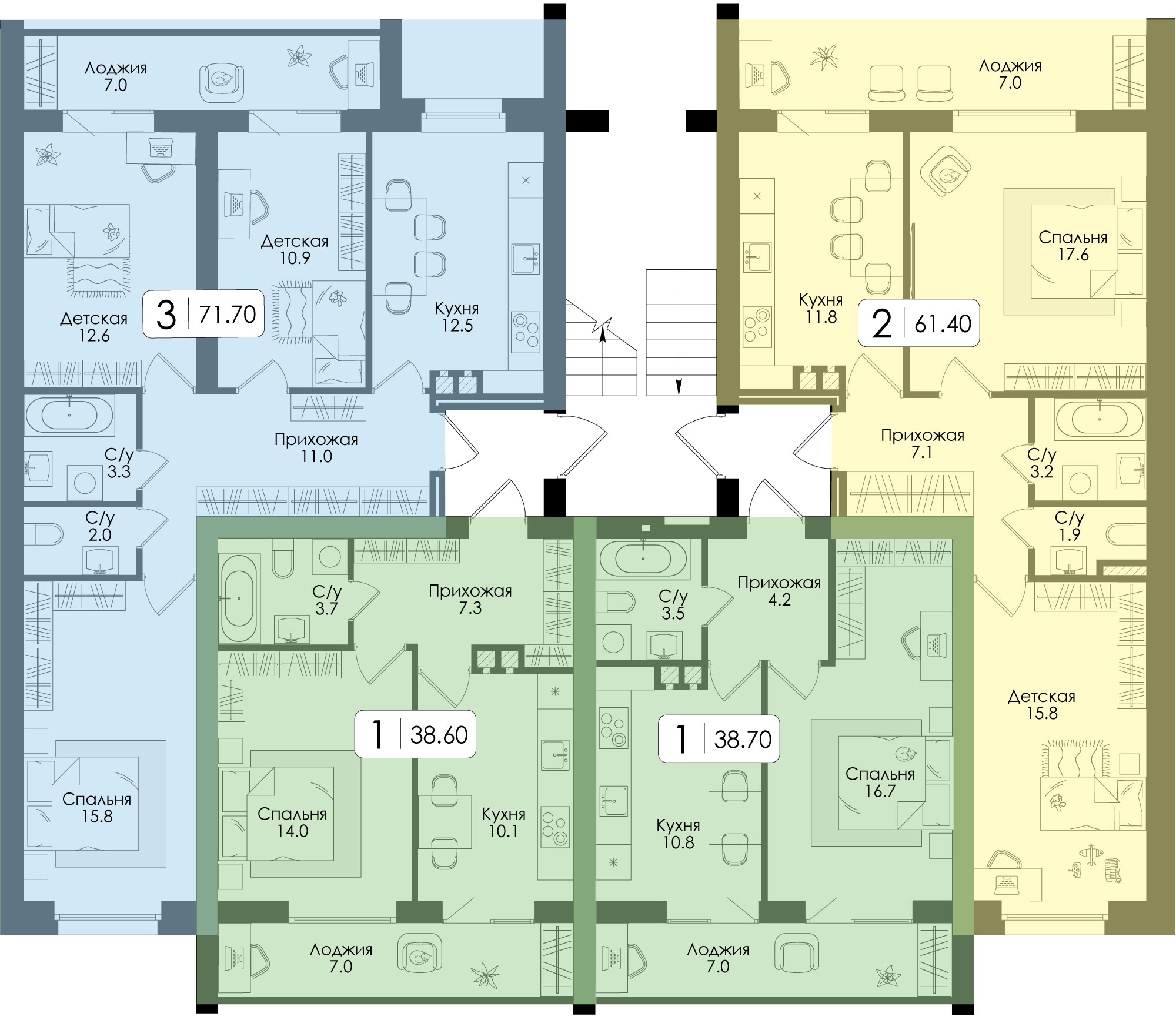 | 3-комн | от 72 м² | от 5,03 млн ₽ | 3 |