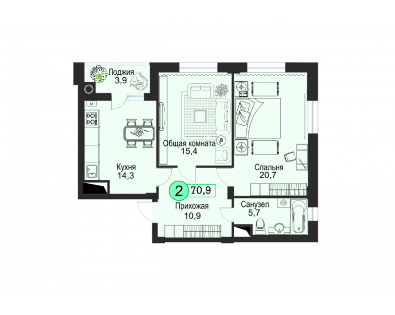 | 2-комн | от 66 м² до 72 м² | от 7,94 млн ₽ | 6 |