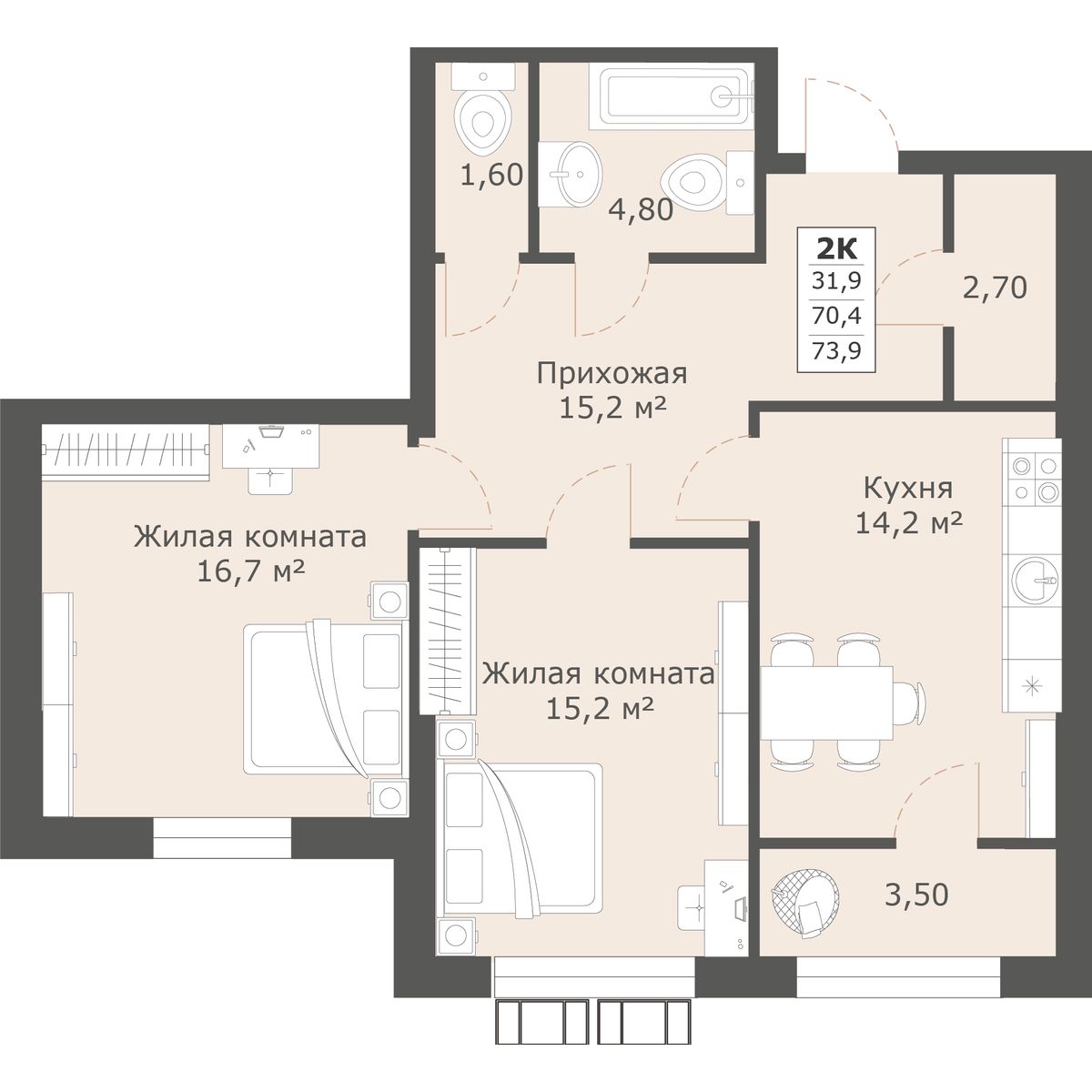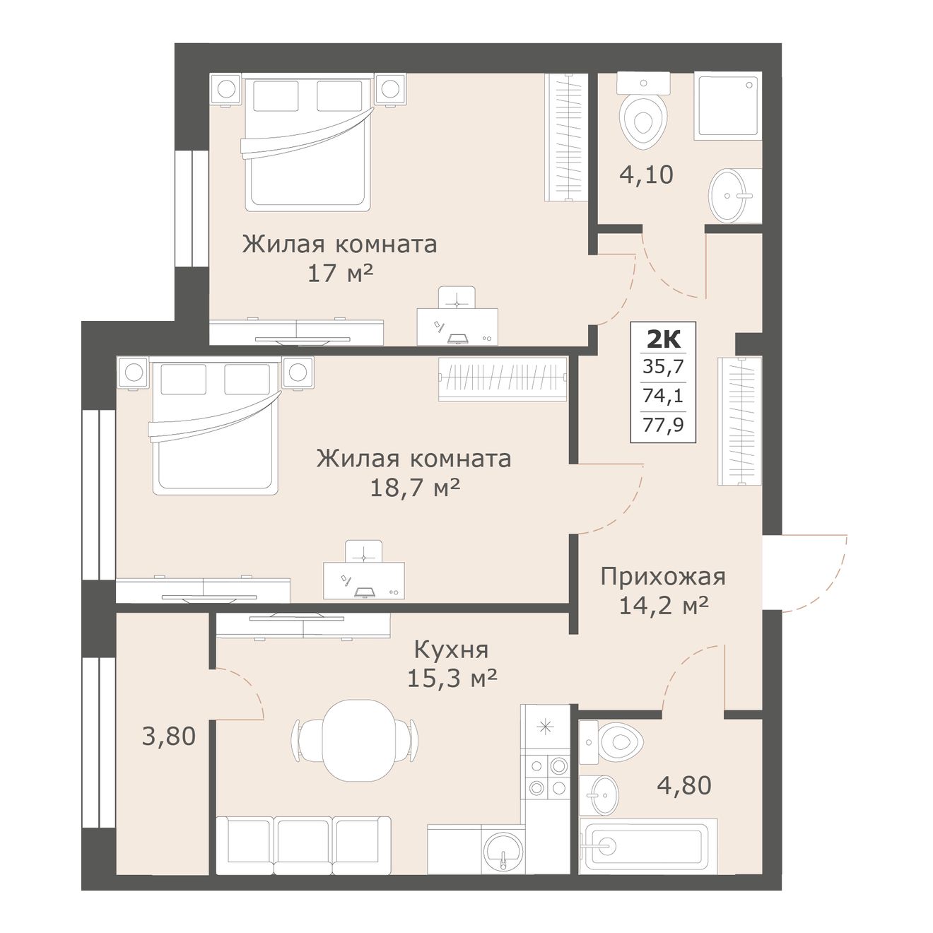 | 2-комн | от 74 м² до 79 м² | от 10,94 млн ₽ | 23 |
