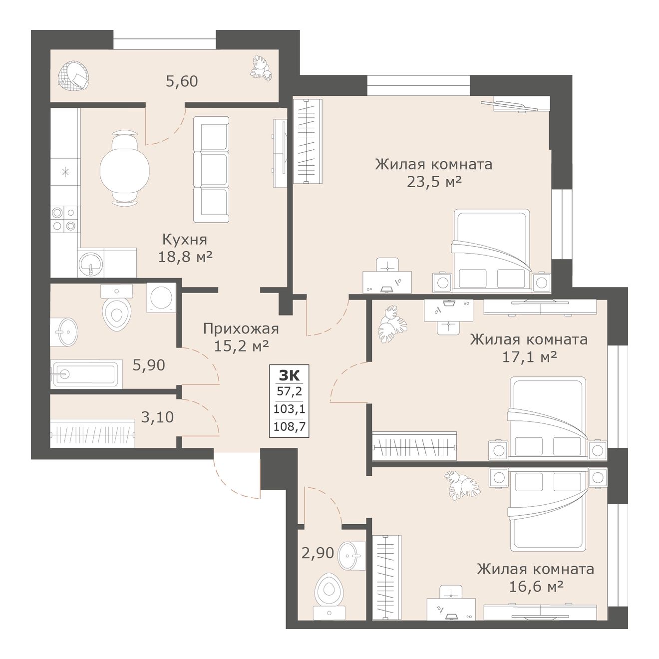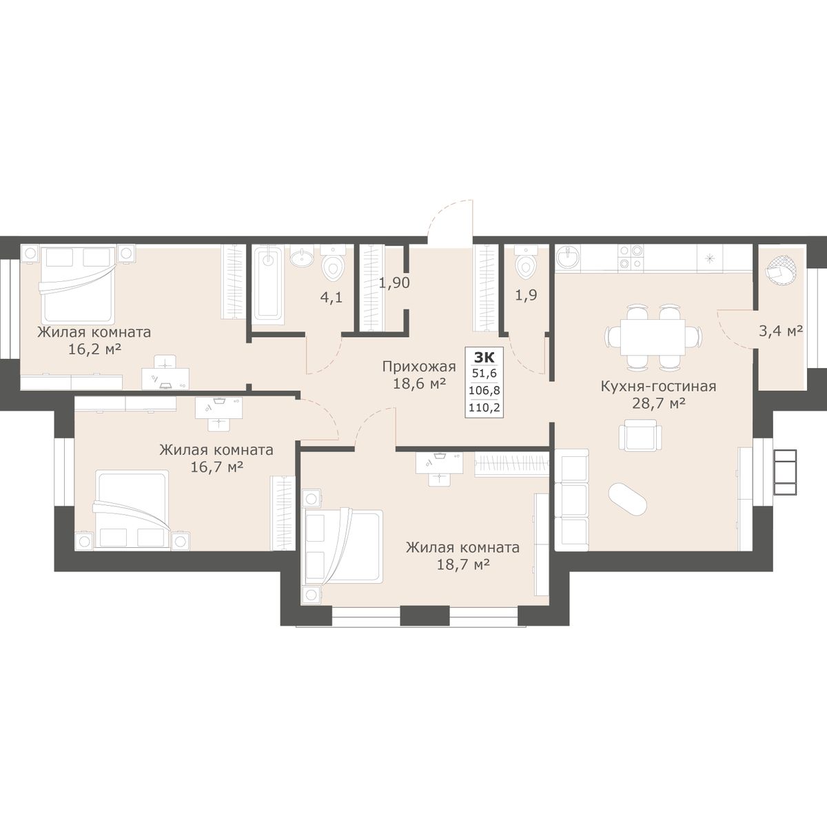 | 3-комн | от 108 м² до 111 м² | от 15,93 млн ₽ | 14 |